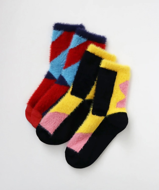 KIVISDOU/【2足組】○&△ バルキー クルーソックス