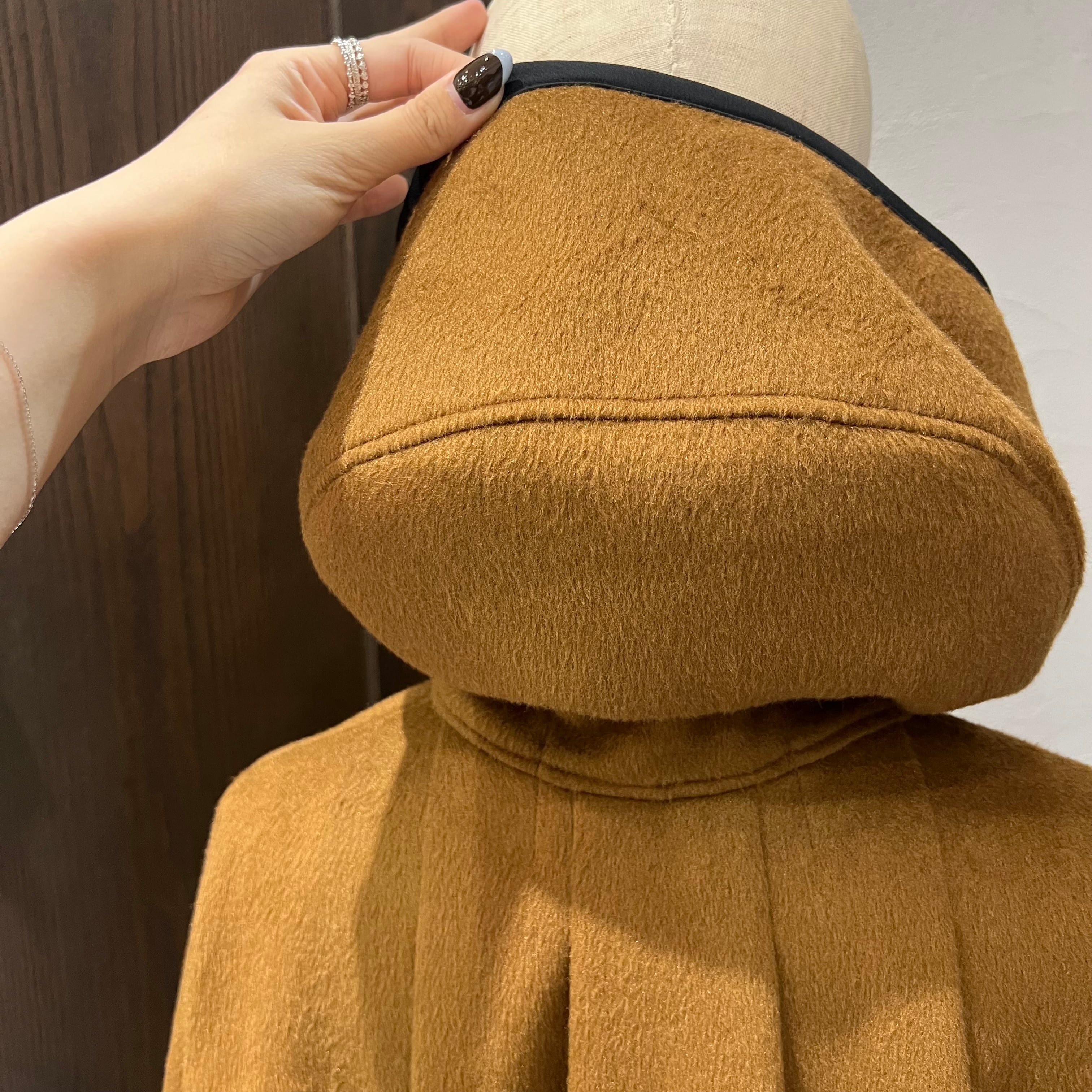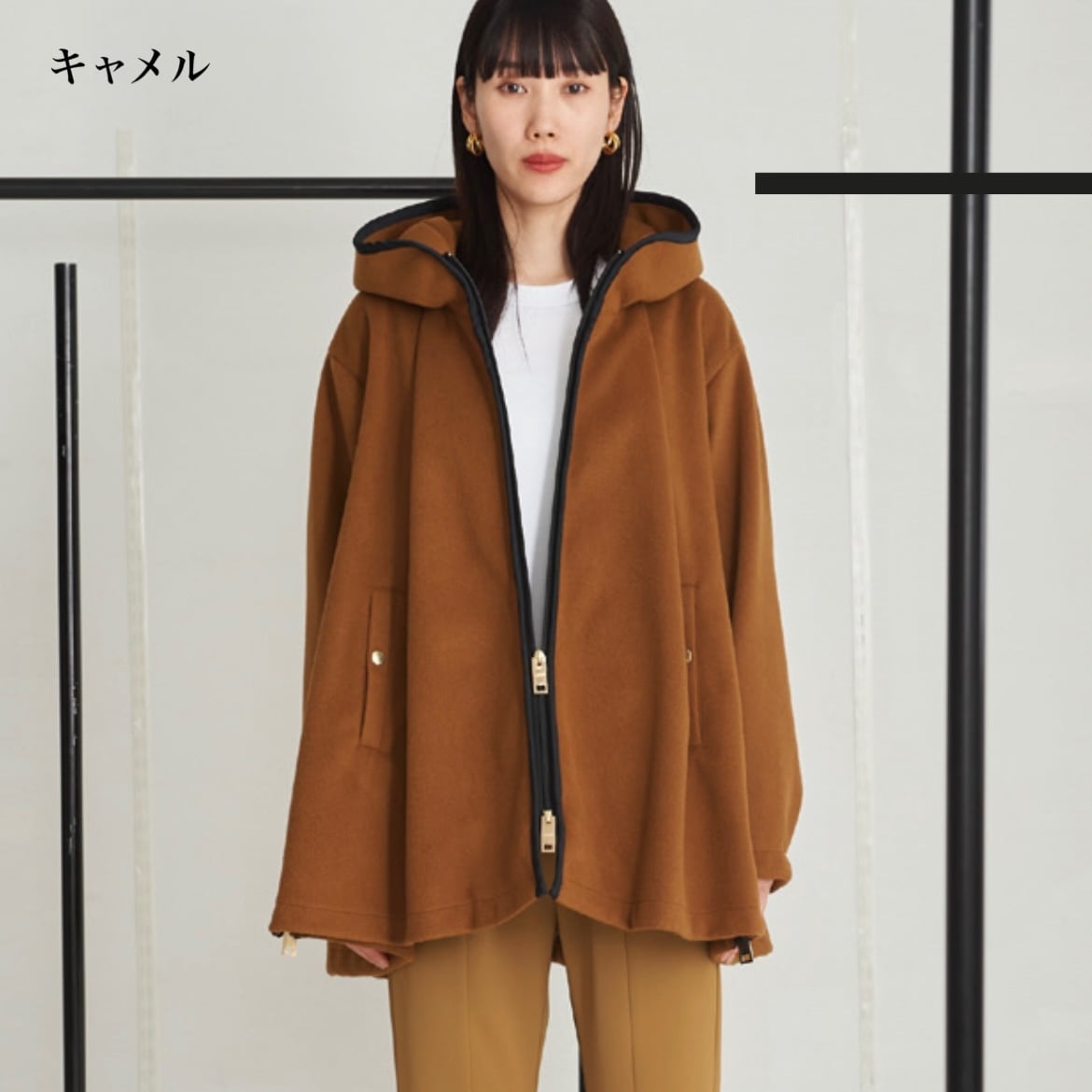 ゆったりとしたシルエットが魅力のAラインフード付きアウター。