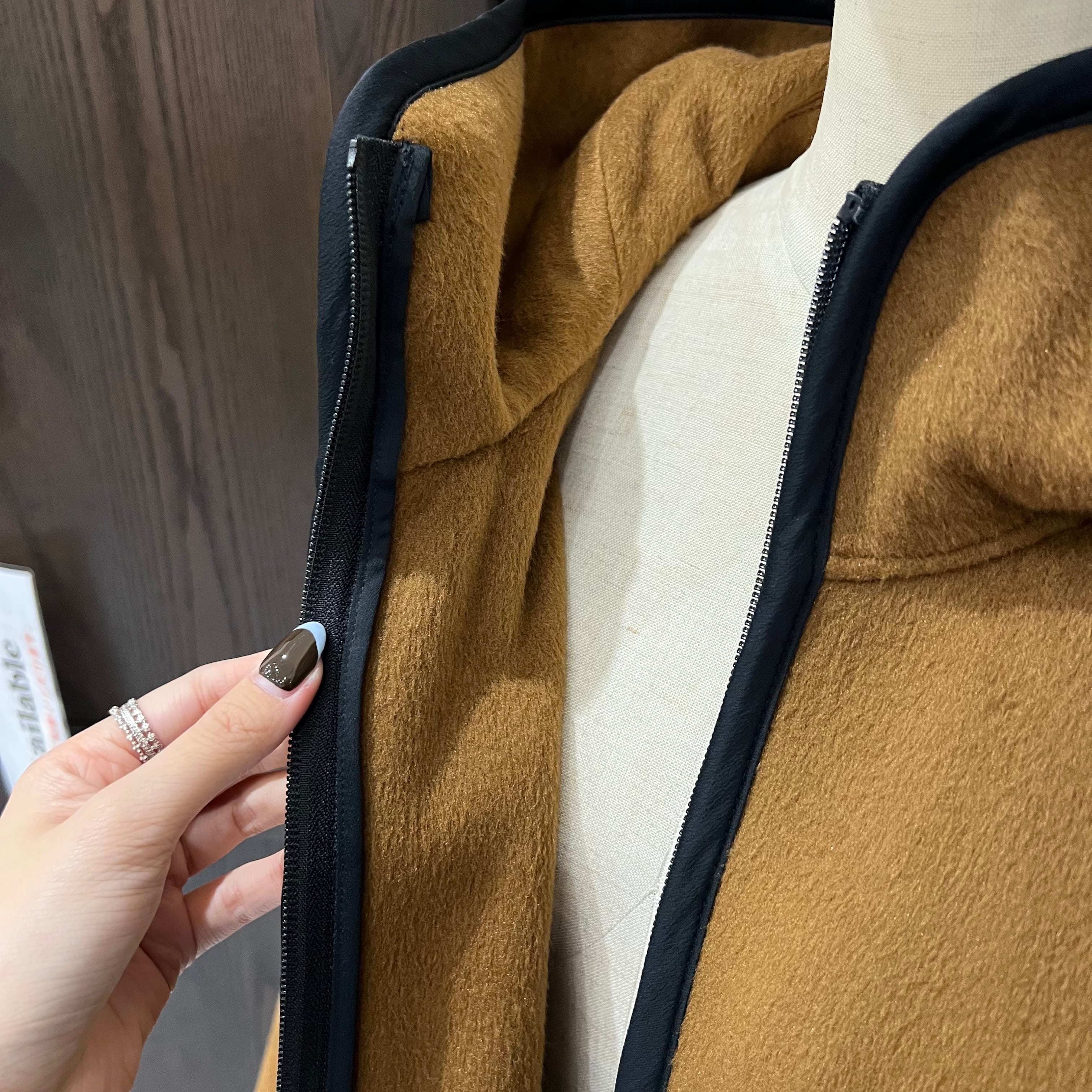フロントはジップ仕様で、開閉しやすくデザインのアクセントにもなっています。