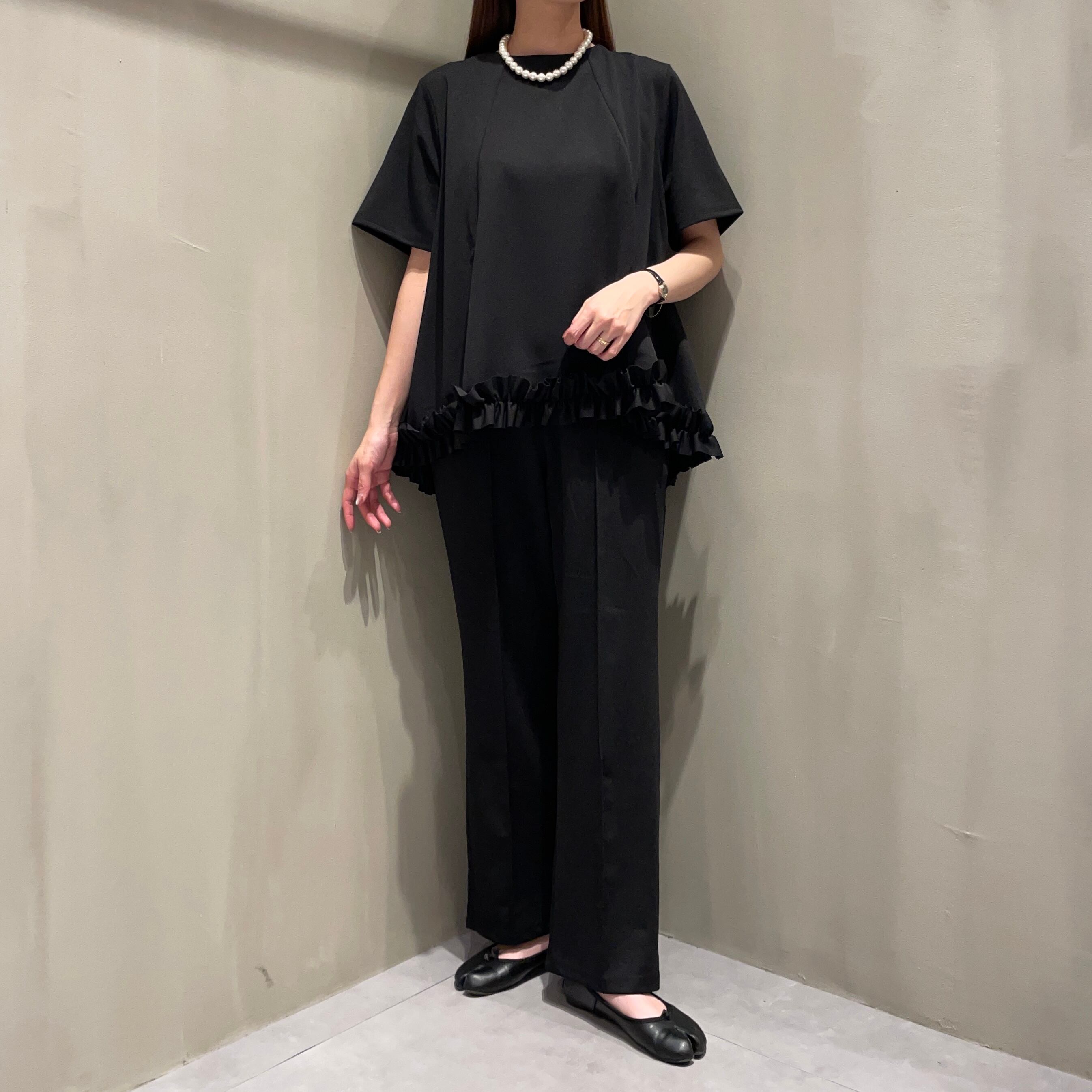立体的なランダムフリルがたっぷりあしらわれた裾は歩くたびに動きの出る可愛いを詰め込んだ1枚です。