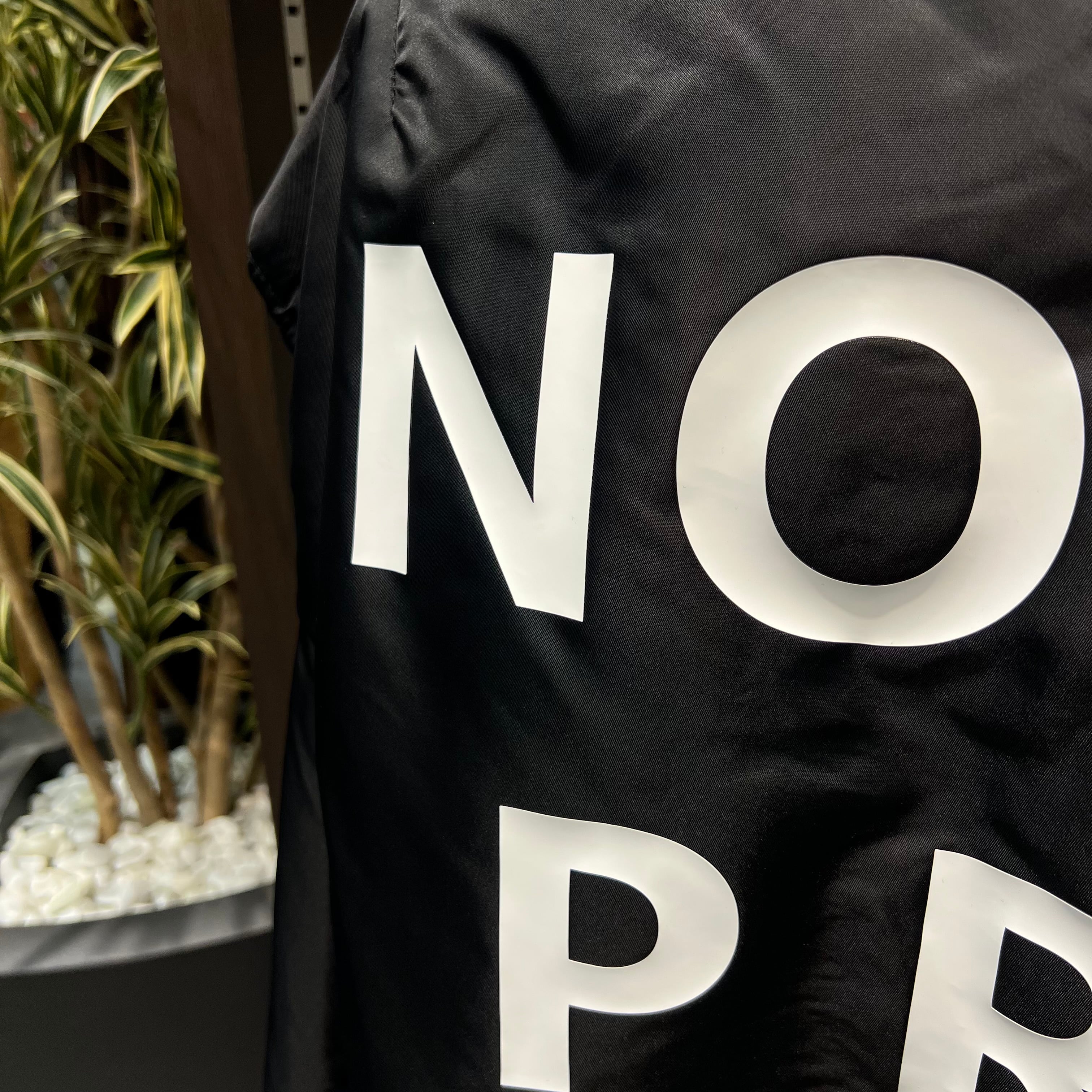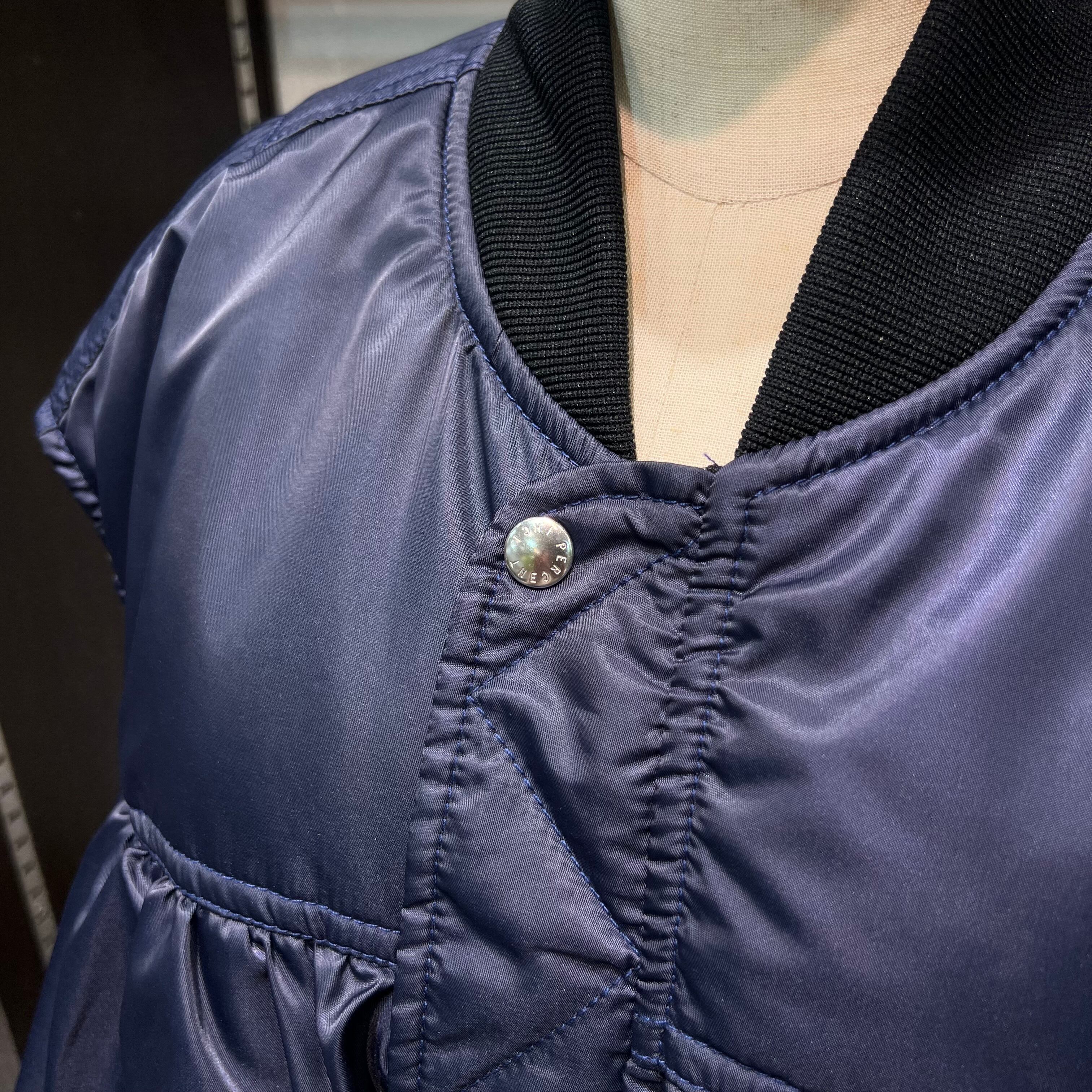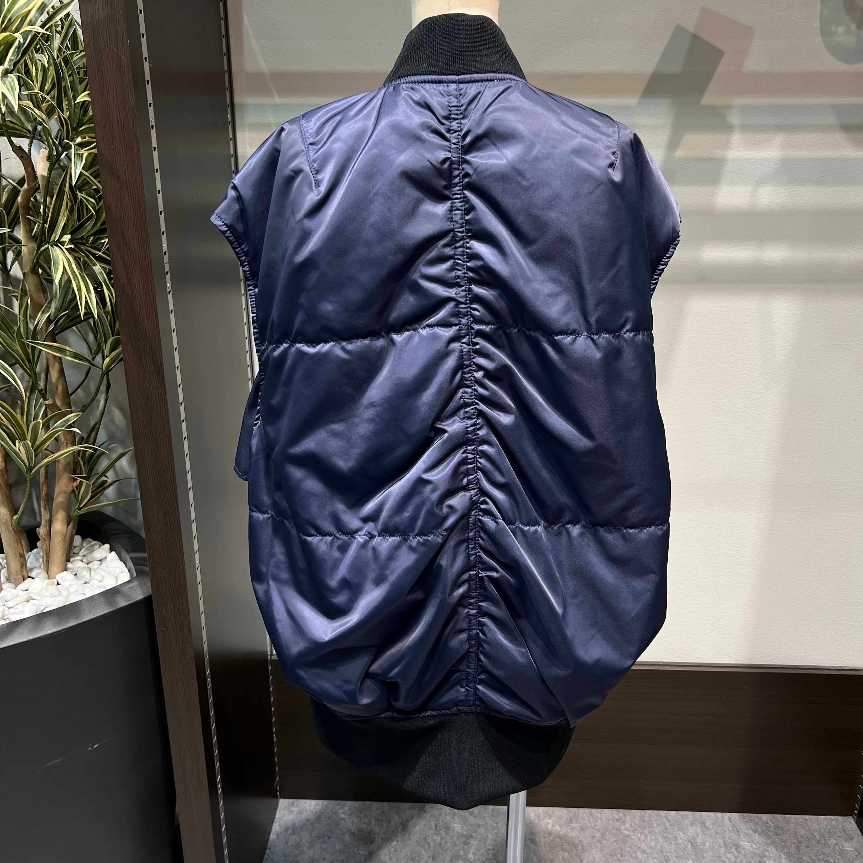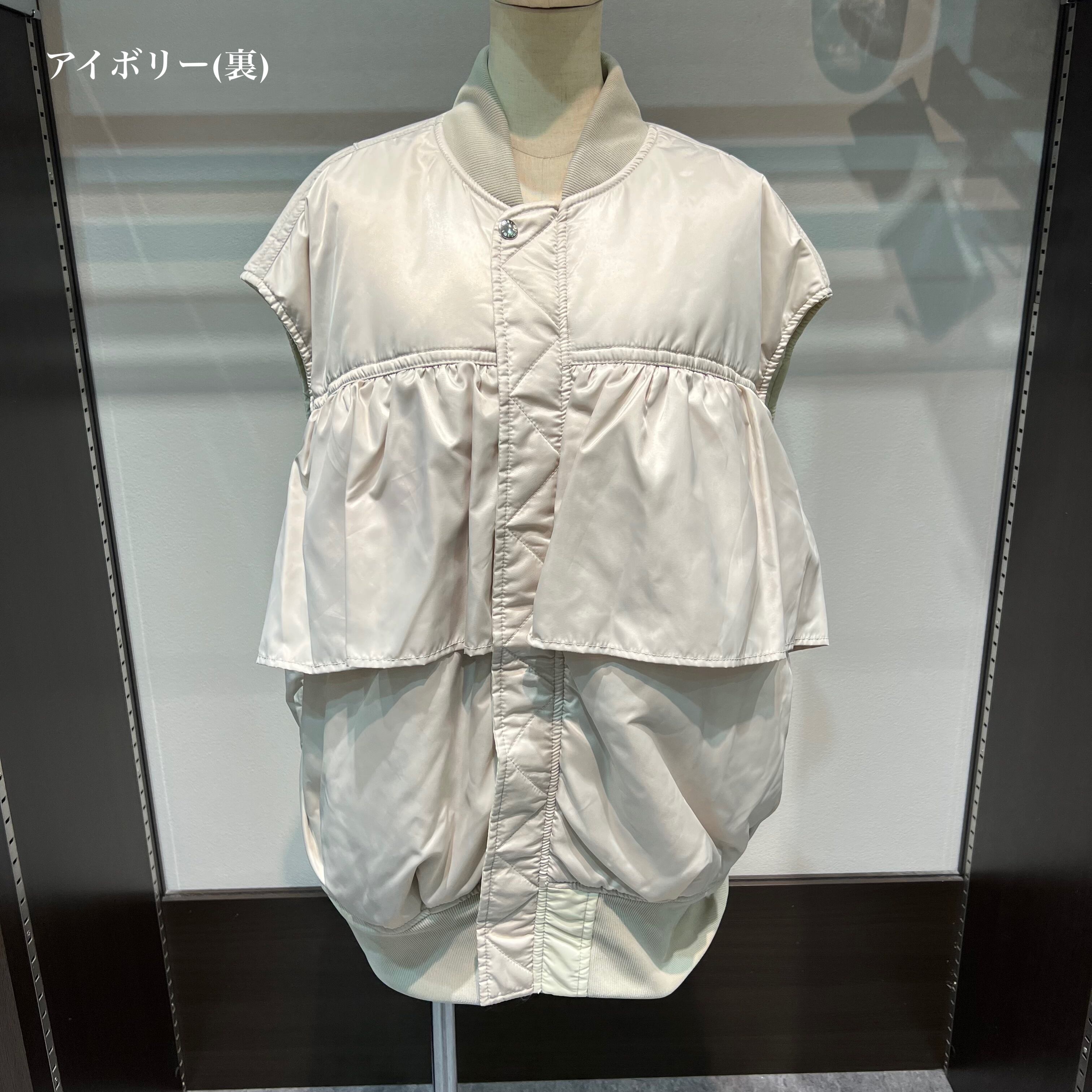 片面は大きなロゴプリントが存在感を放ち、カジュアルでストリート感のある雰囲気。もう一方は切り替えギャザーを施したフェミニンなデザインで、立体的なシルエットがスタイリングに華やかさをプラスしてくれます。