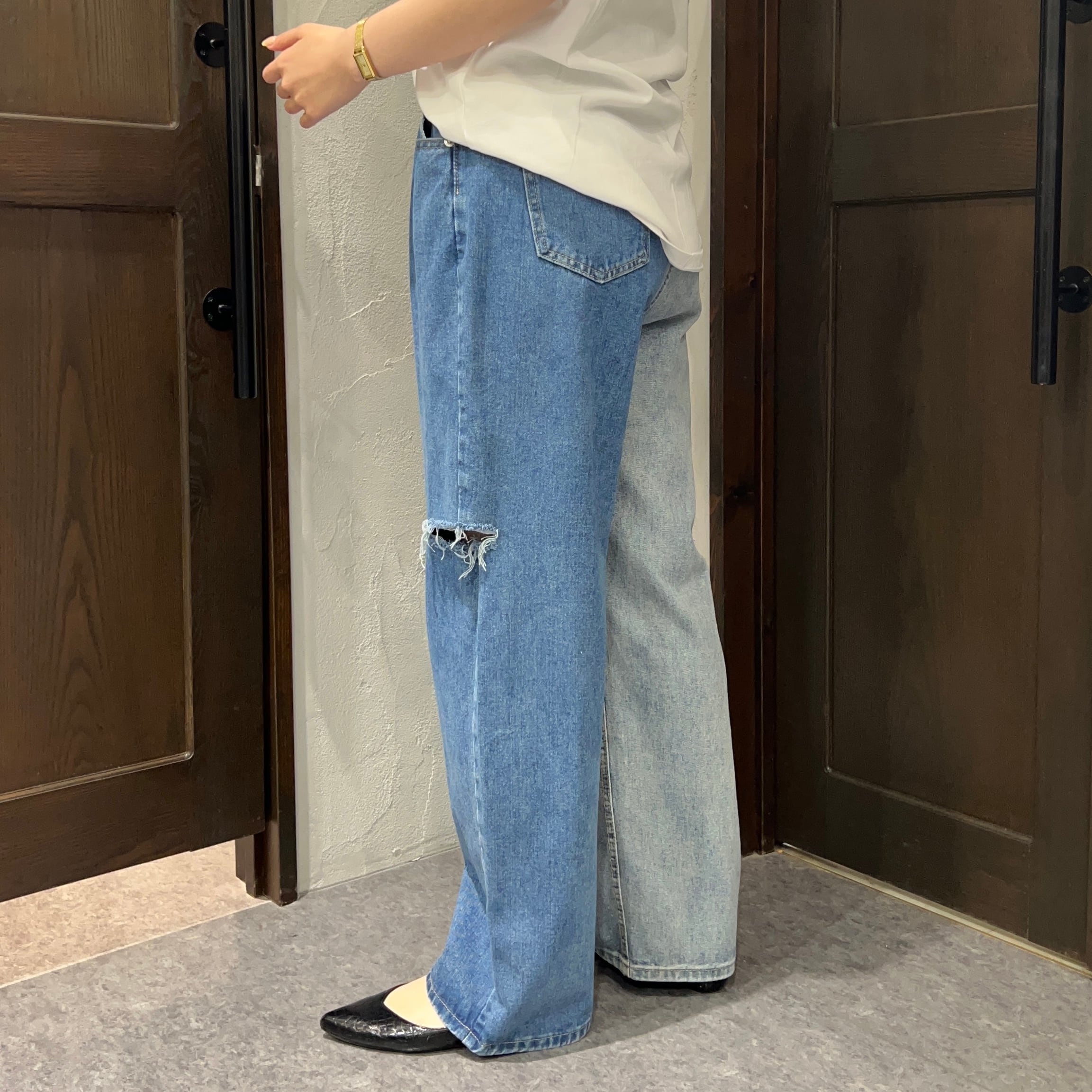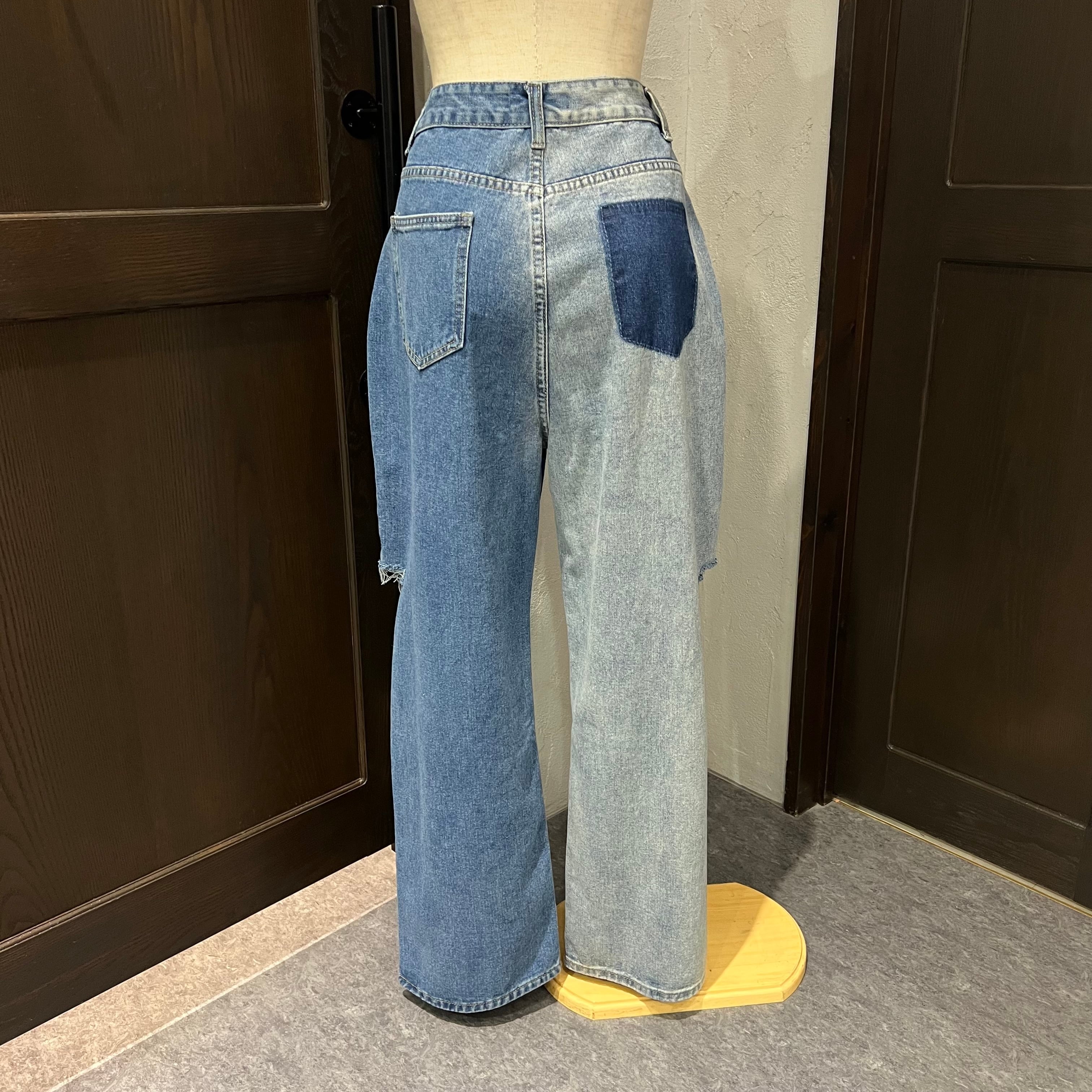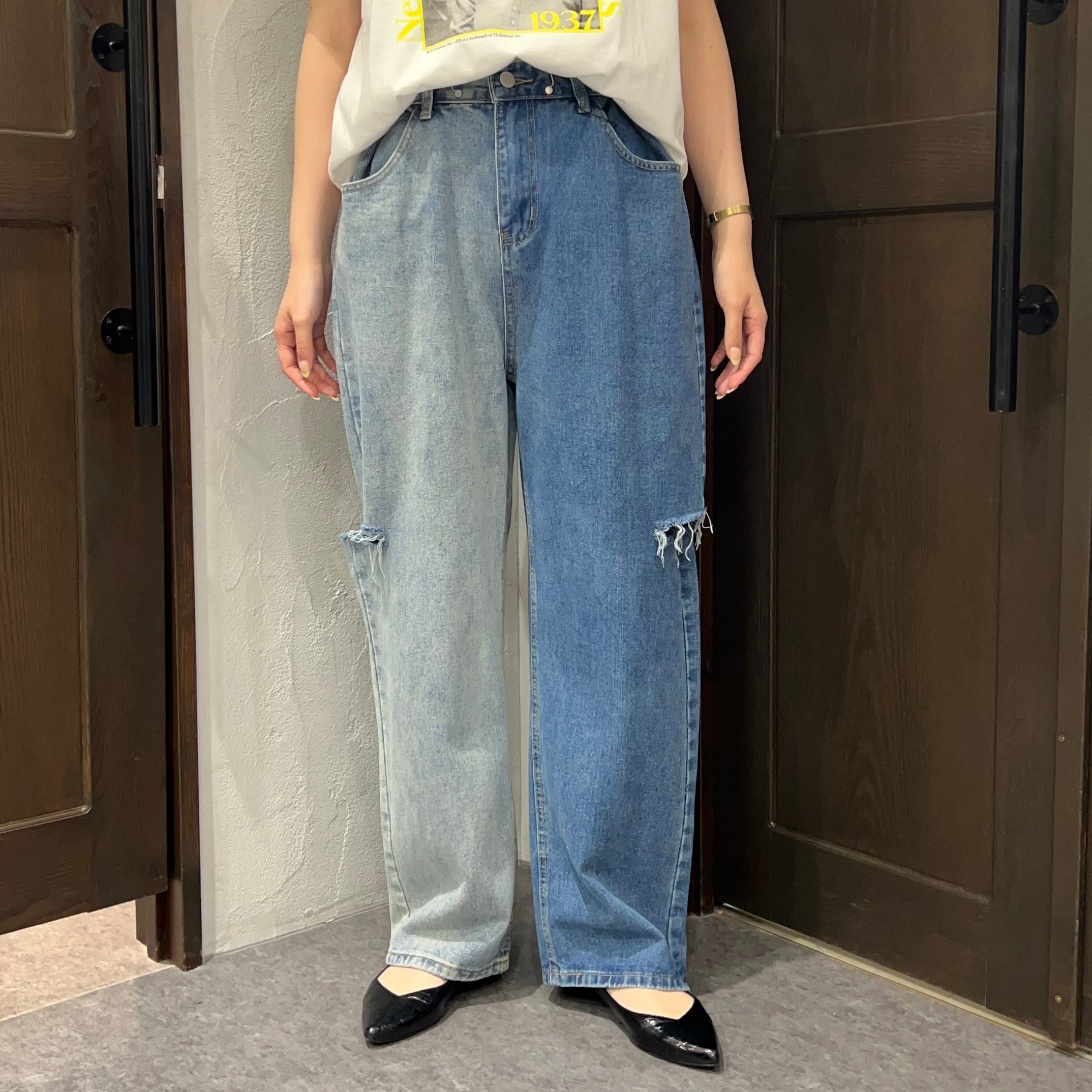 ダメージ加工×バイカラーでこなれ感アップのデニムパンツ