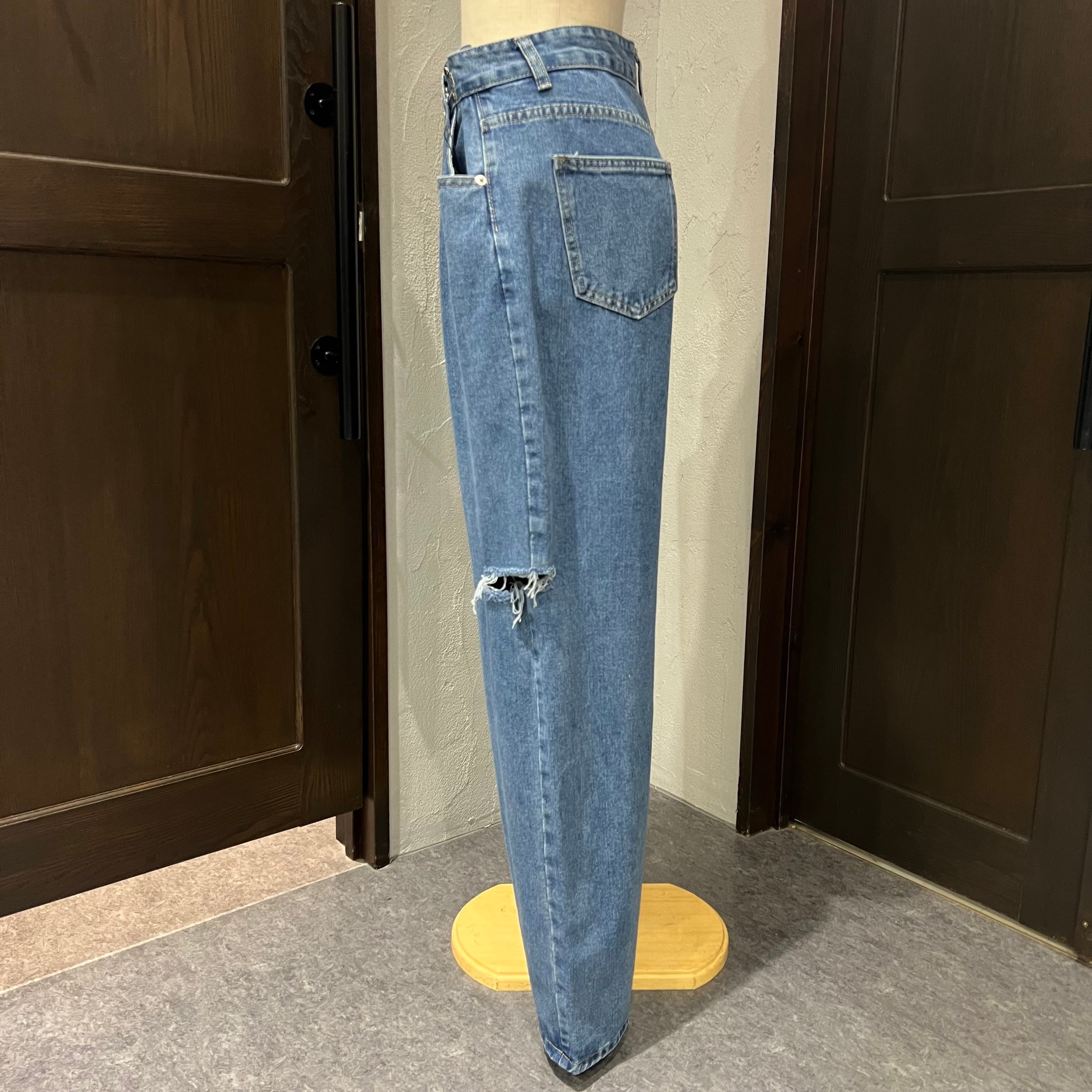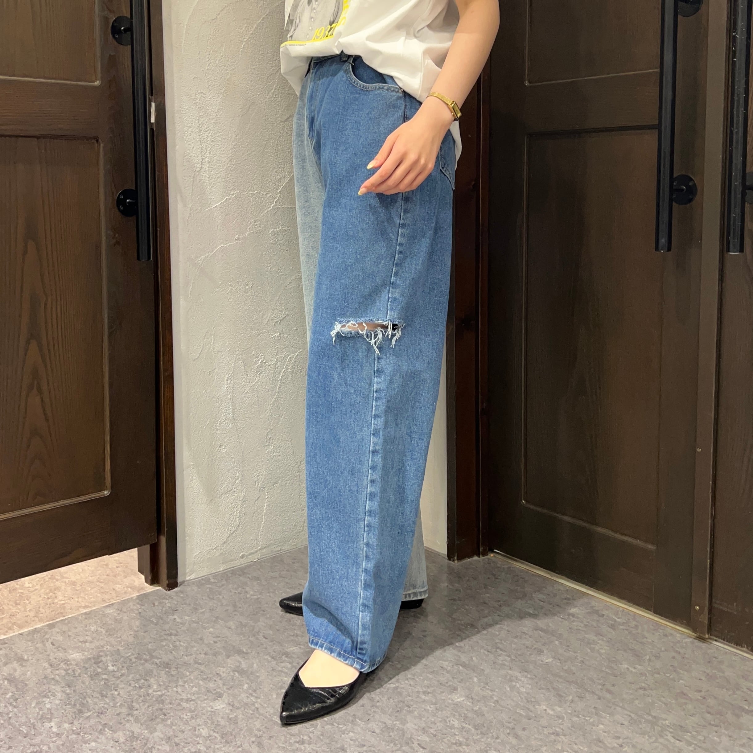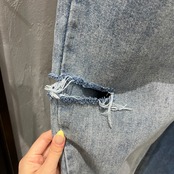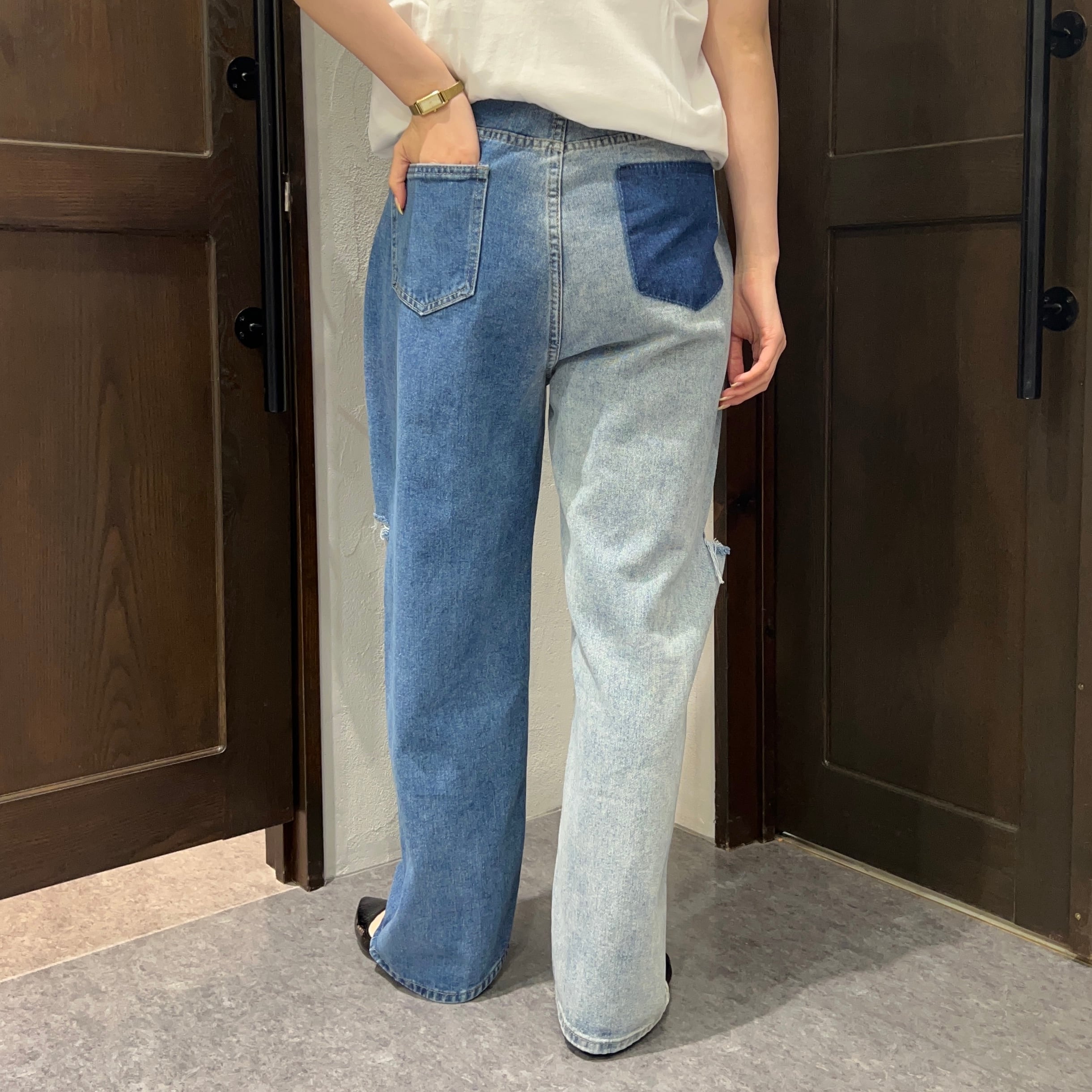 ダメージ加工×バイカラーでこなれ感アップのデニムパンツ