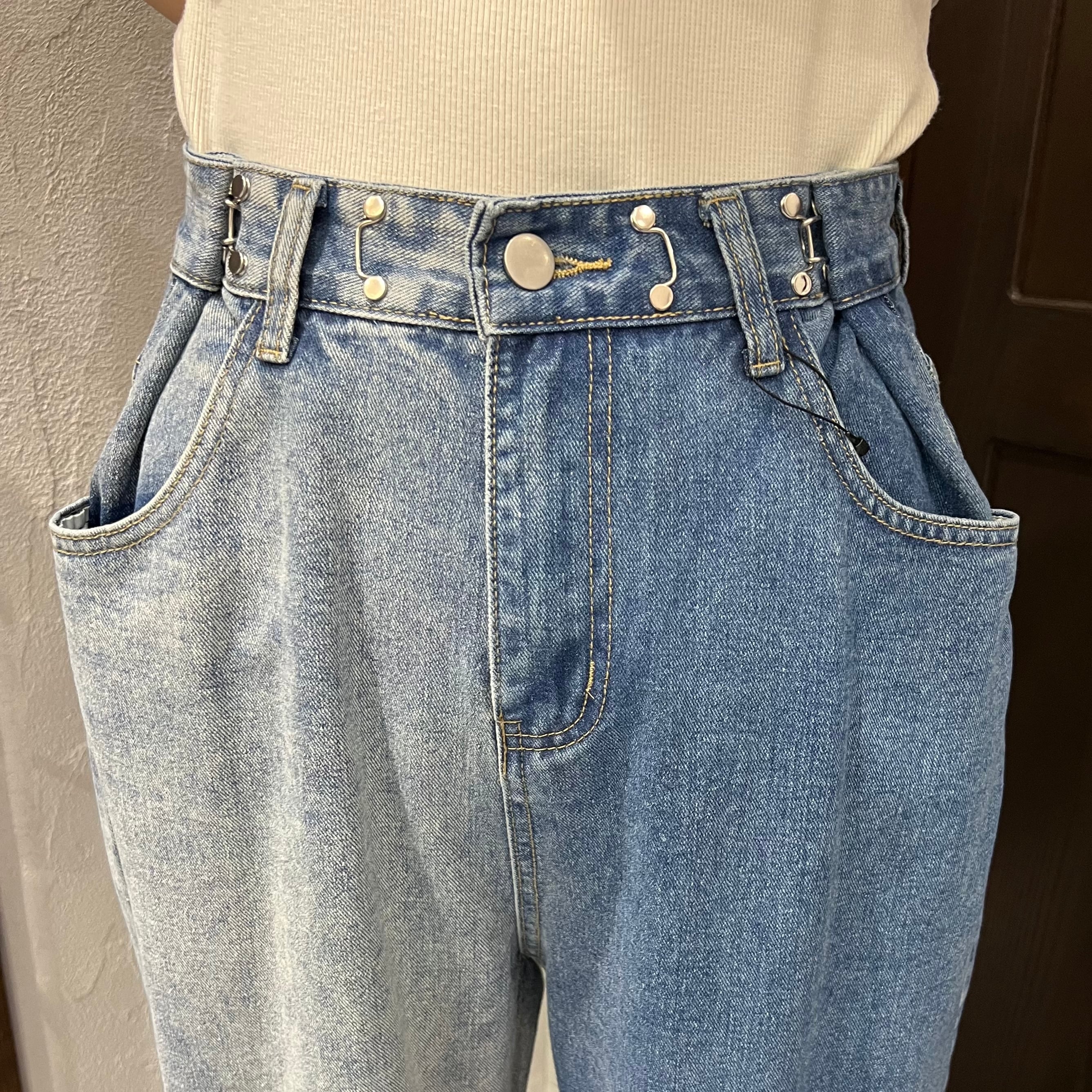 ウエスト部分はホックを引っ掛けてお好みでウエストを絞れるように調整可能◎
