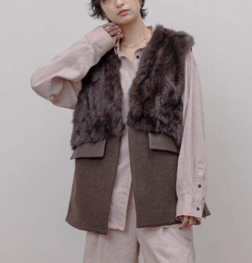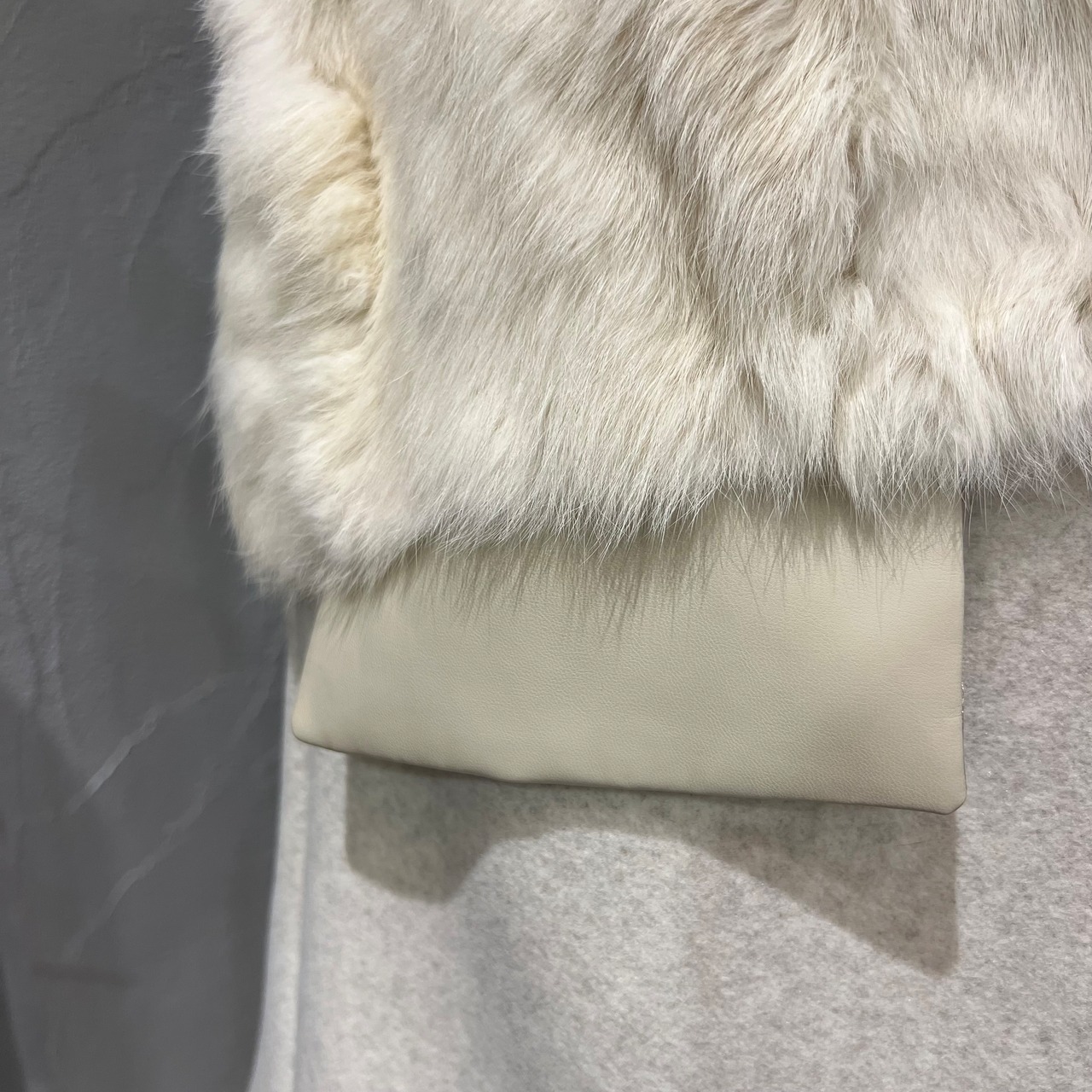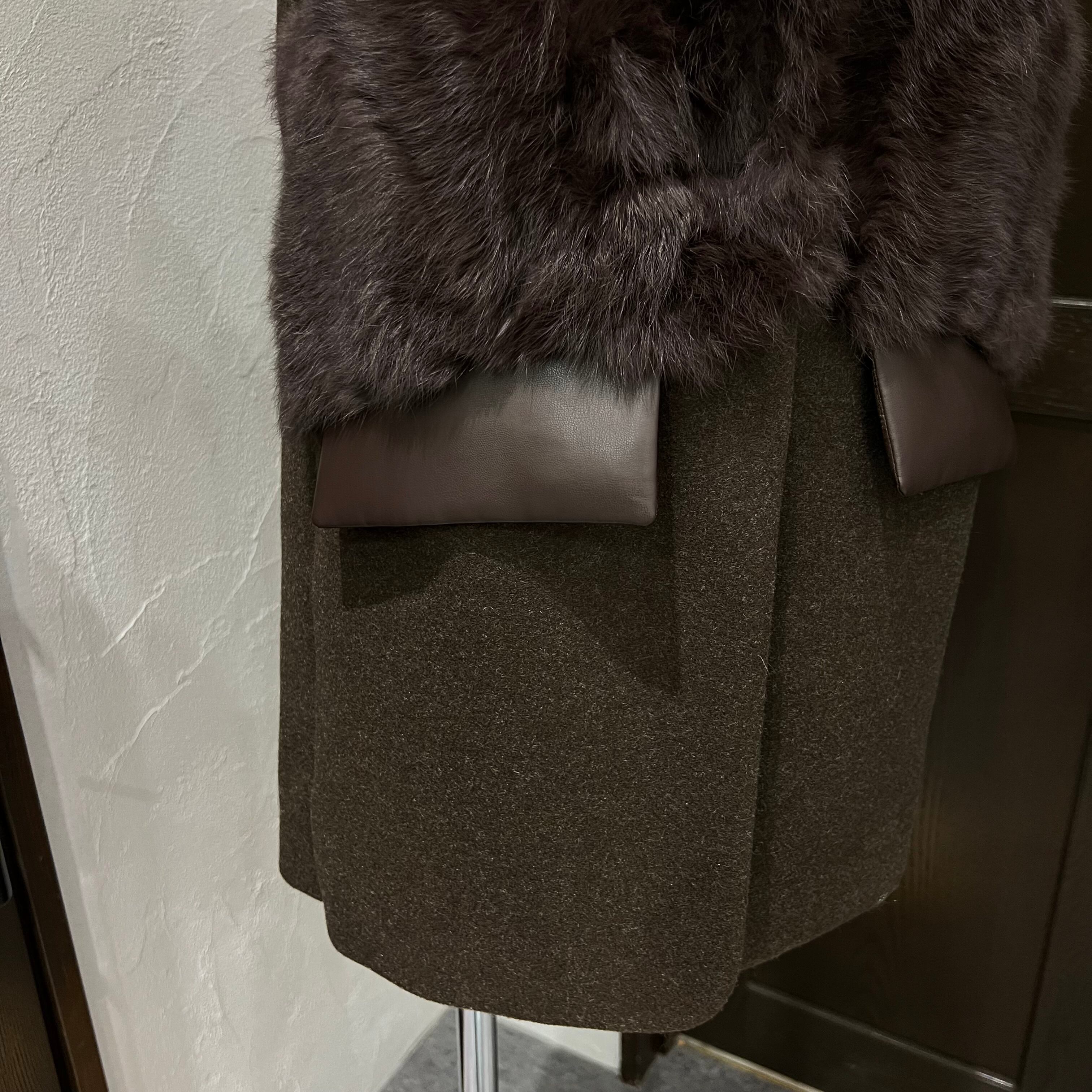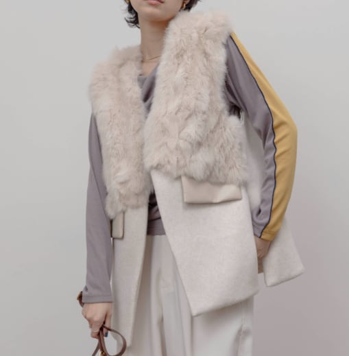 縦長なシルエットにファーの切替え位置を高くとる事で脚長効果があるフォルムに。