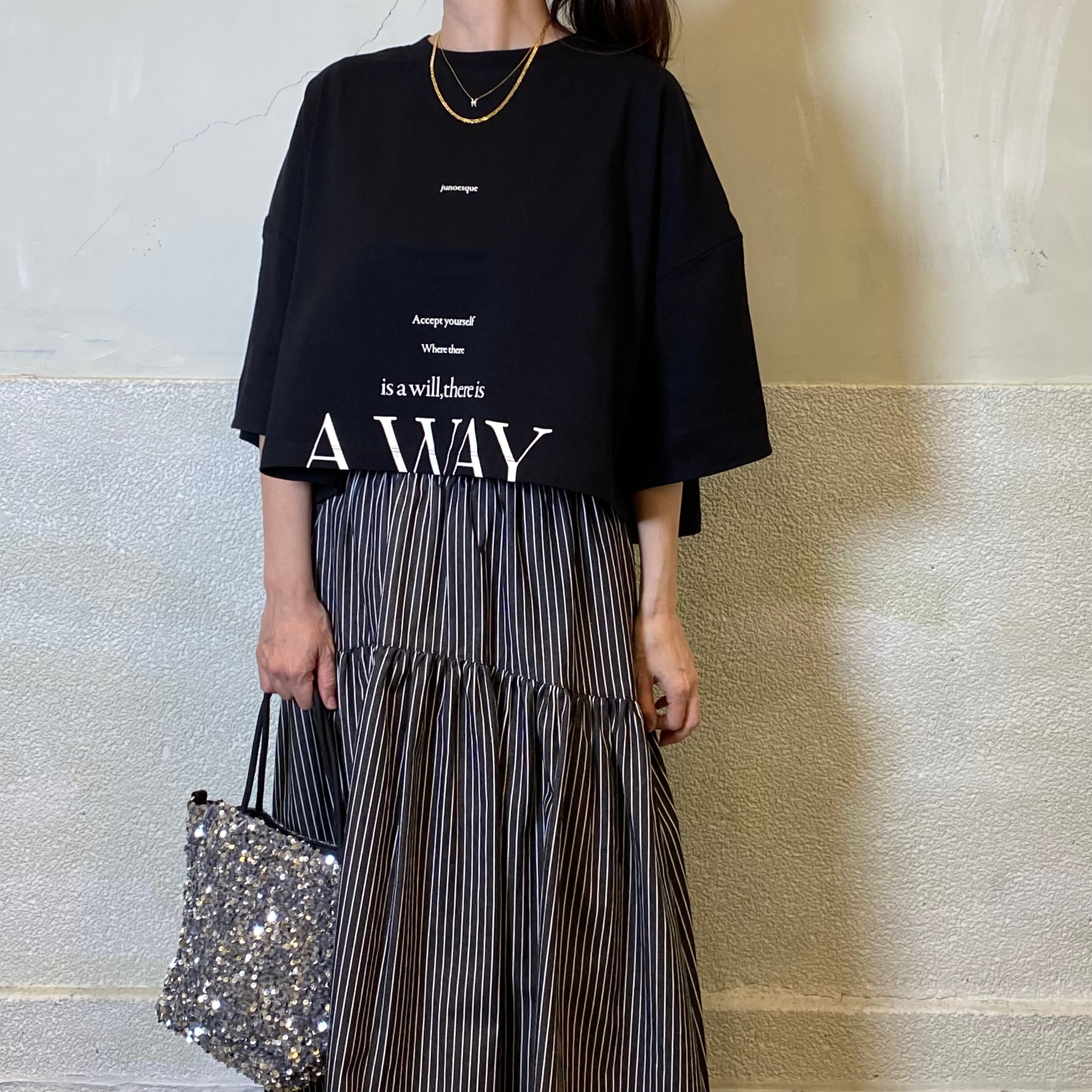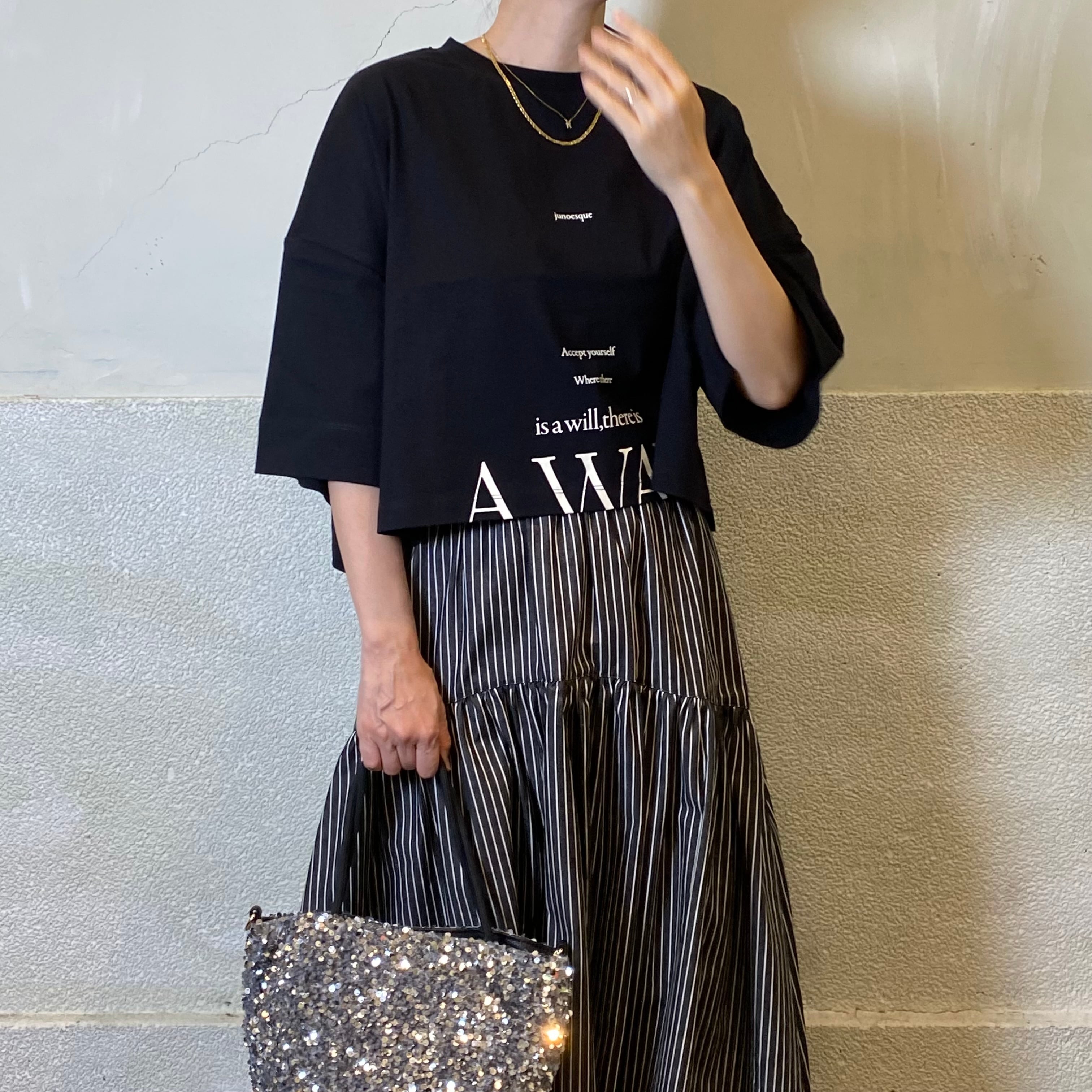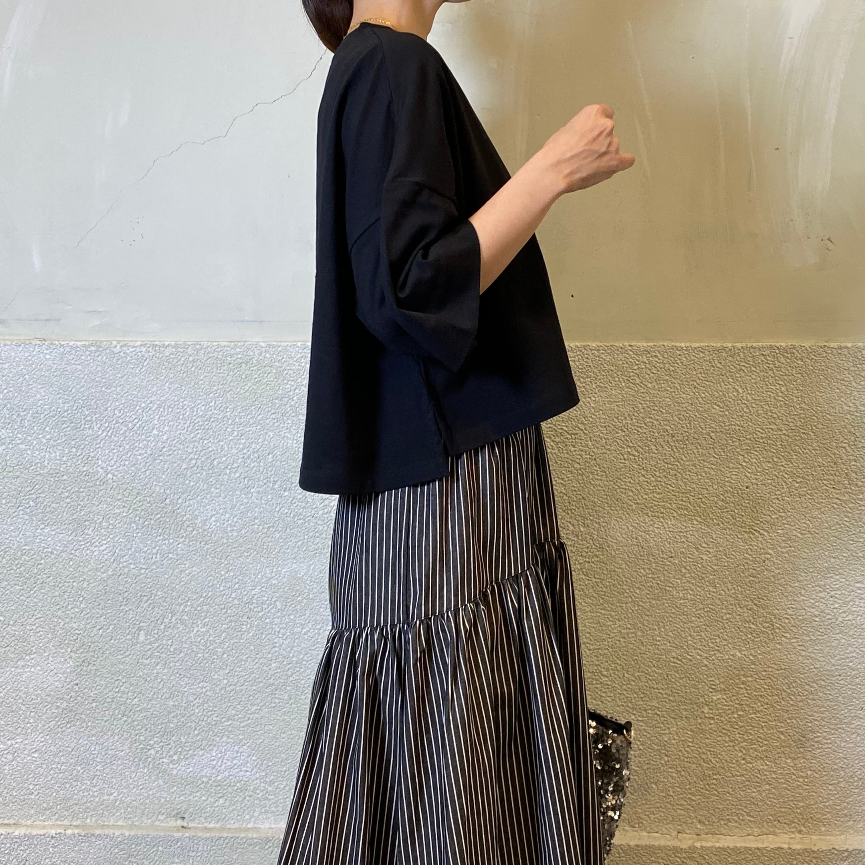 ショート丈で軽やかな印象を与えるTシャツです。