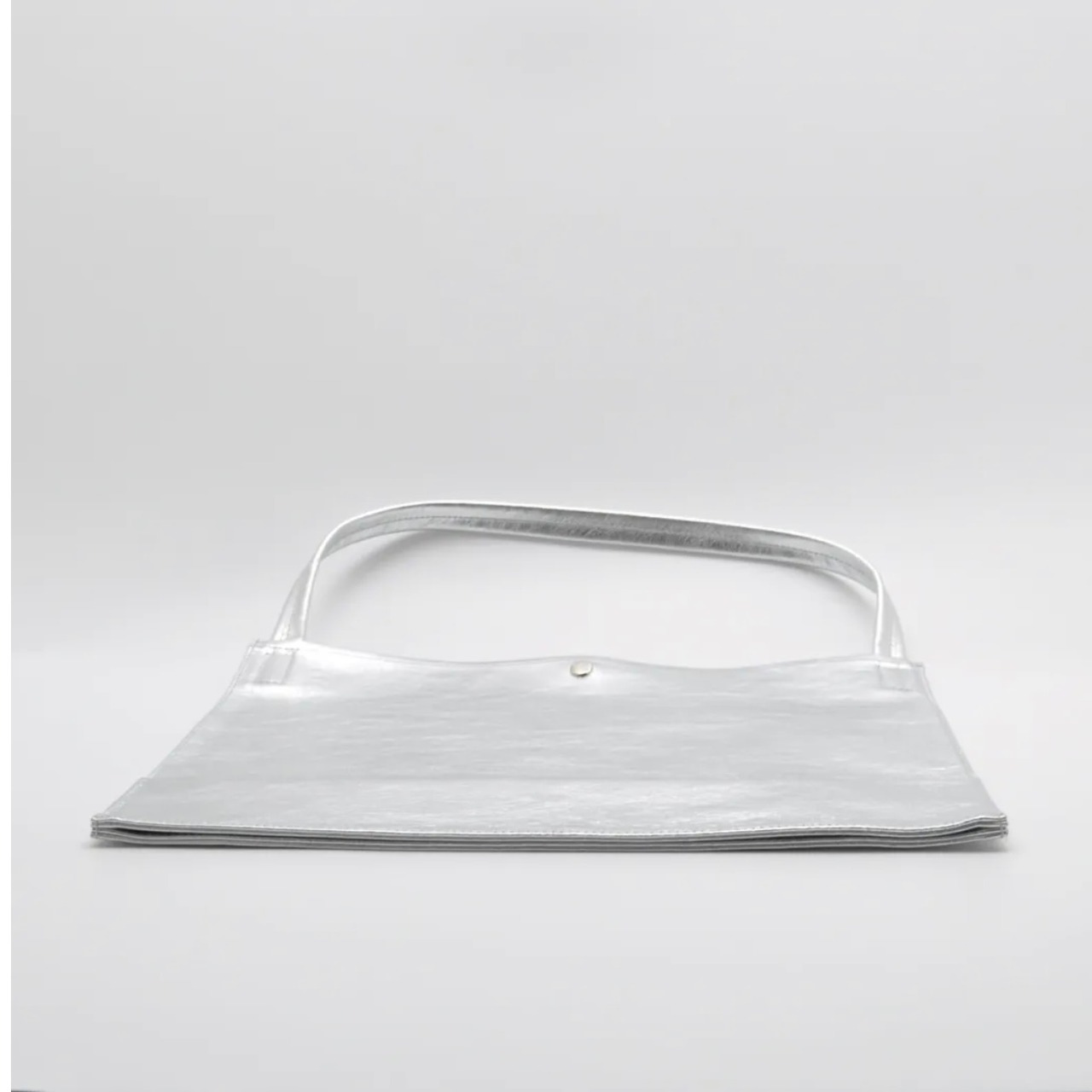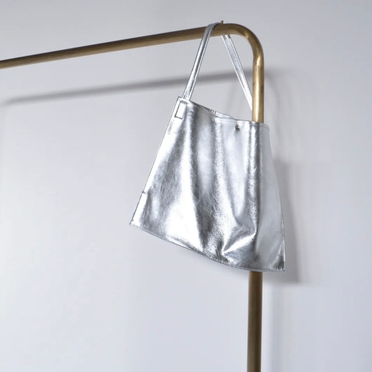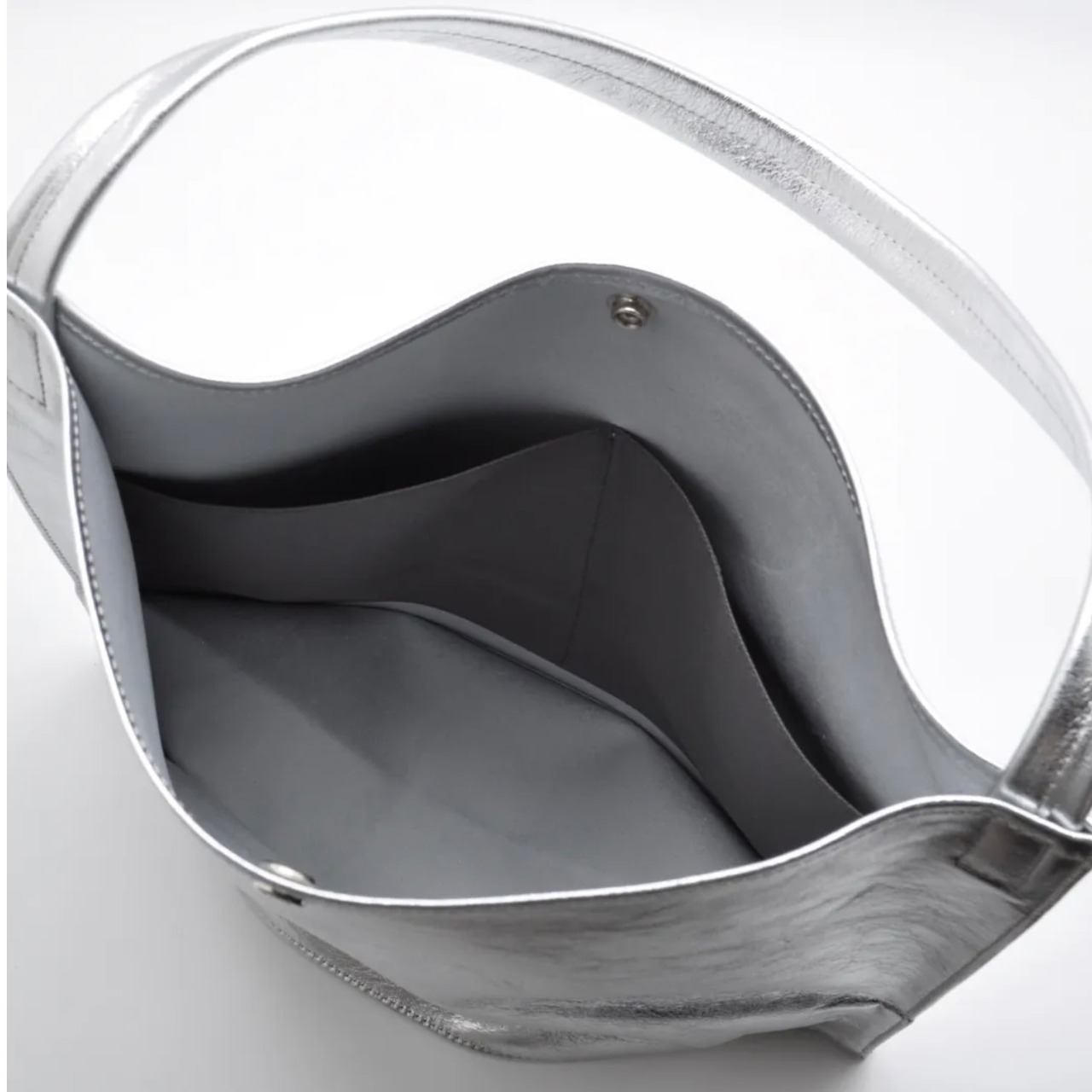 メタリックレザーで仕立てた、軽やかワンハンドルバッグ