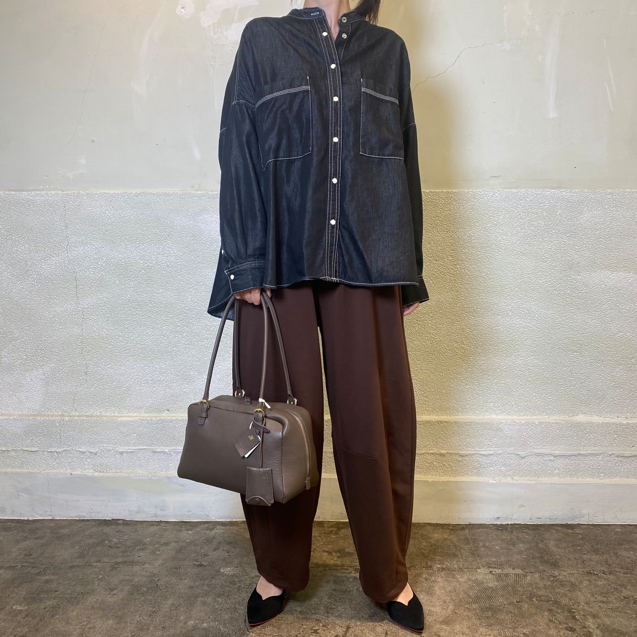 立体的なカーブシルエットが特徴のコクーンパンツ。