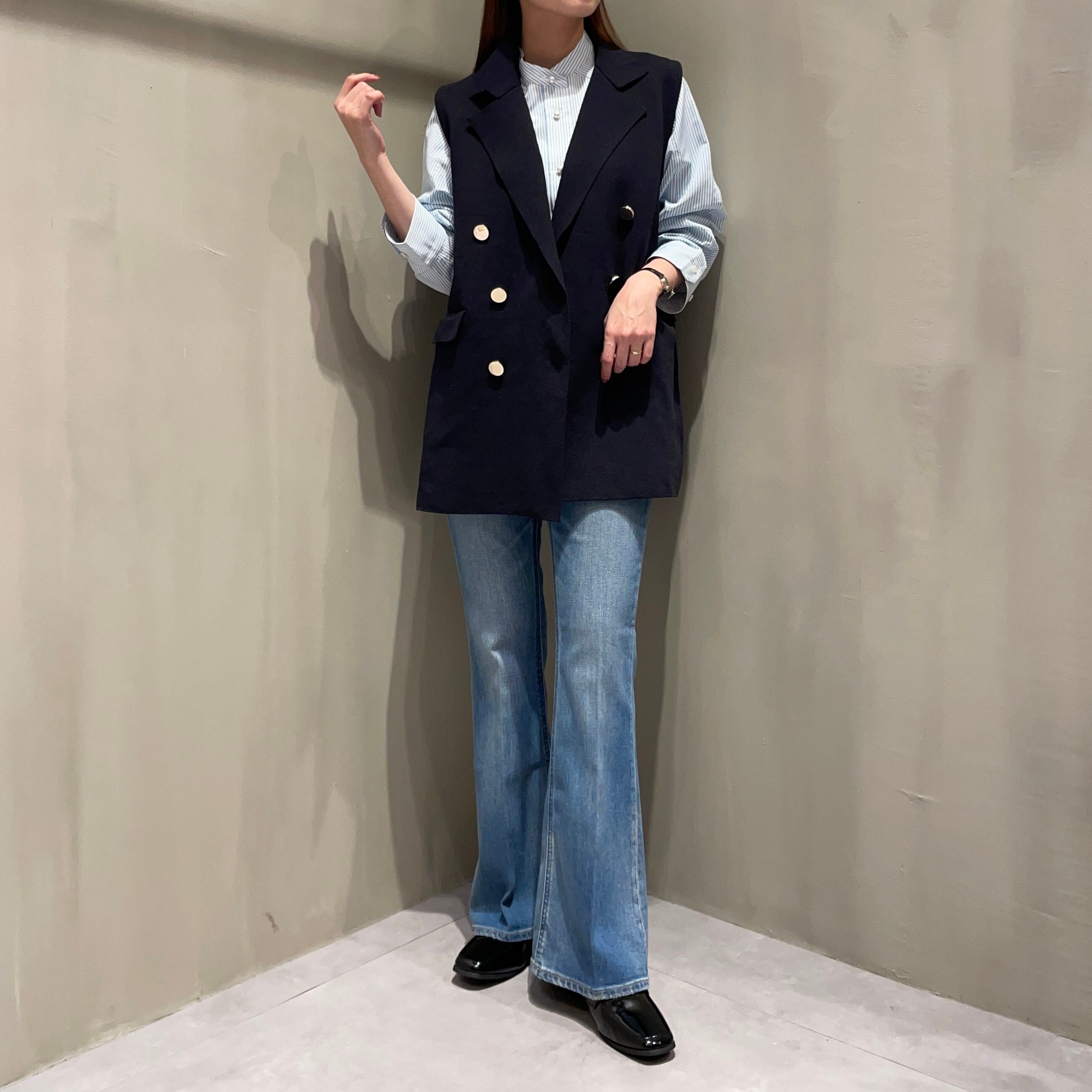 Pコートのベストの様なデザインは合わせて頂くスタイルで色々な表情に変化します。