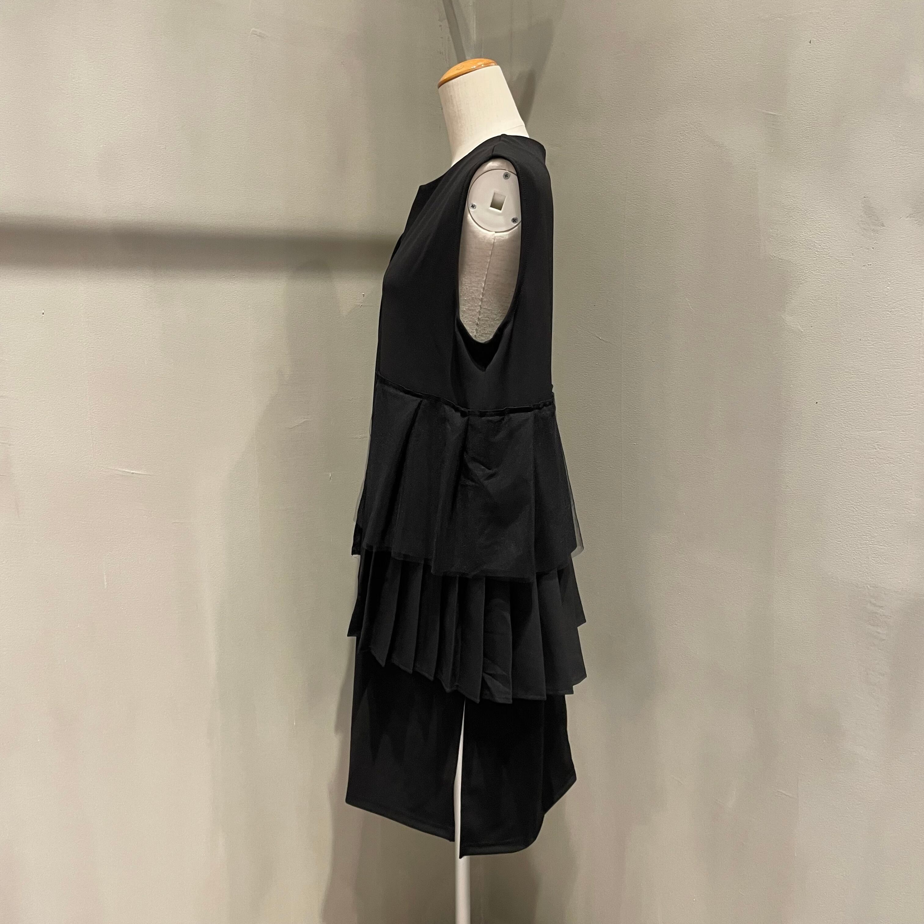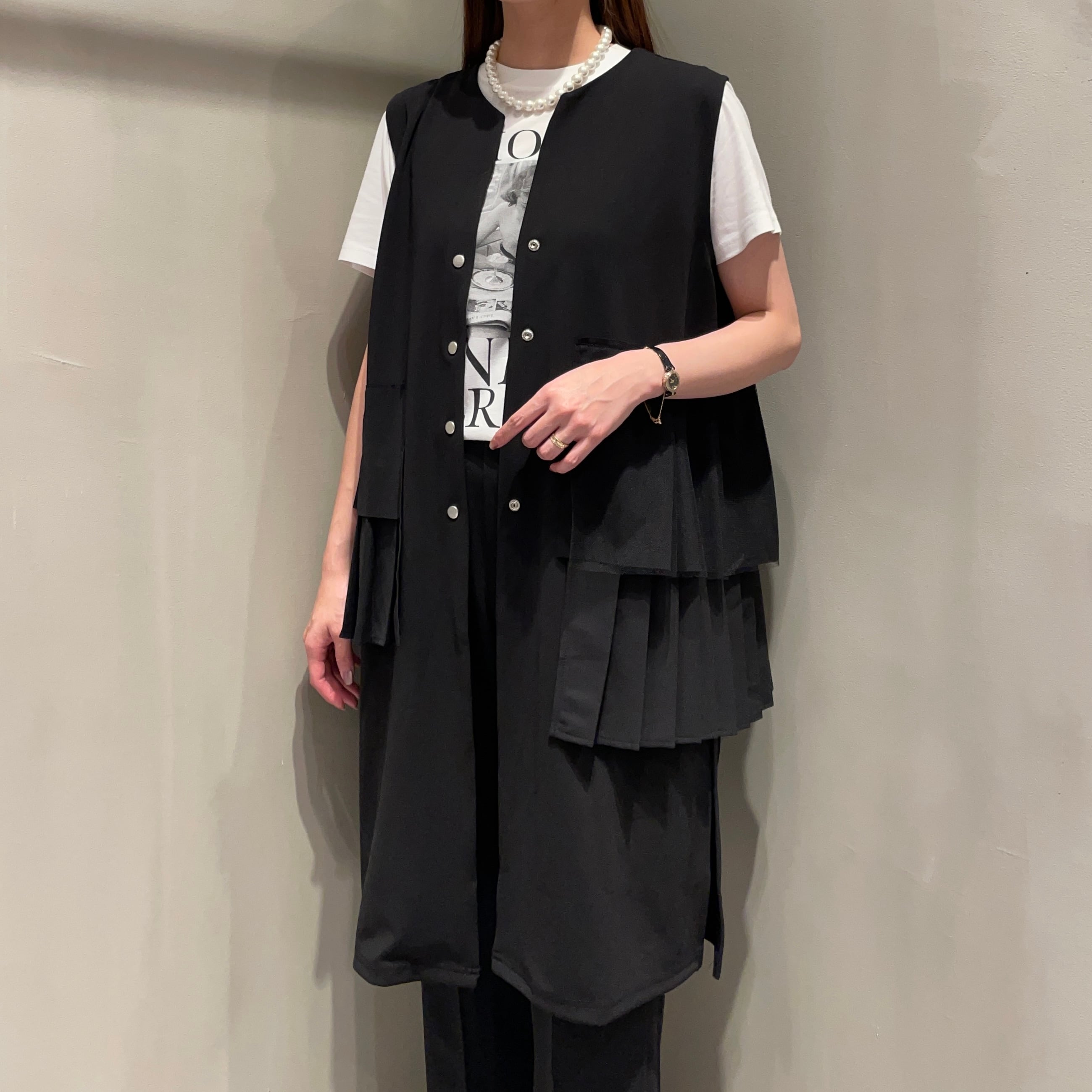 【残り僅か!】botanical/アシンメトリープリーツ&チュールデザインロングベスト