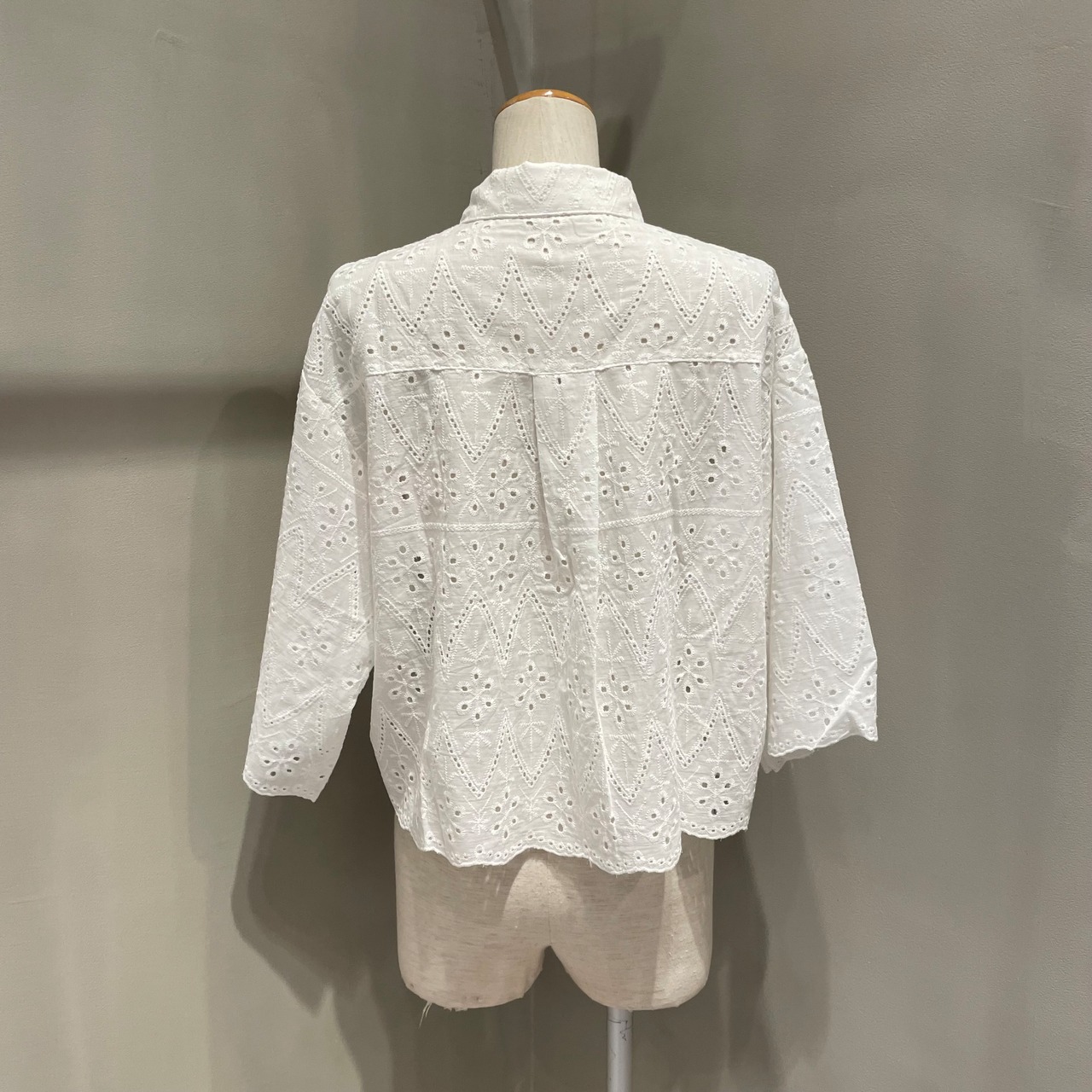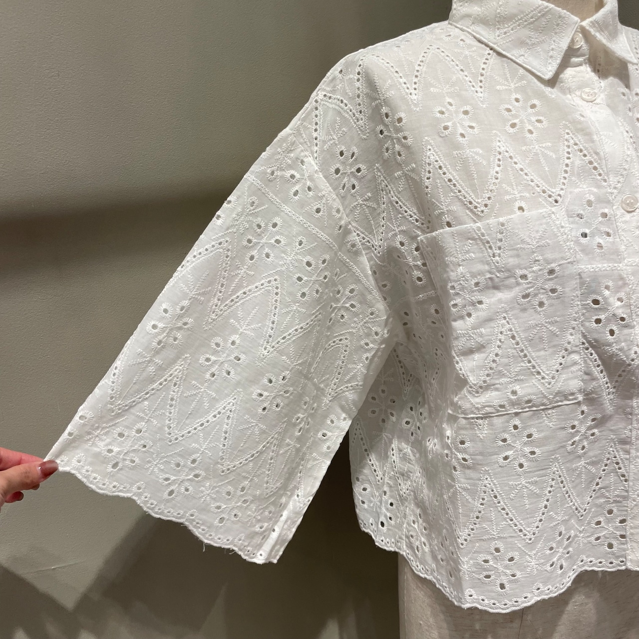 【再入荷】botanical/スカラップコットンレースハーフスリーブブラウス