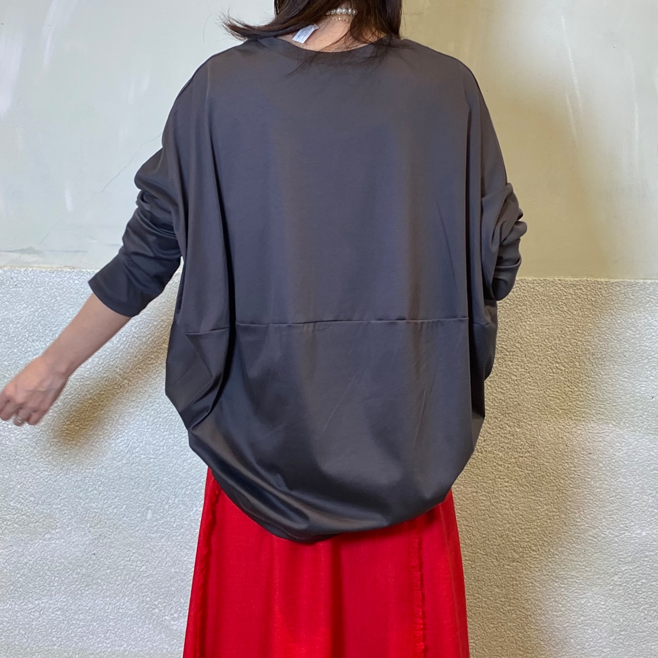 1枚でオシャレ見えするコクーンシルエットロンT。