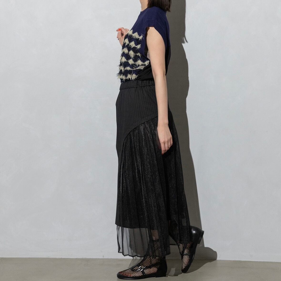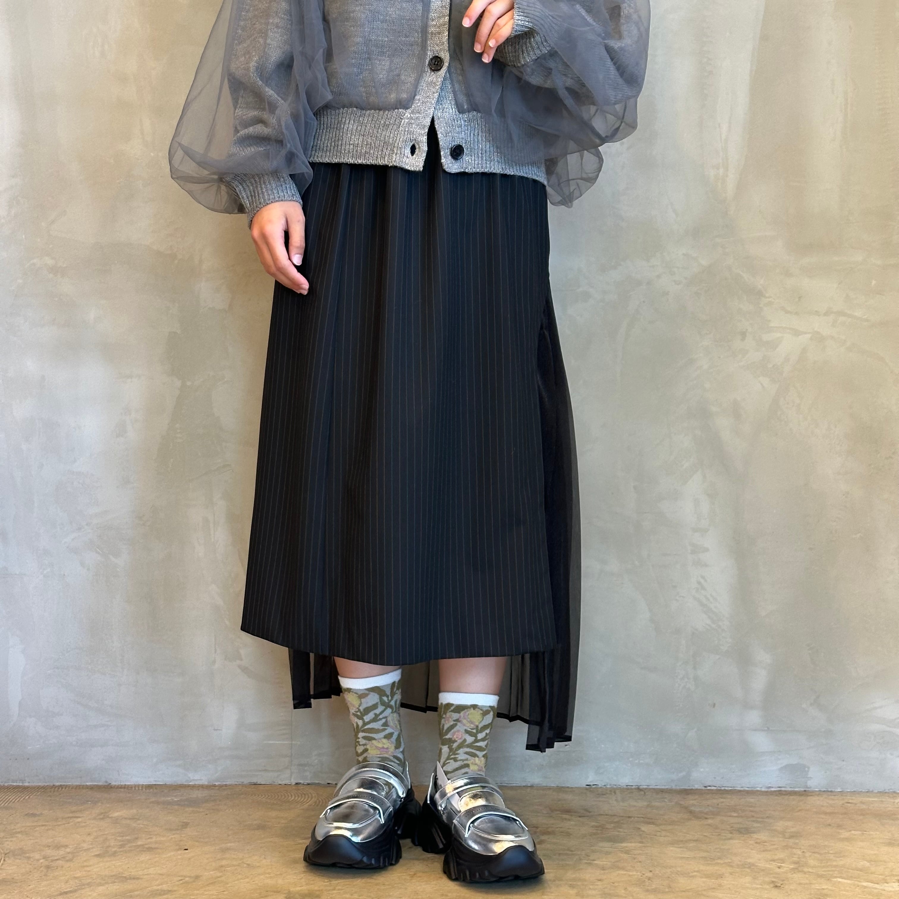 ブラック系とグレー系のプリーツ部分はシアー素材を使用しているので、裾に透け感が出てモード感のある着こなしを演出します。