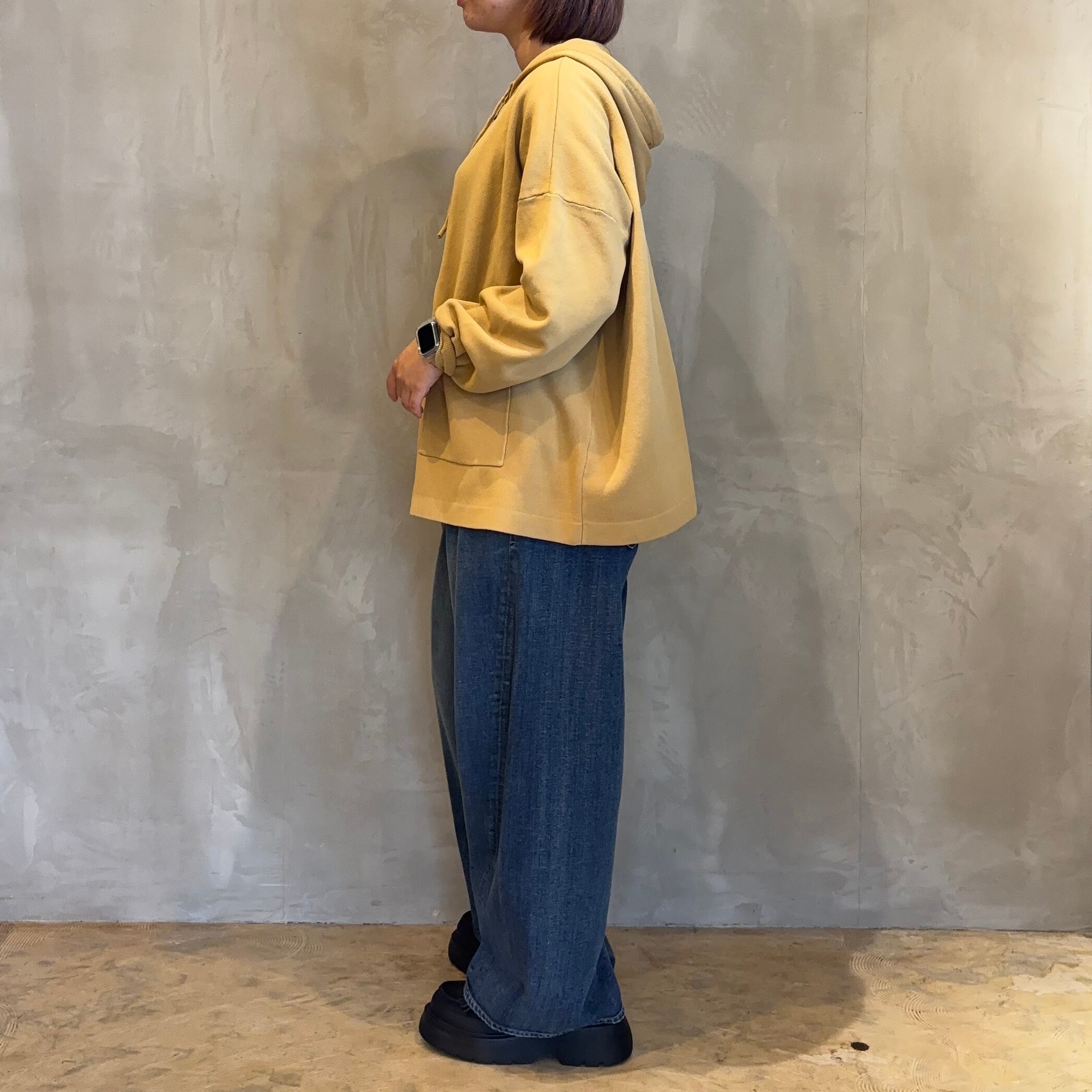 フード付きのデザインは、さりげないアクセントを加え、季節の変わり目にもぴったりです。
