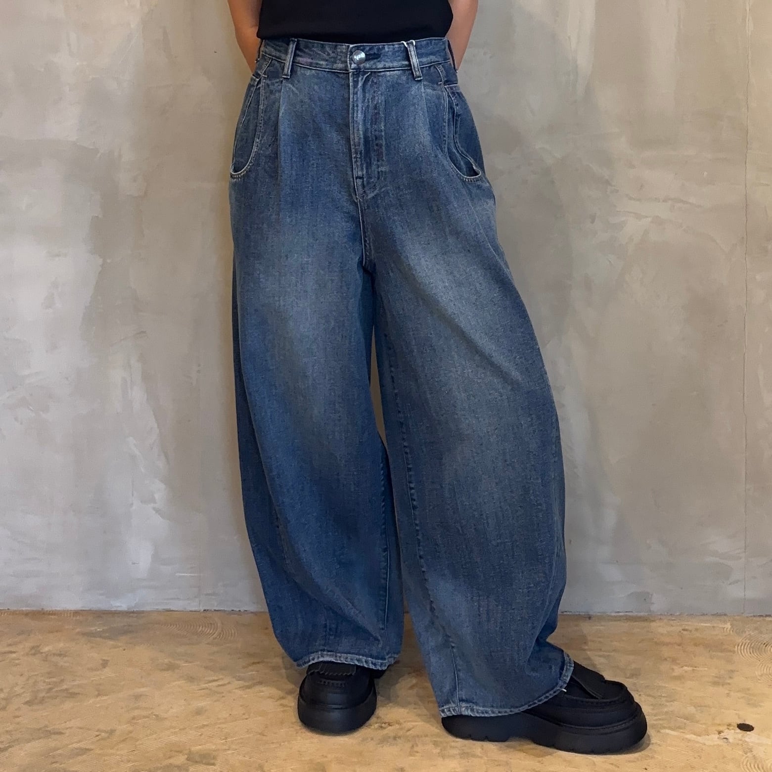 脇線をカーブさせた独特なカッティングにより、立体感と抜け感を両立したストレートバギーシルエットが魅力です。