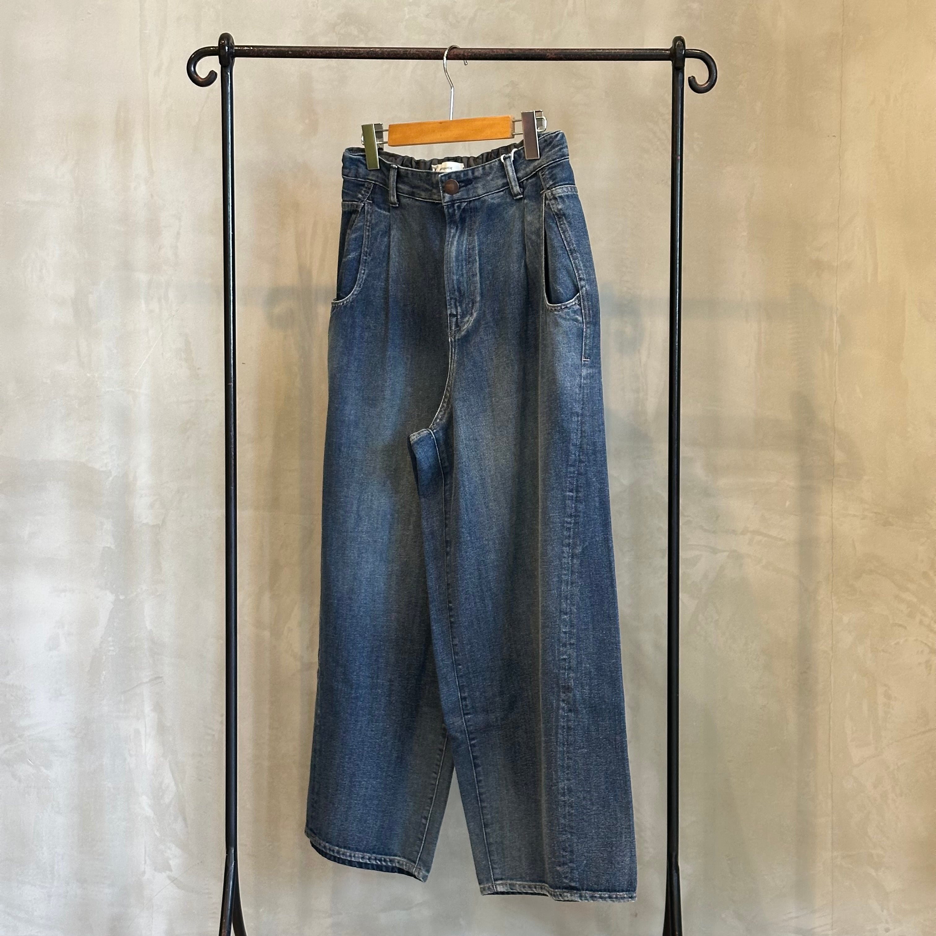 やや深めの股上設計に加え、フロントに施したタックディテールがスタイリングに程よいニュアンスをプラスし、トレンド感あるこなれた印象に。