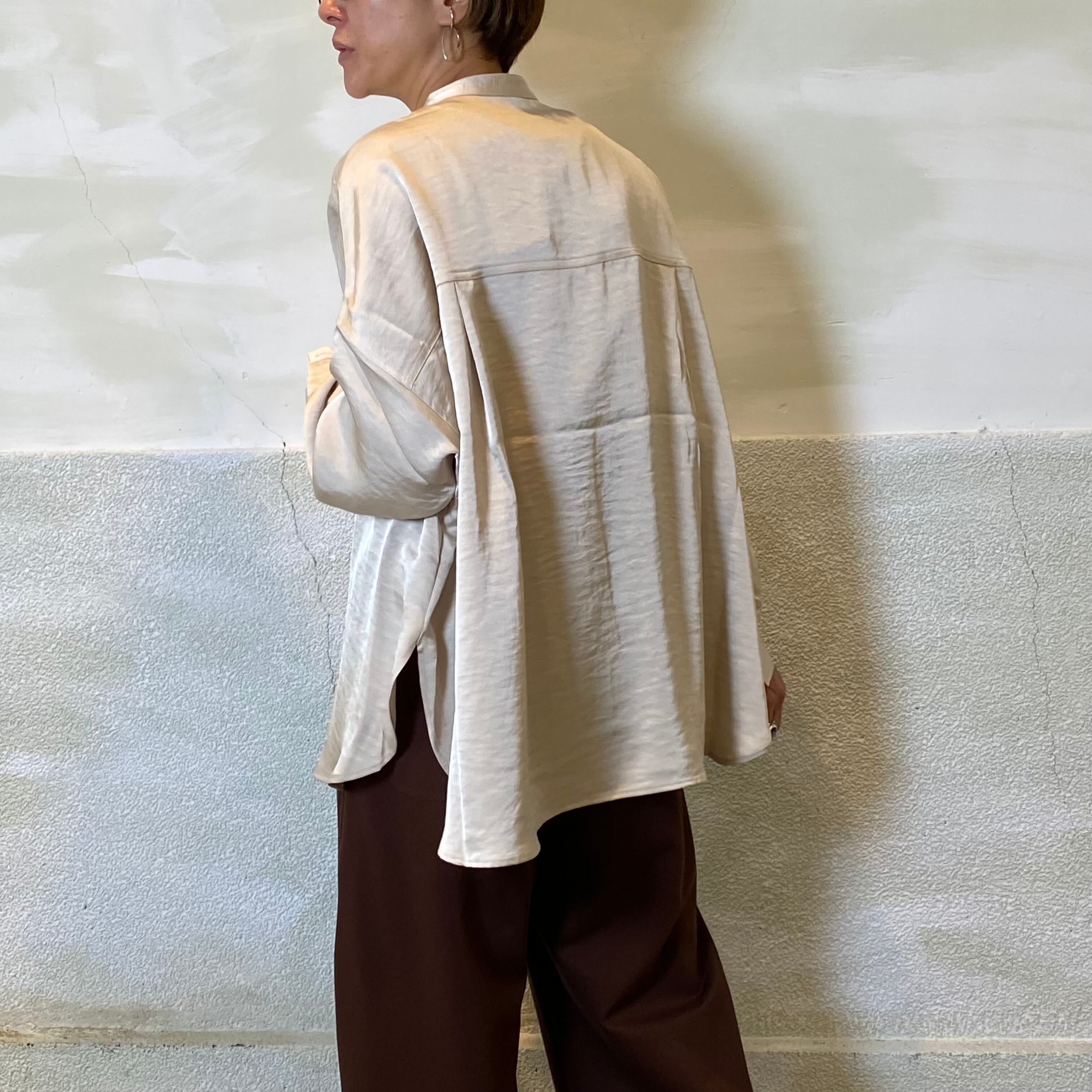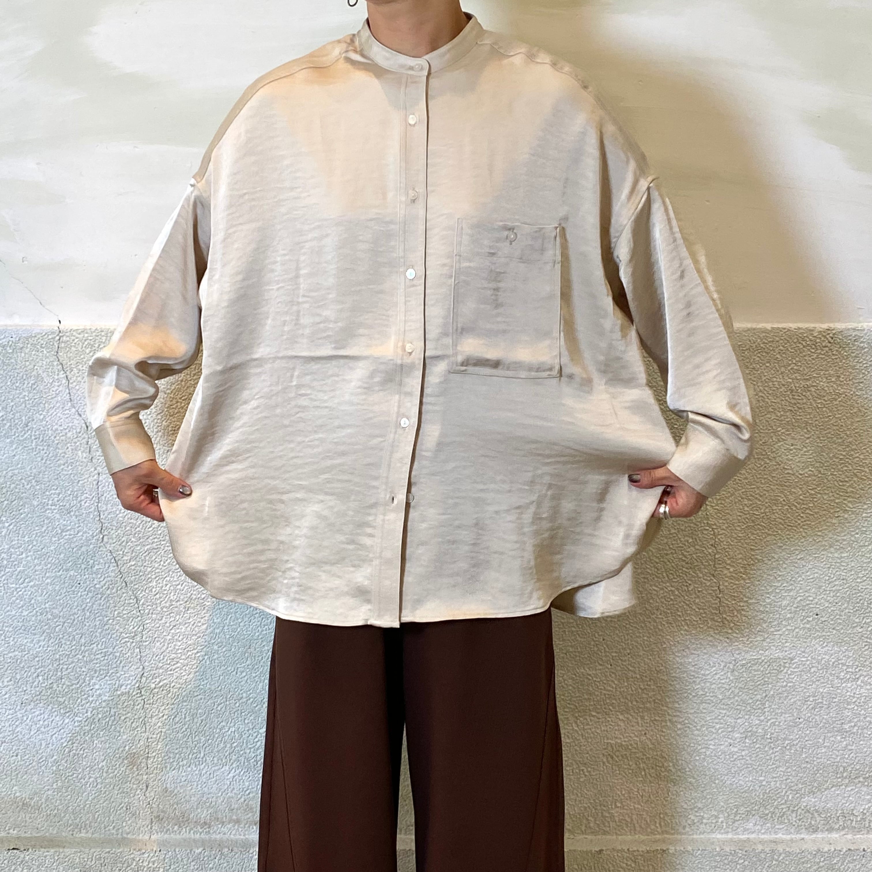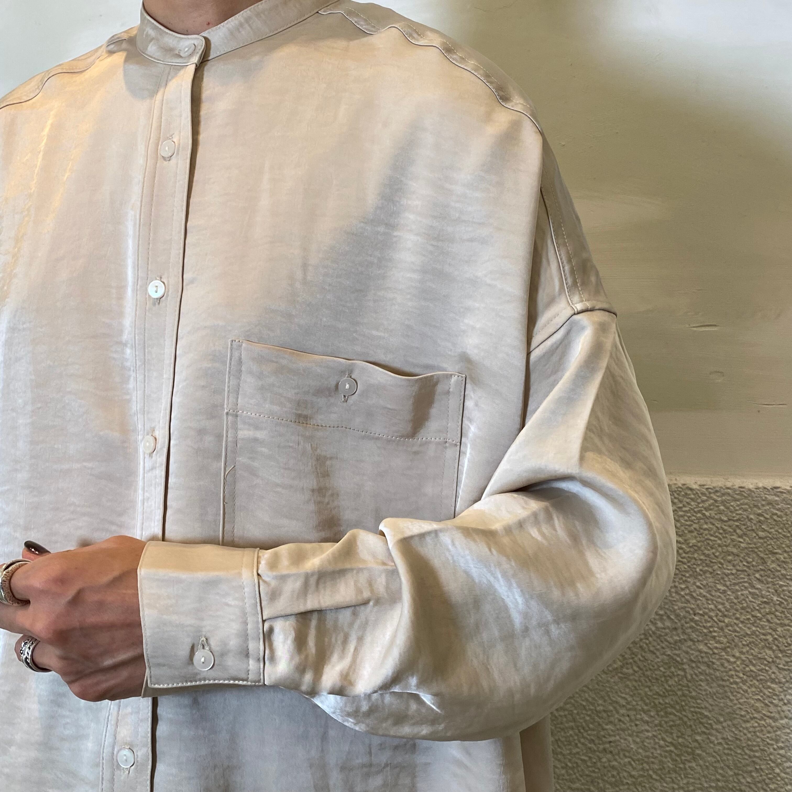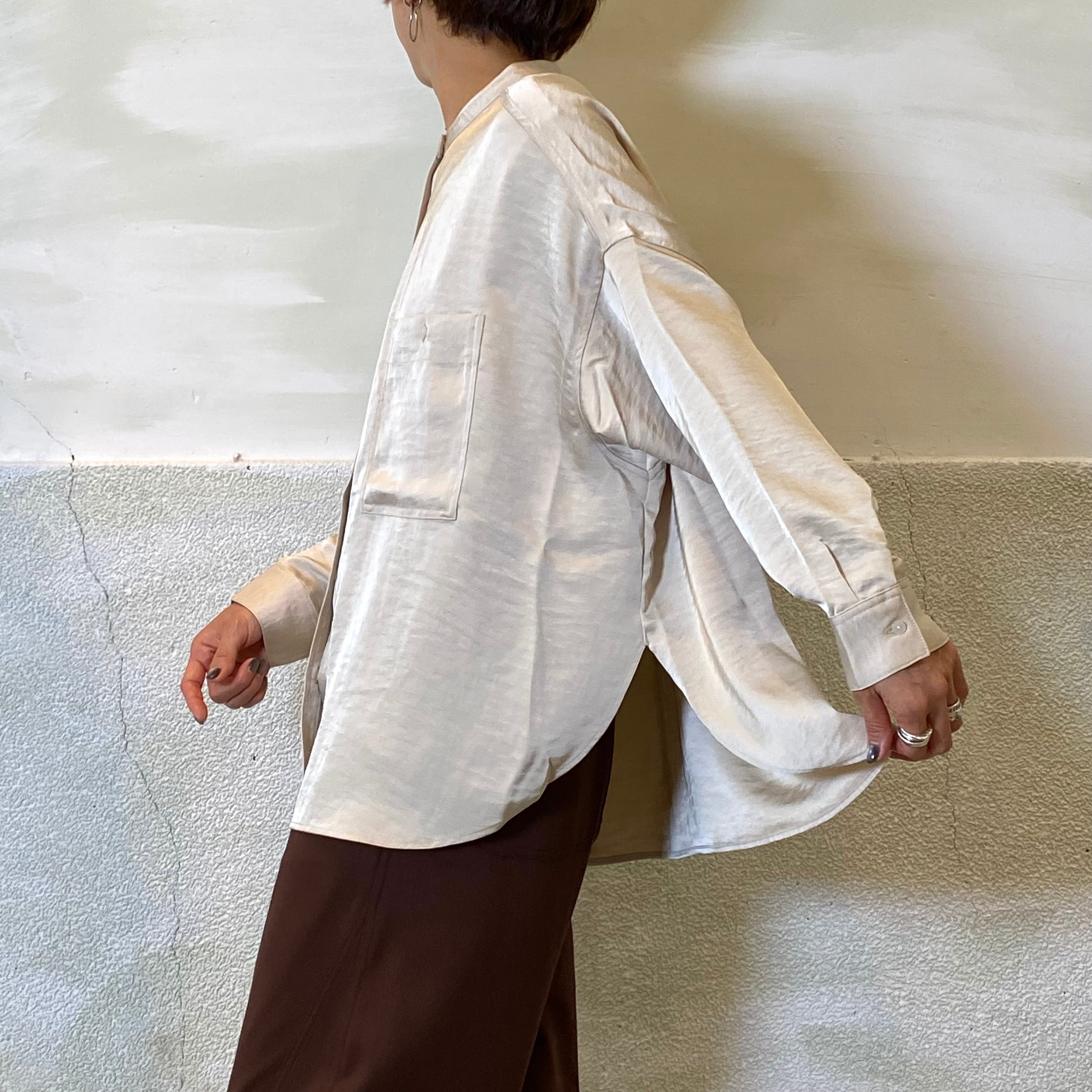botanical/ノーカラーサテンオーバーシャツ