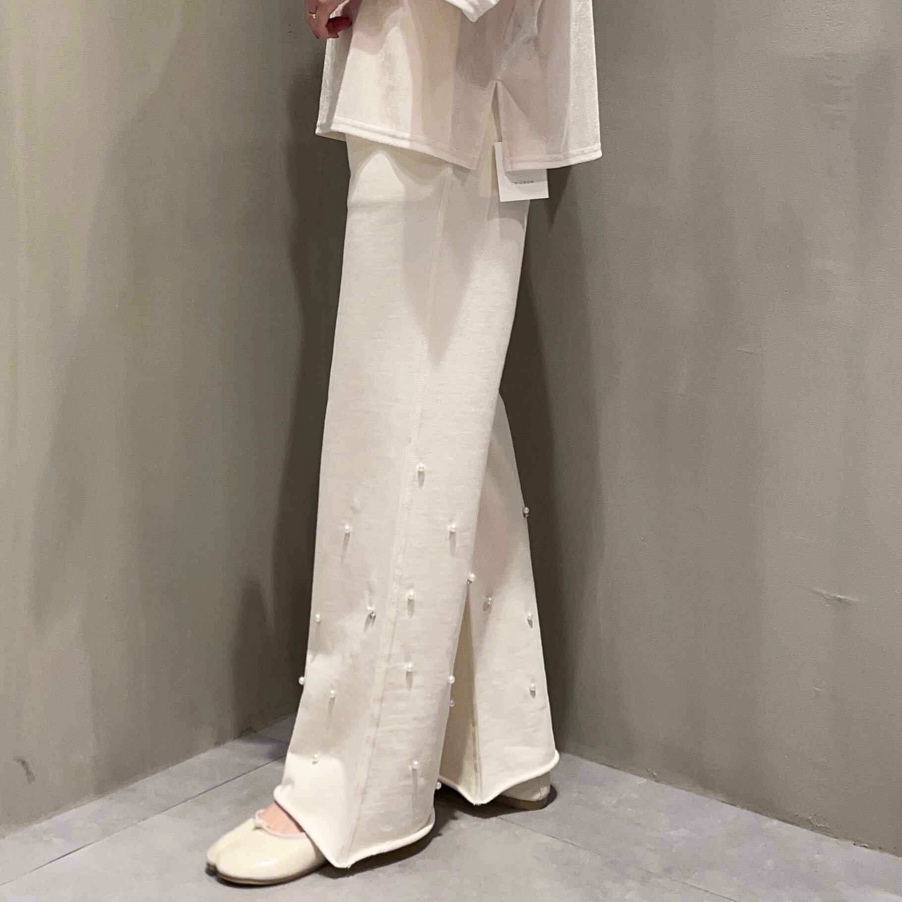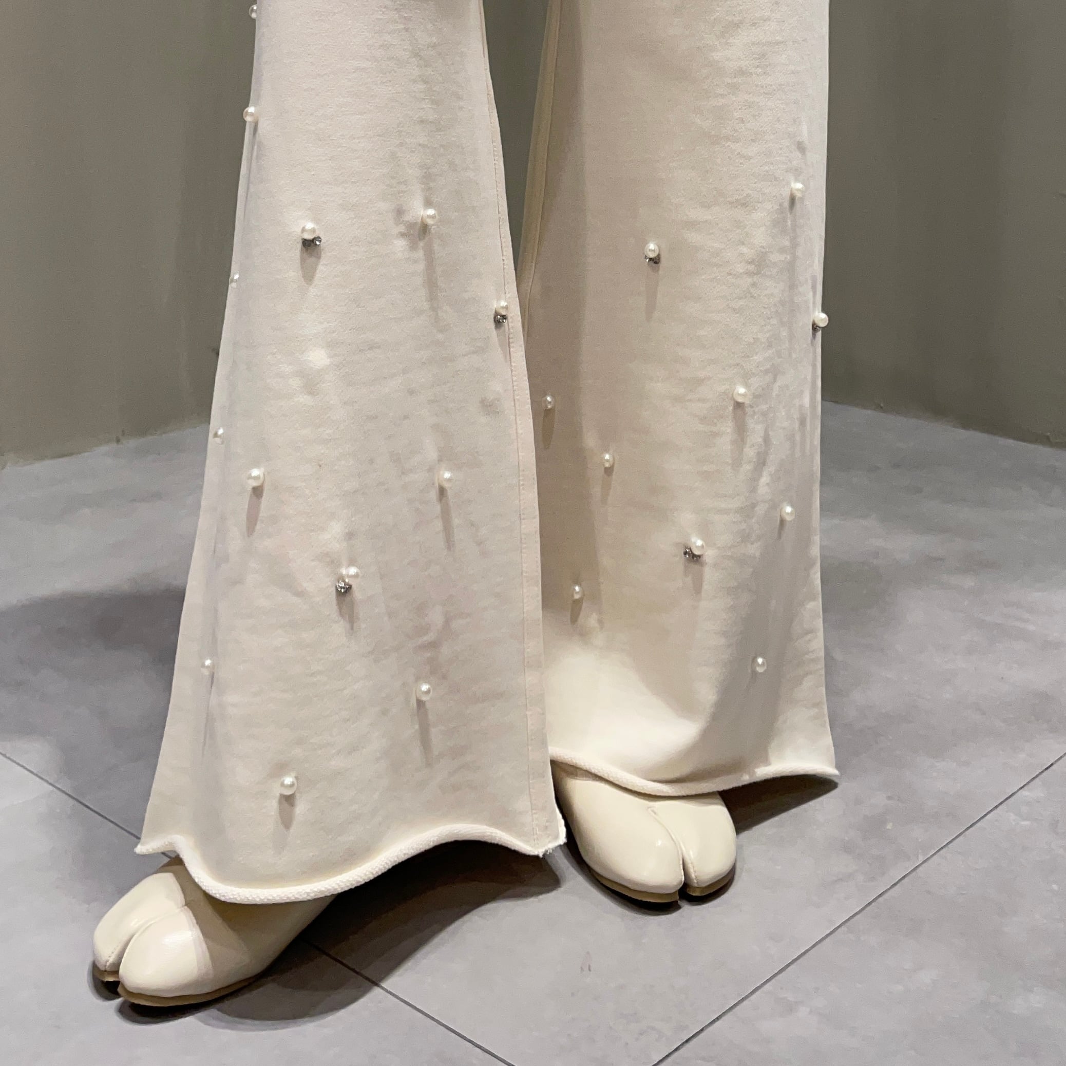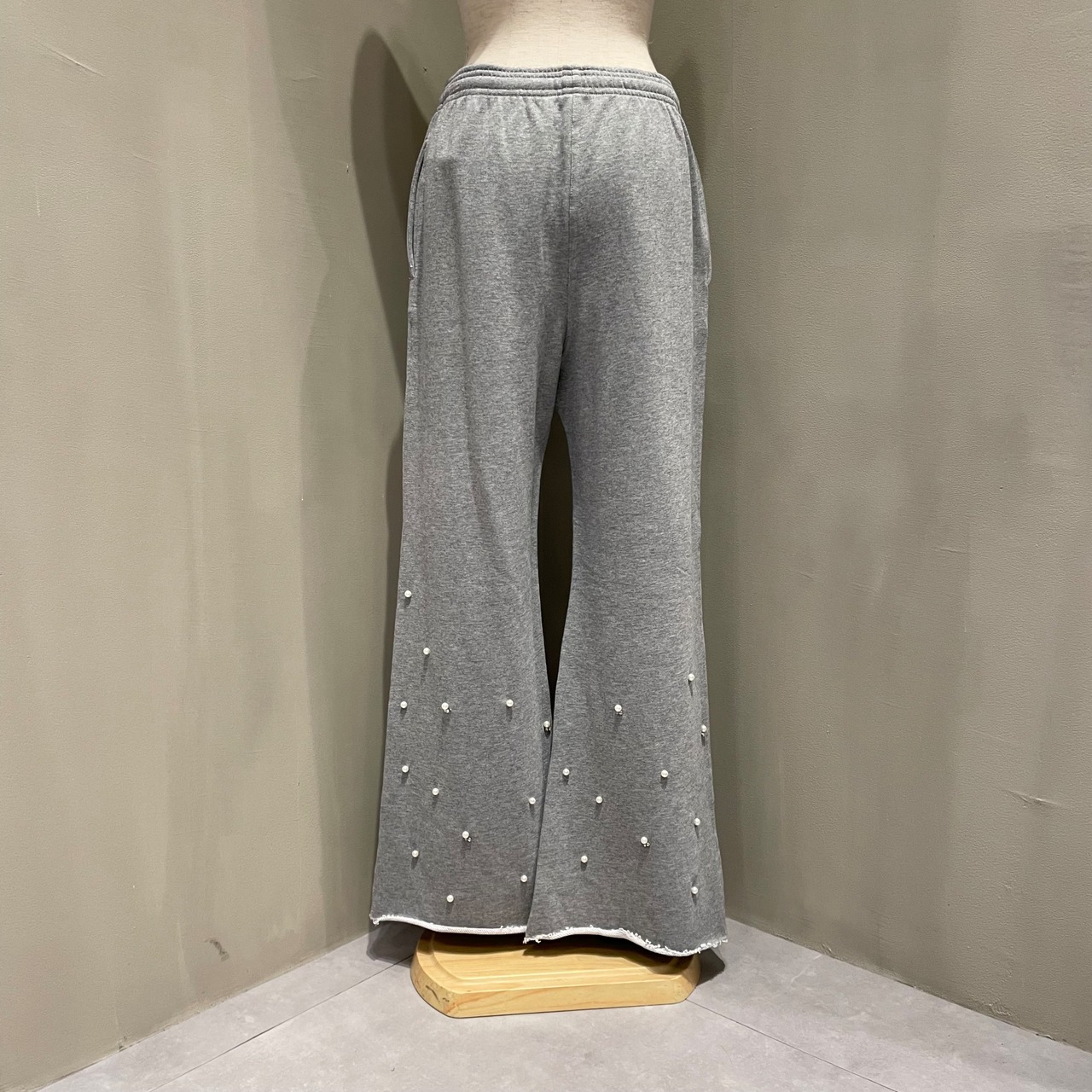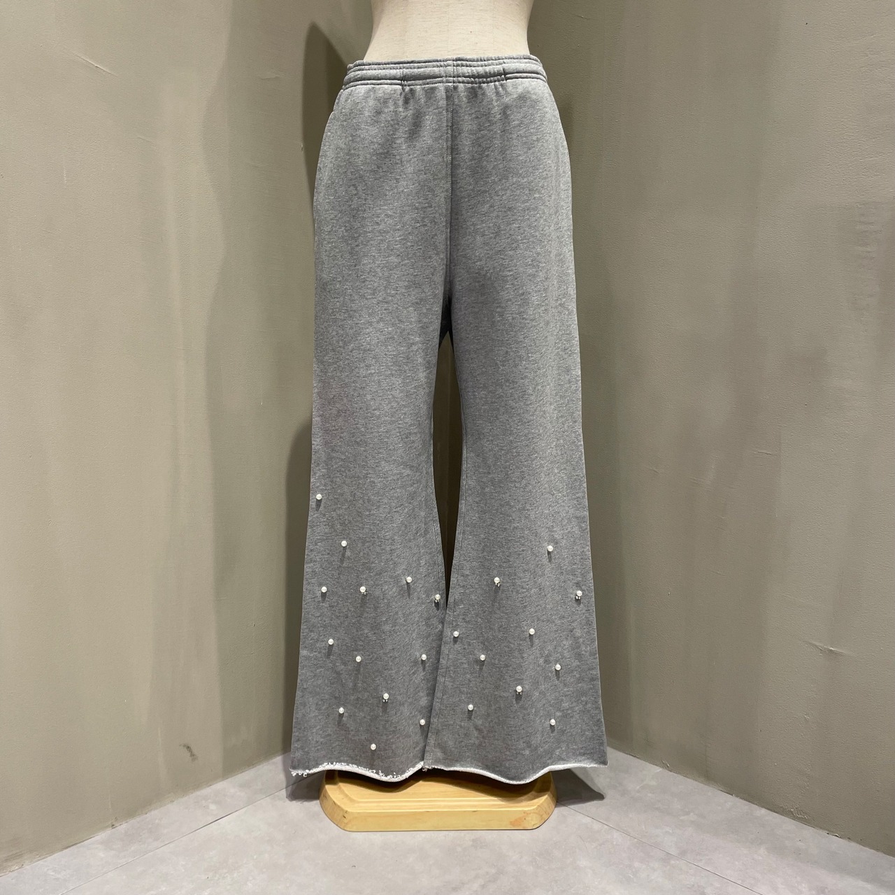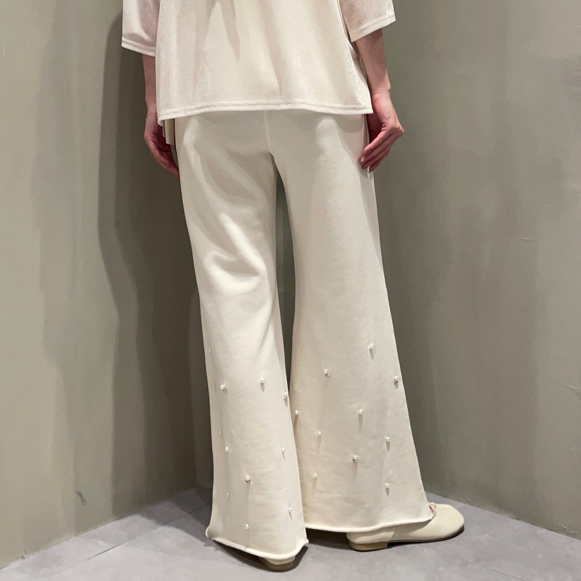 裾のパール&ラインストーンが主役級のスウェットパンツ。