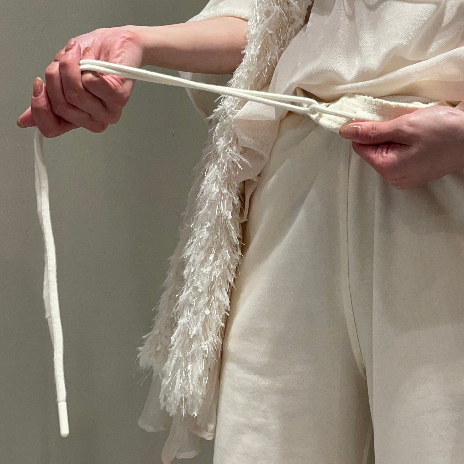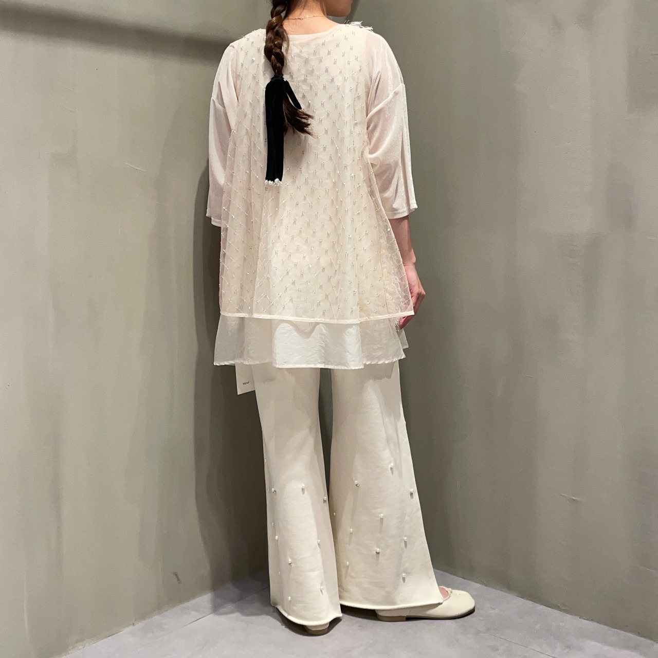 そんな大人の女性に向けて、フレアシルエット×ビジューの上品なデザインで"スウェット=部屋着"の概念を覆す一本に仕上げました。