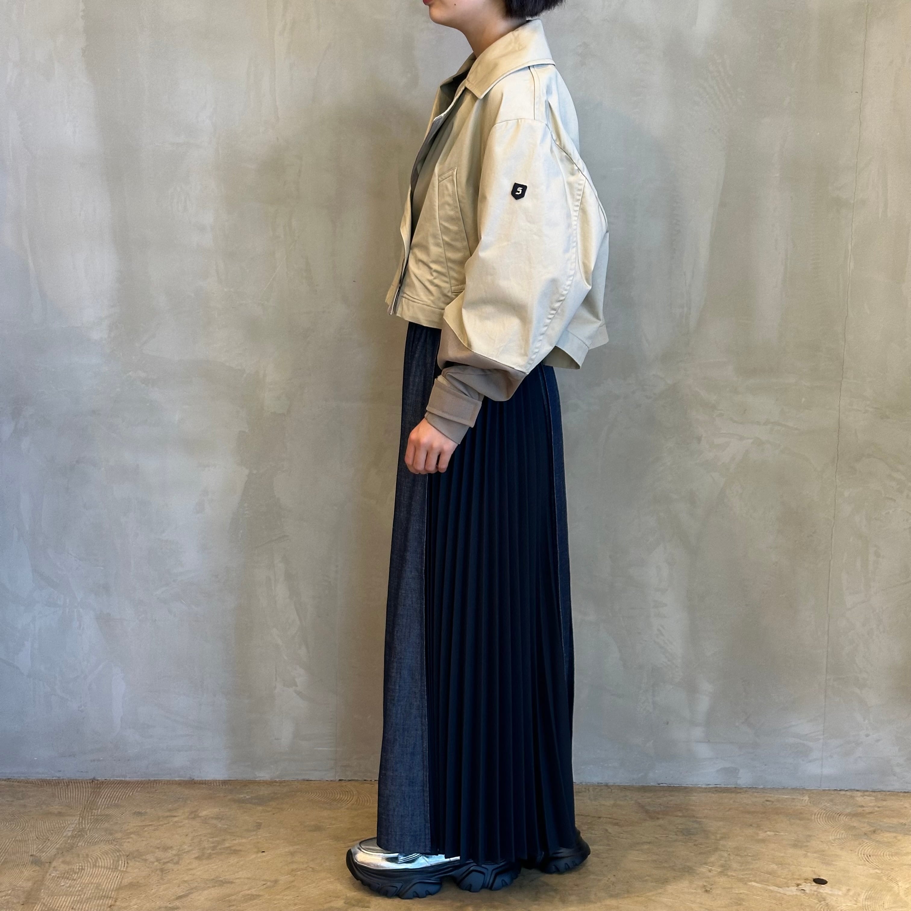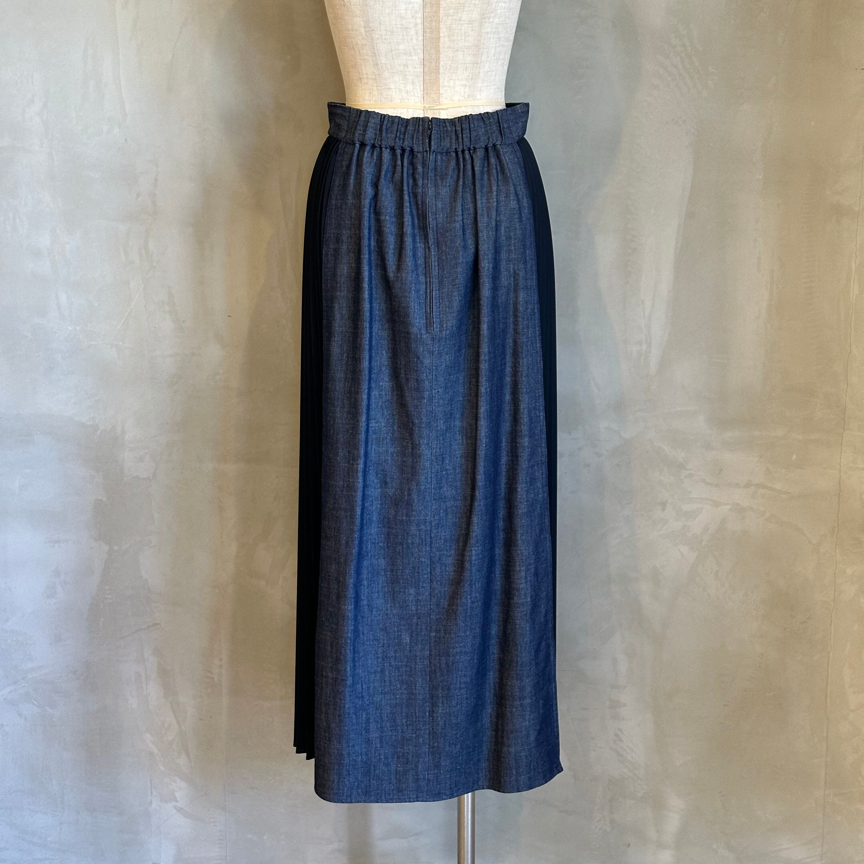 サイドが異素材プリーツの切り替えになったデニムスカート