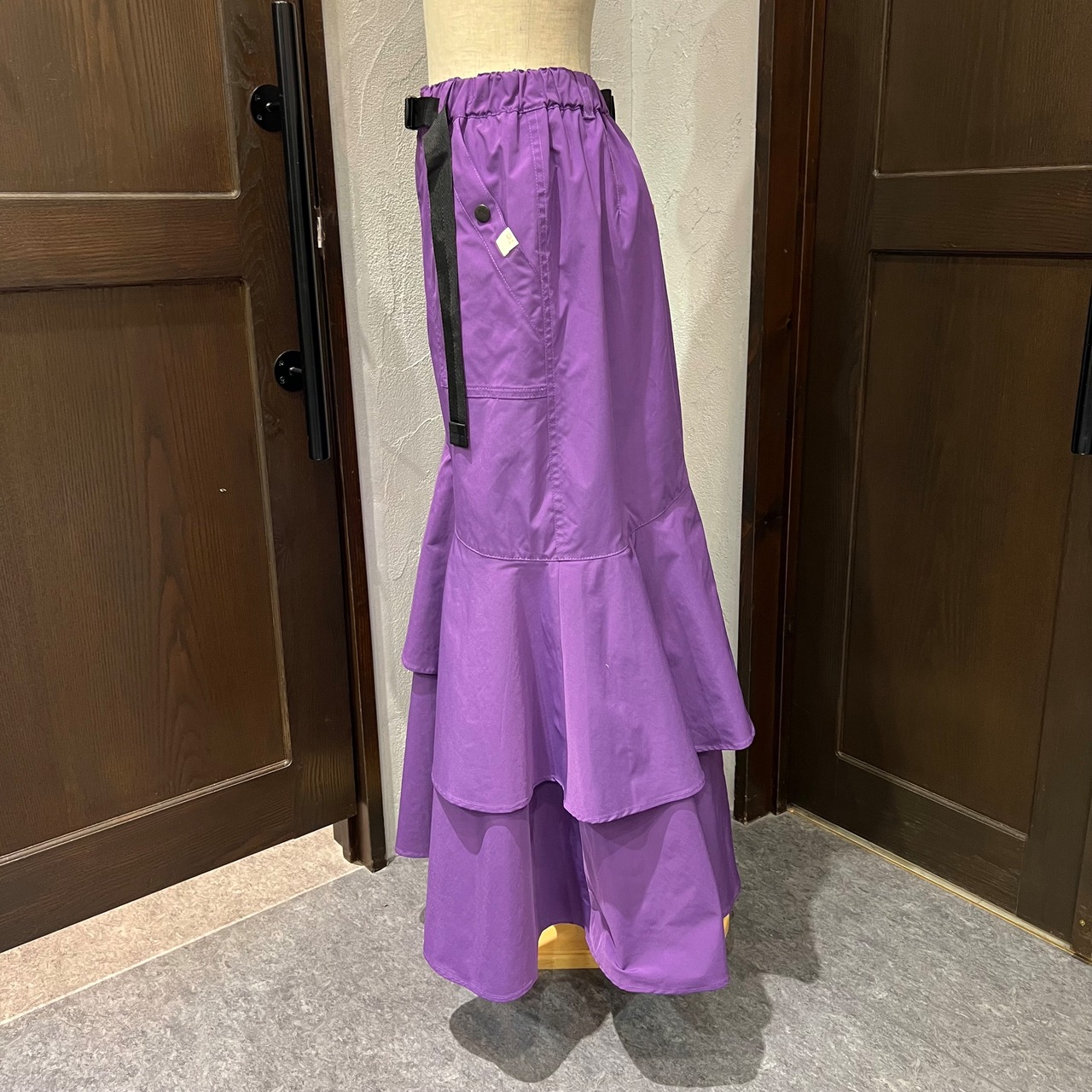 こちらは、カーゴポケットのデザインとフリル切替を組み合わせたベルト付きスカートです。