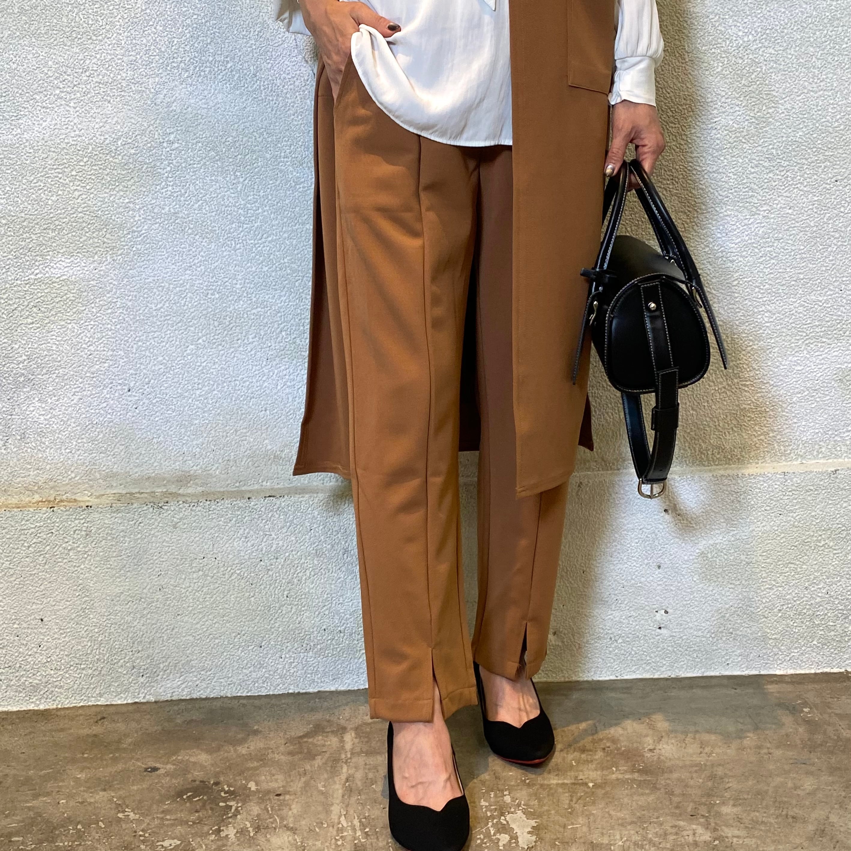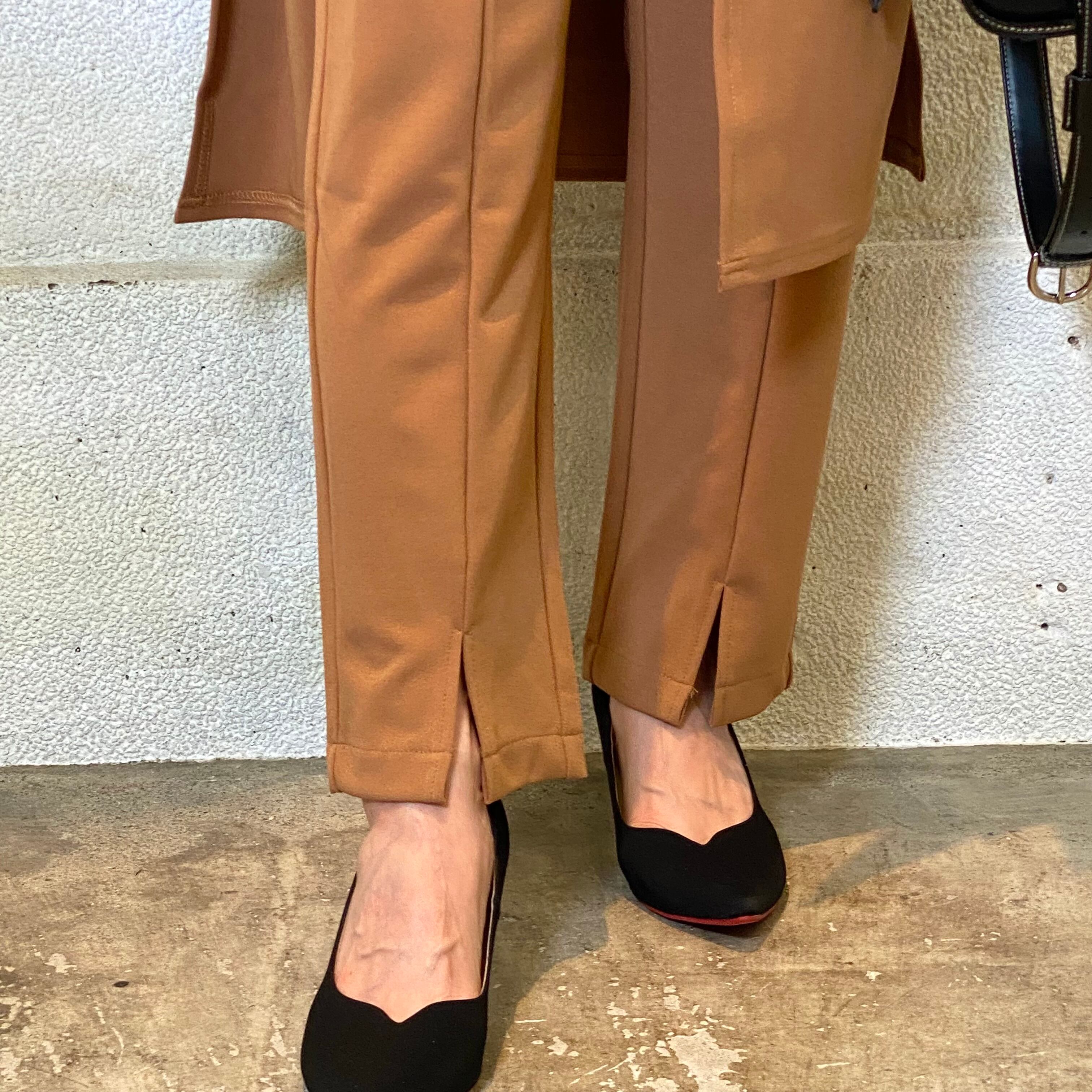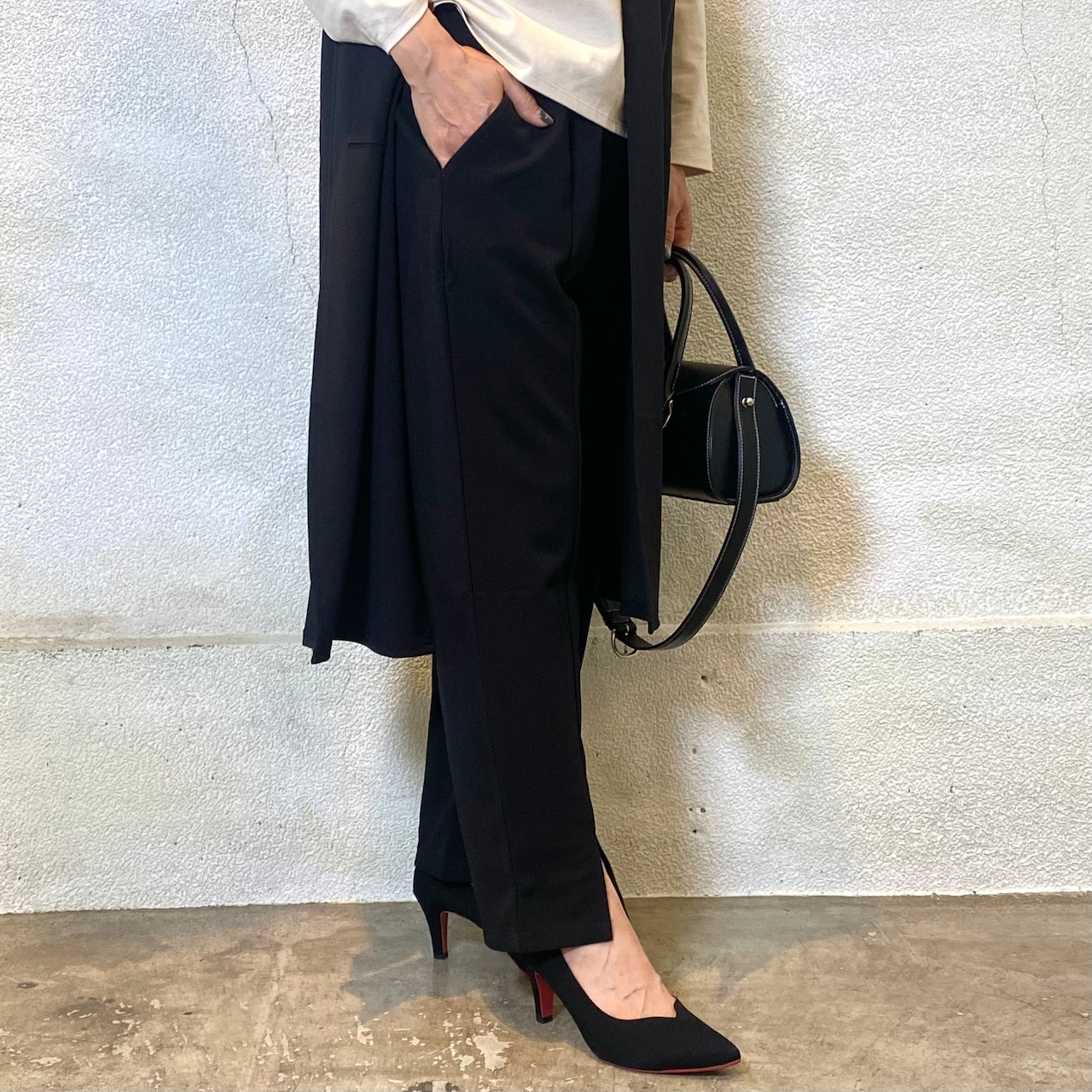 前スリットはファスナーで開閉だからお好みの足元バランスで仕上げて◎