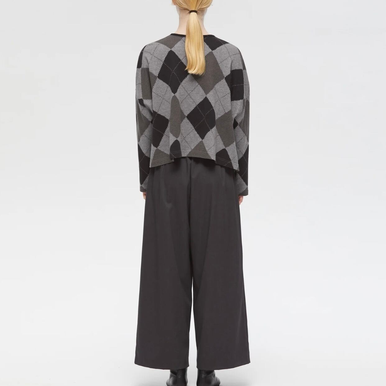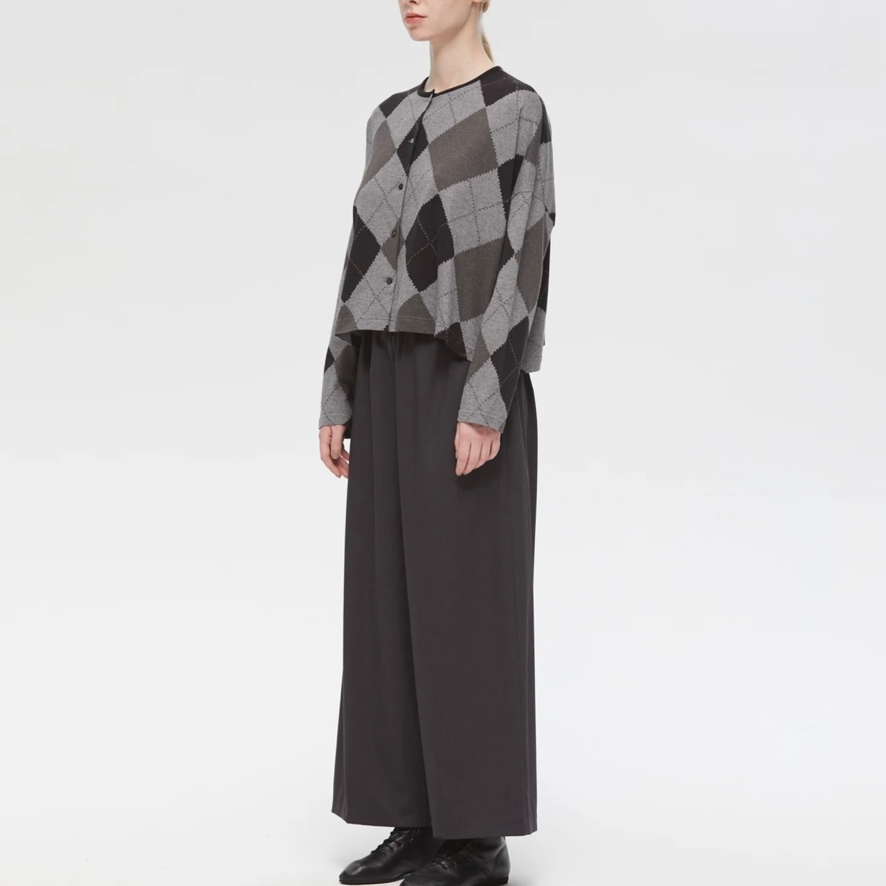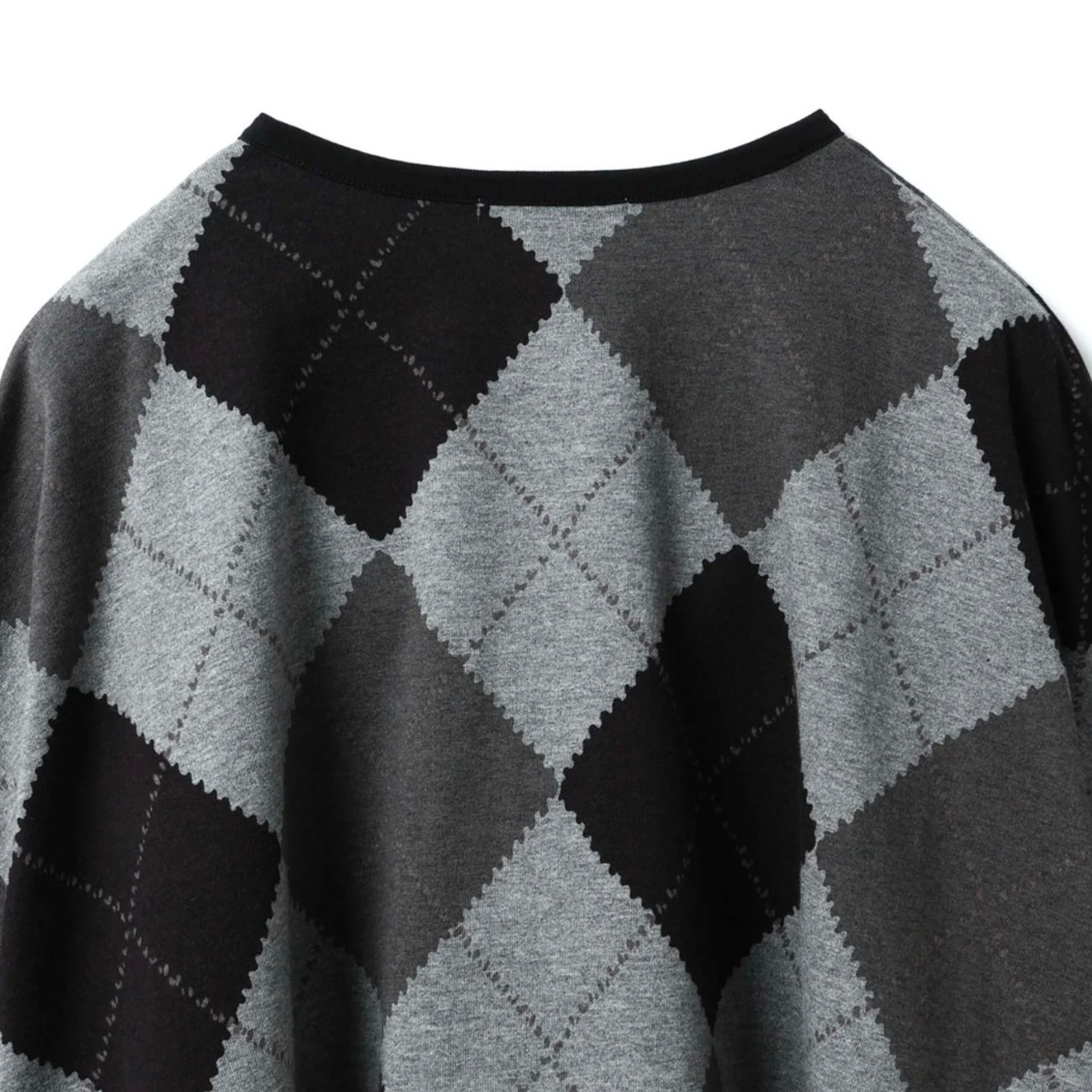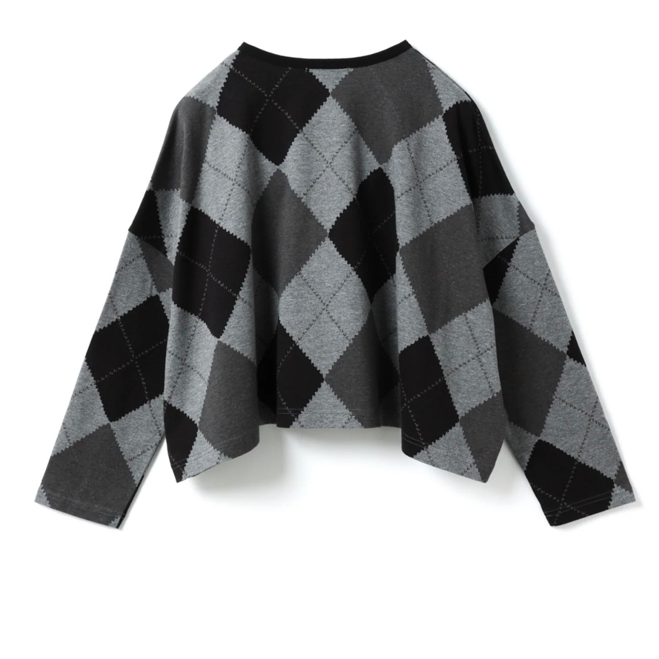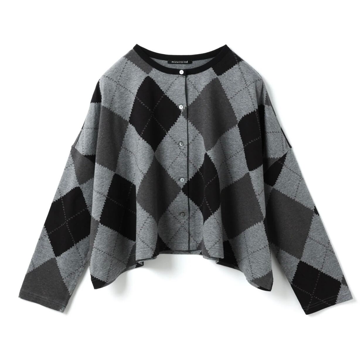 大きなダイア柄がプリントされたアーガイルプリントカーディガンです。