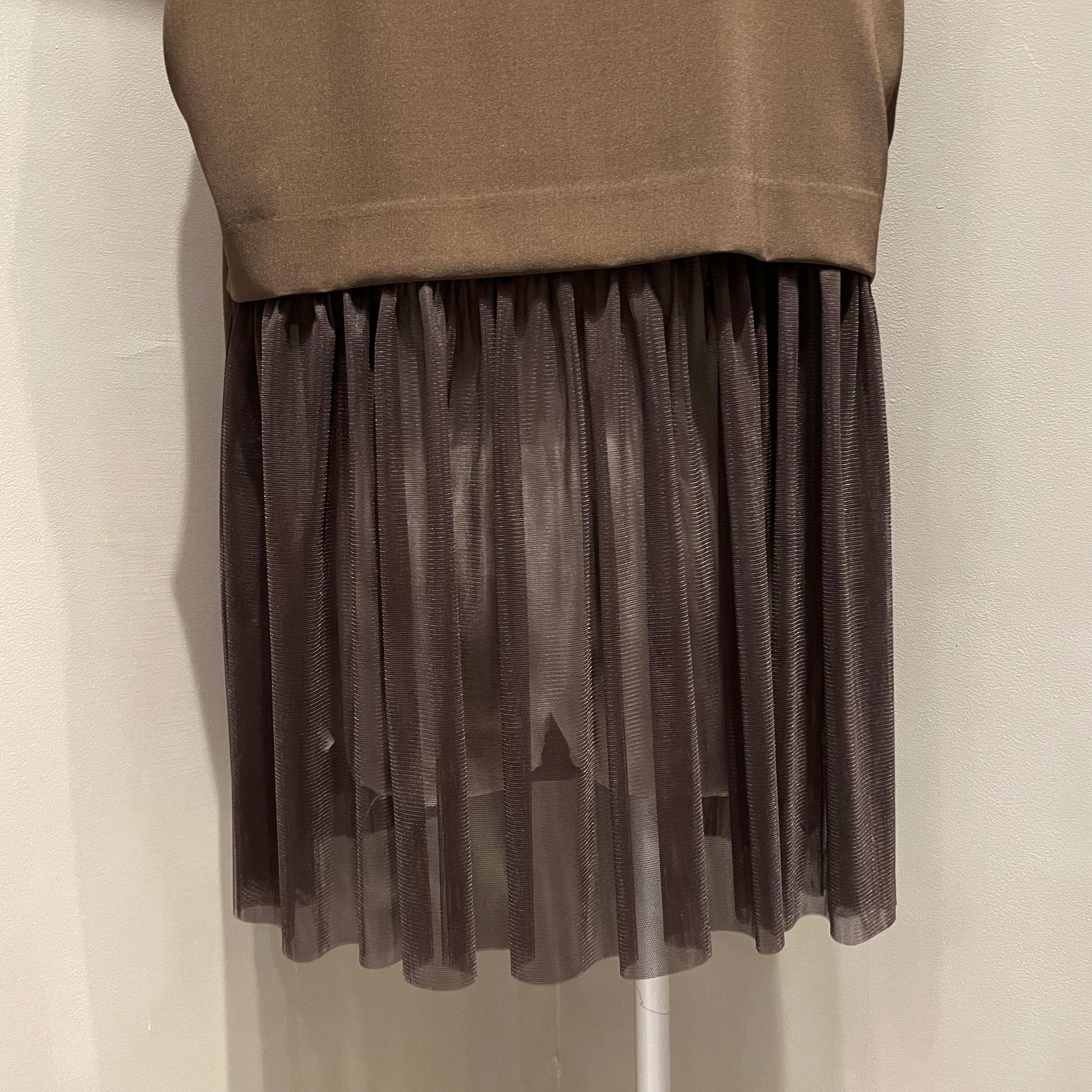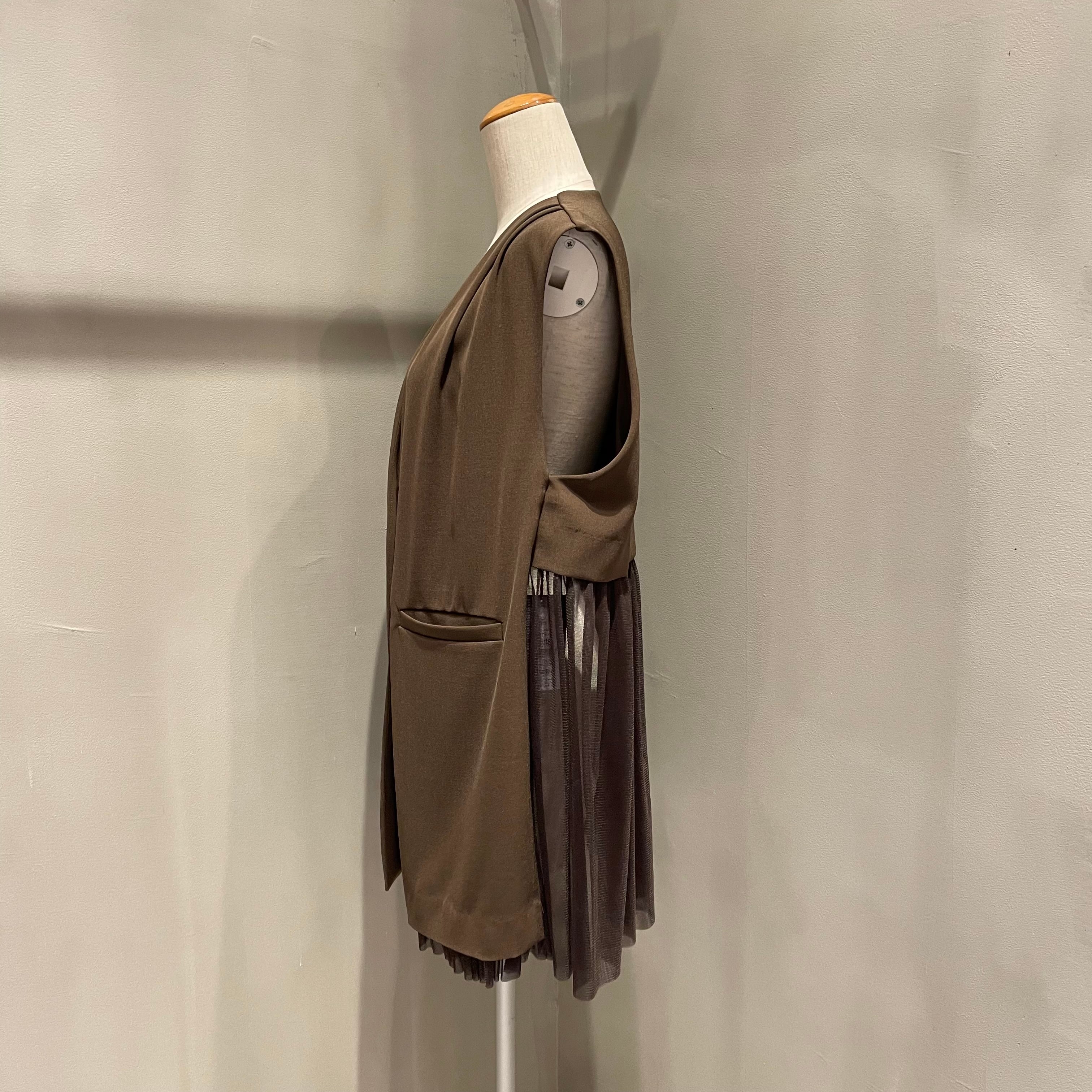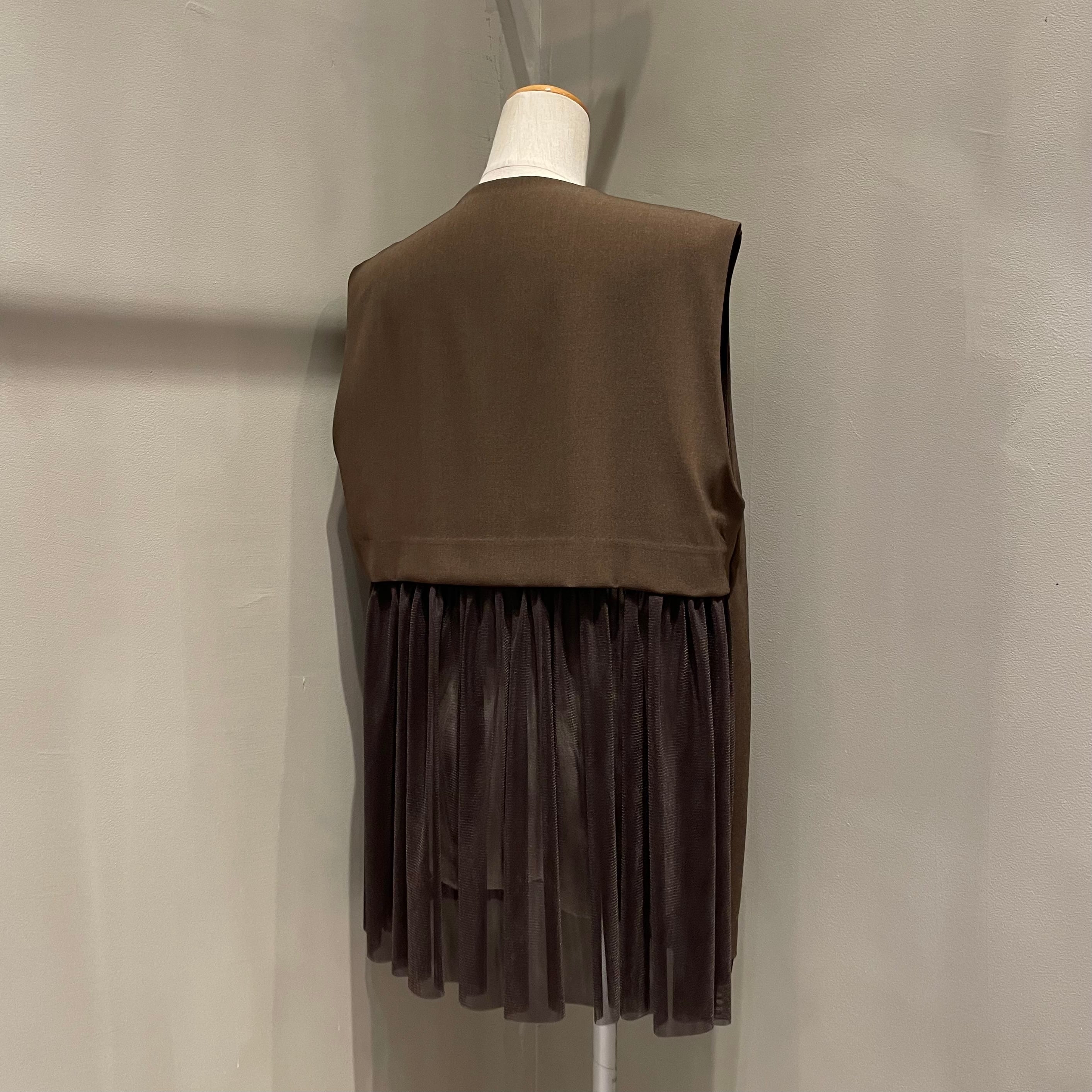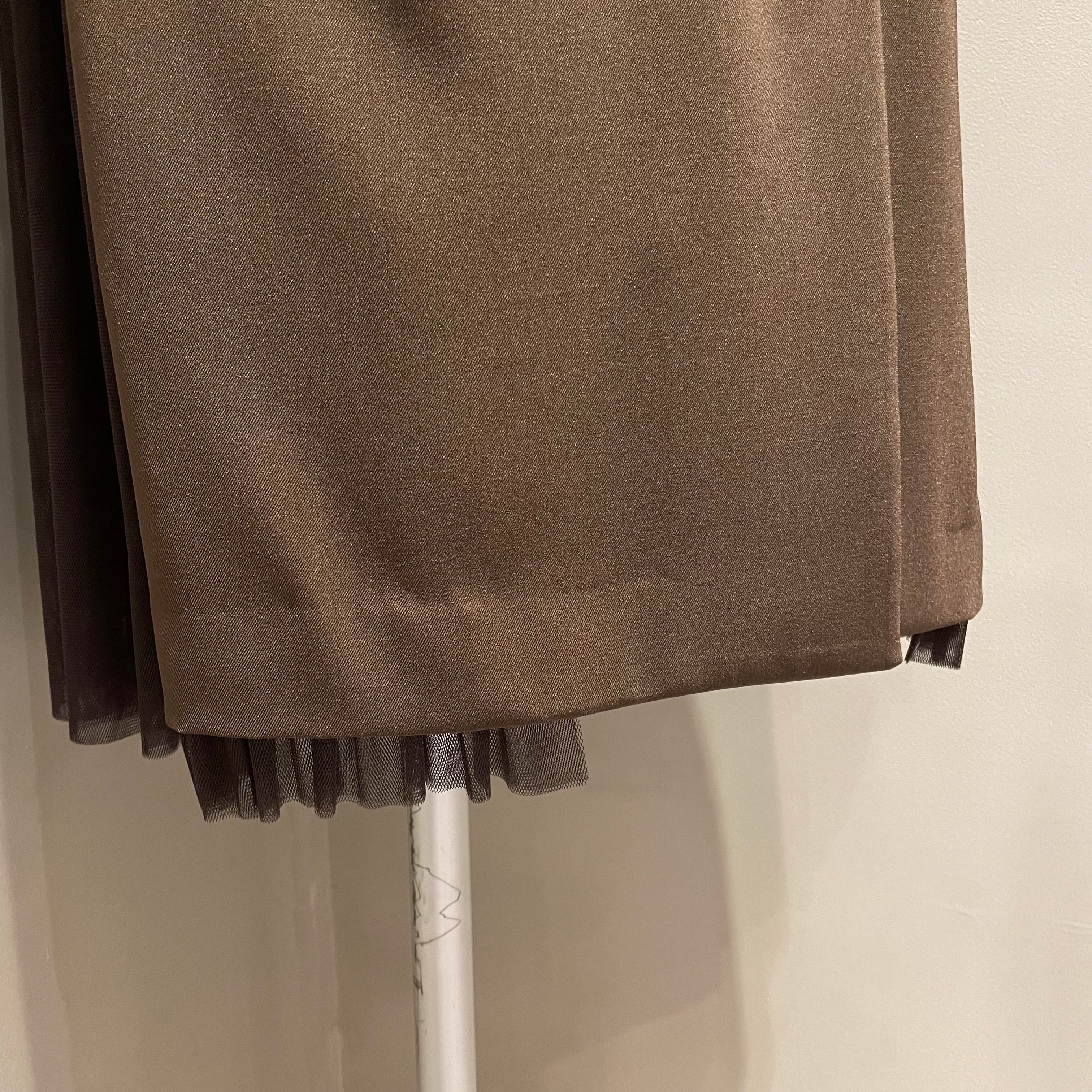 前裾サイドから覗くチュールが可愛く、後ろはハイウエスト位置からの切り替えチュールデザイン。