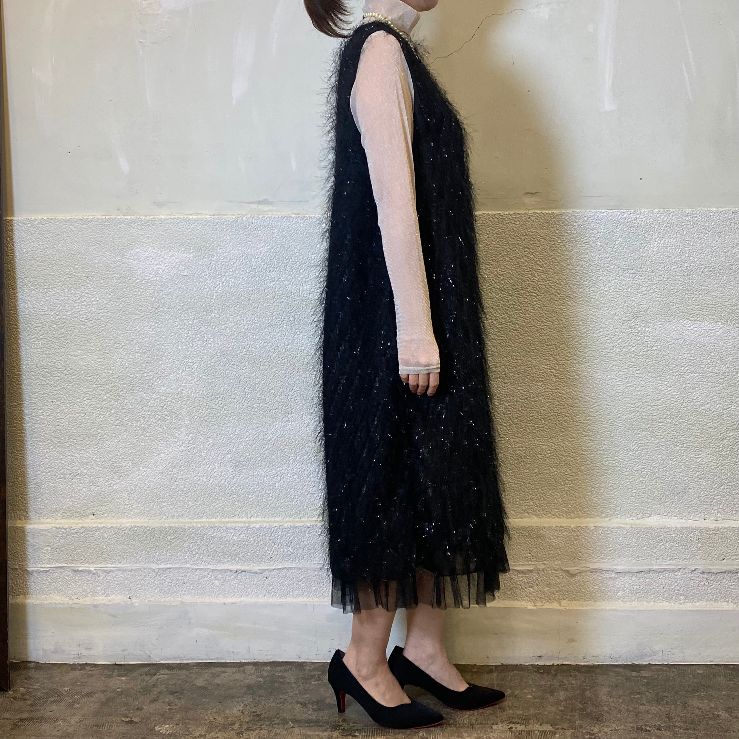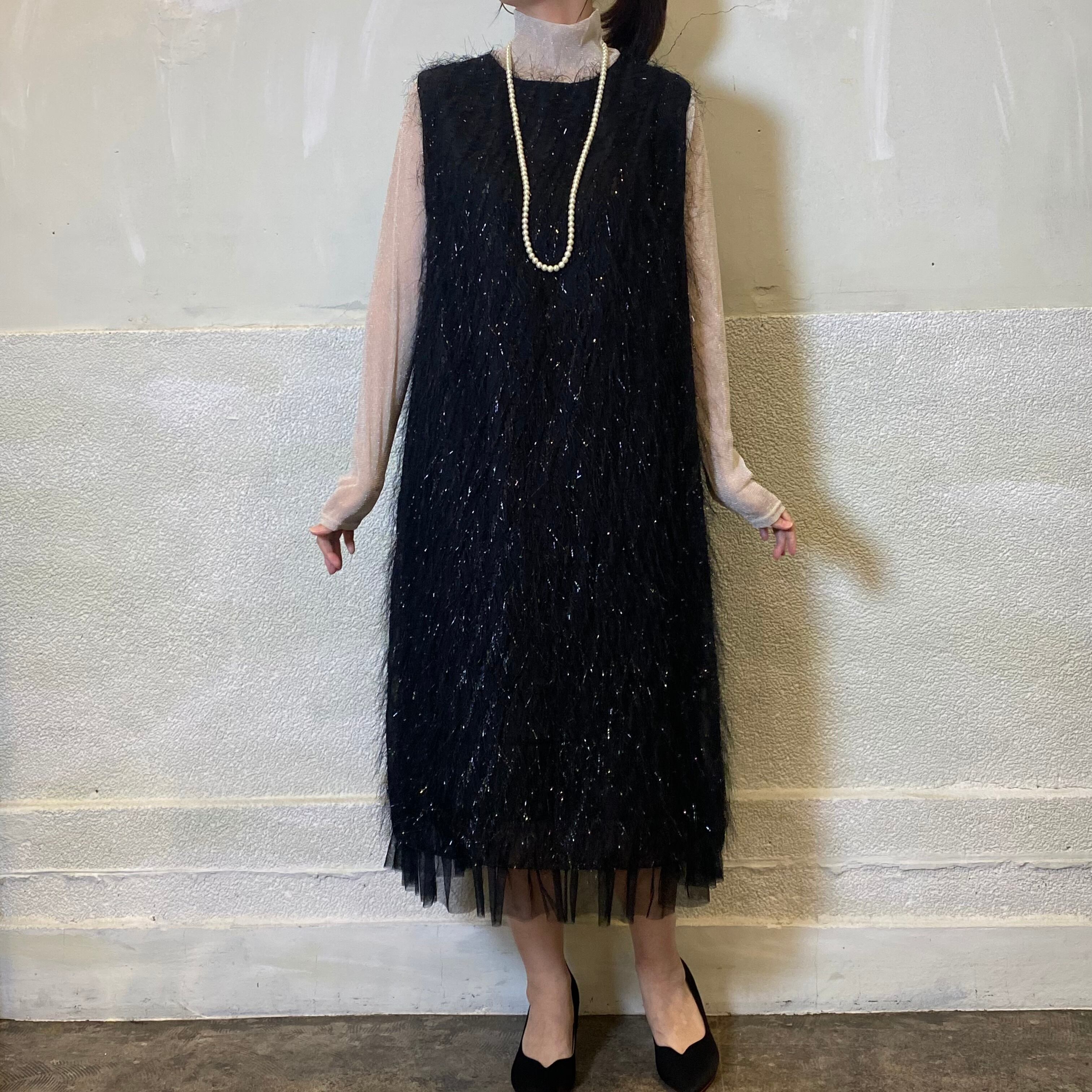 華やかな雰囲気を纏ったキラキラワンピース。裾に施されたチュールフリルが優雅に揺れ動き、結婚式や特別なイベントにぴったりの一着です。デザインには洗練されたディテールが施されており、見る者を魅了すること間違いなし。柔らかい素材感が心地よく、どんなシーンでも美しく装えます