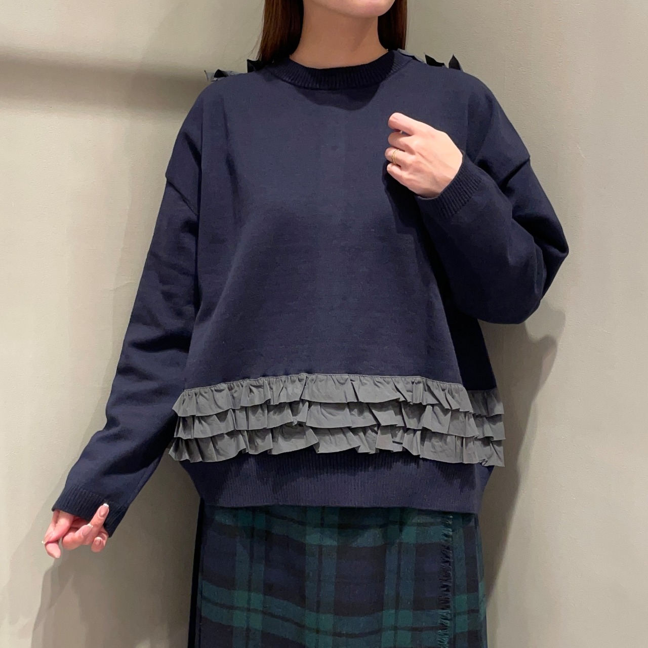 前後でフリルの付け方を変えて印象の違う遊び心をプラスしたデザインがポイントです。