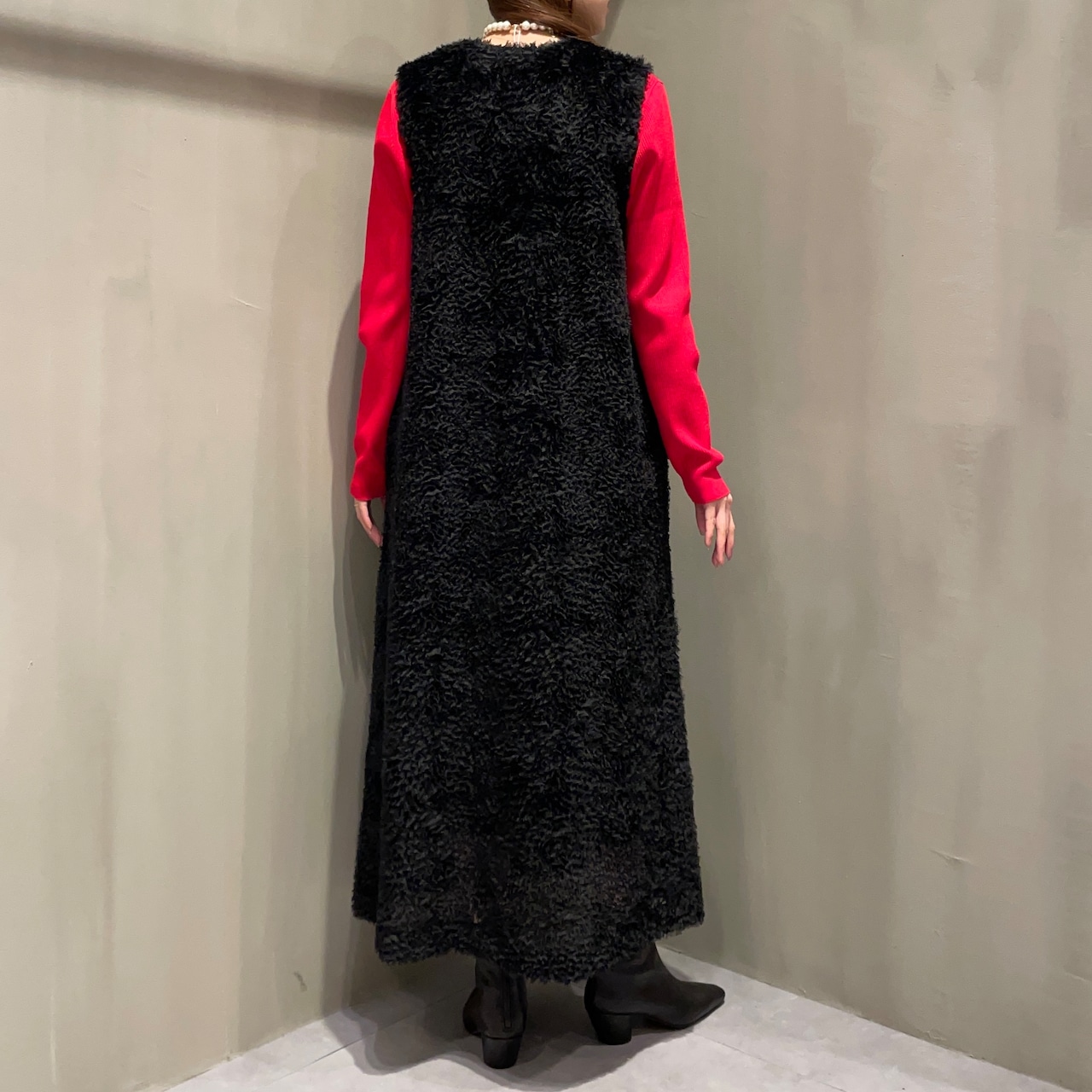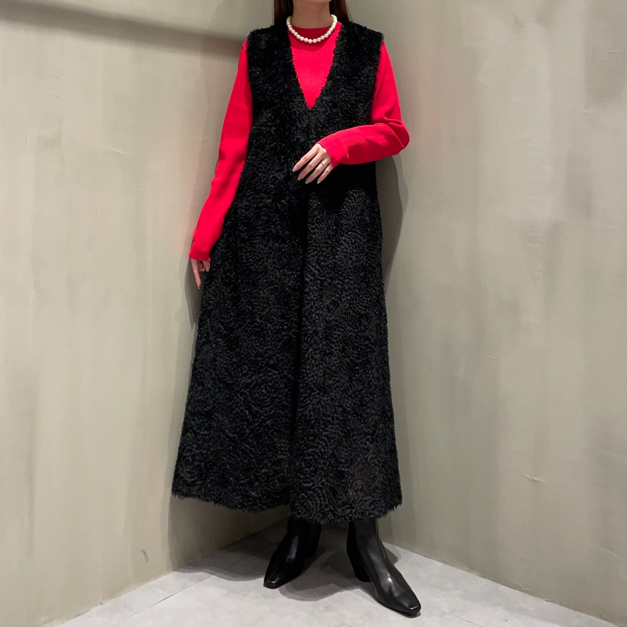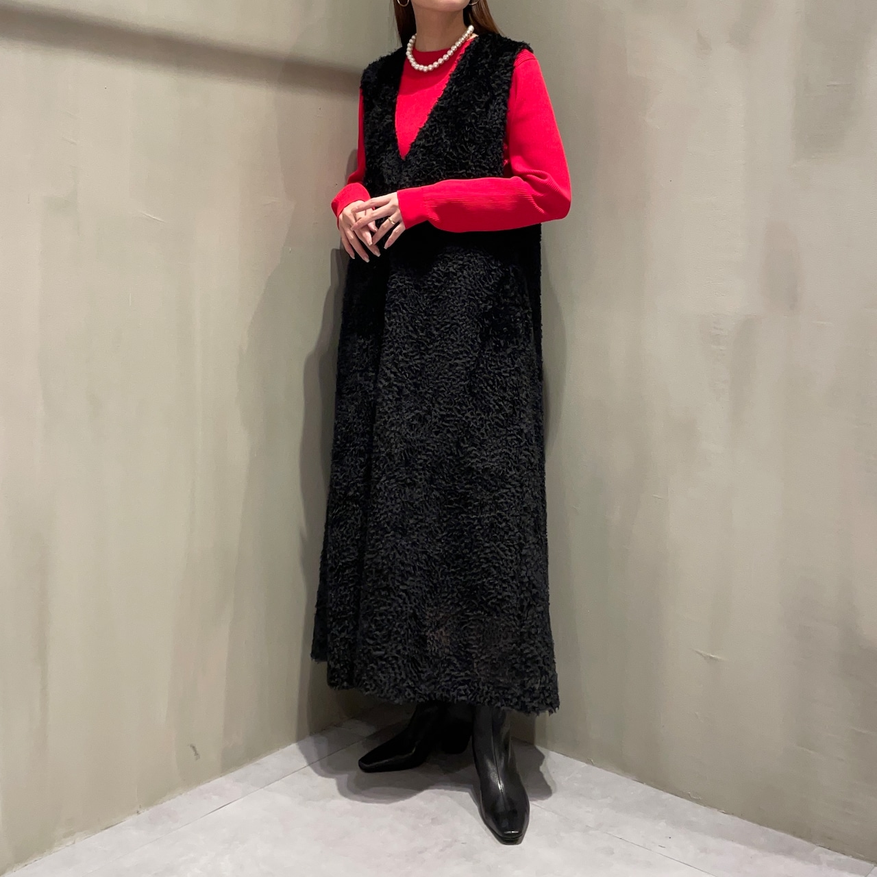 ショートタイプはブーツを合わせたスタイリイングがおススメ。
