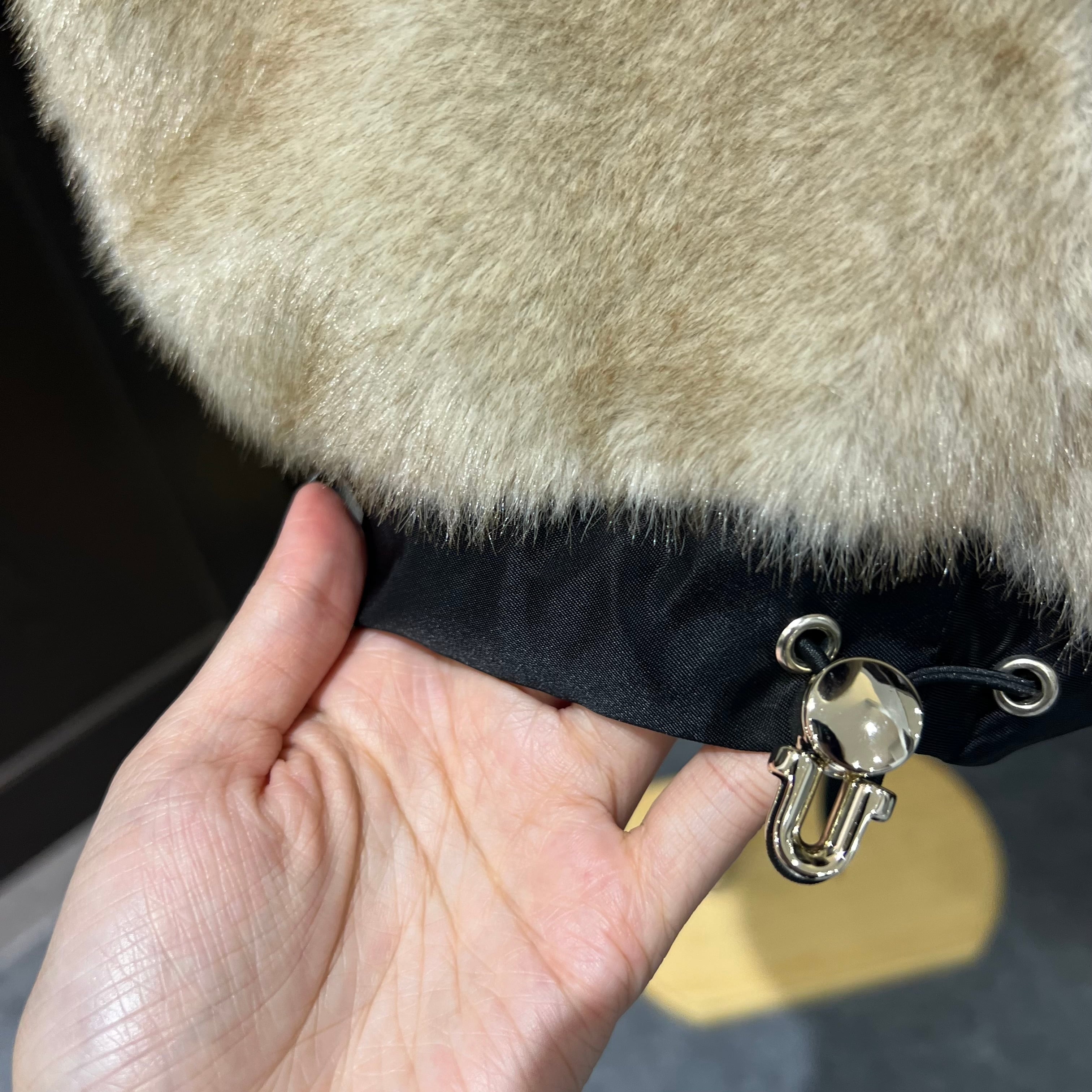 やっと見つけたデザイナーお気に入りのフェイクファー素材で仕上げた逸品です。