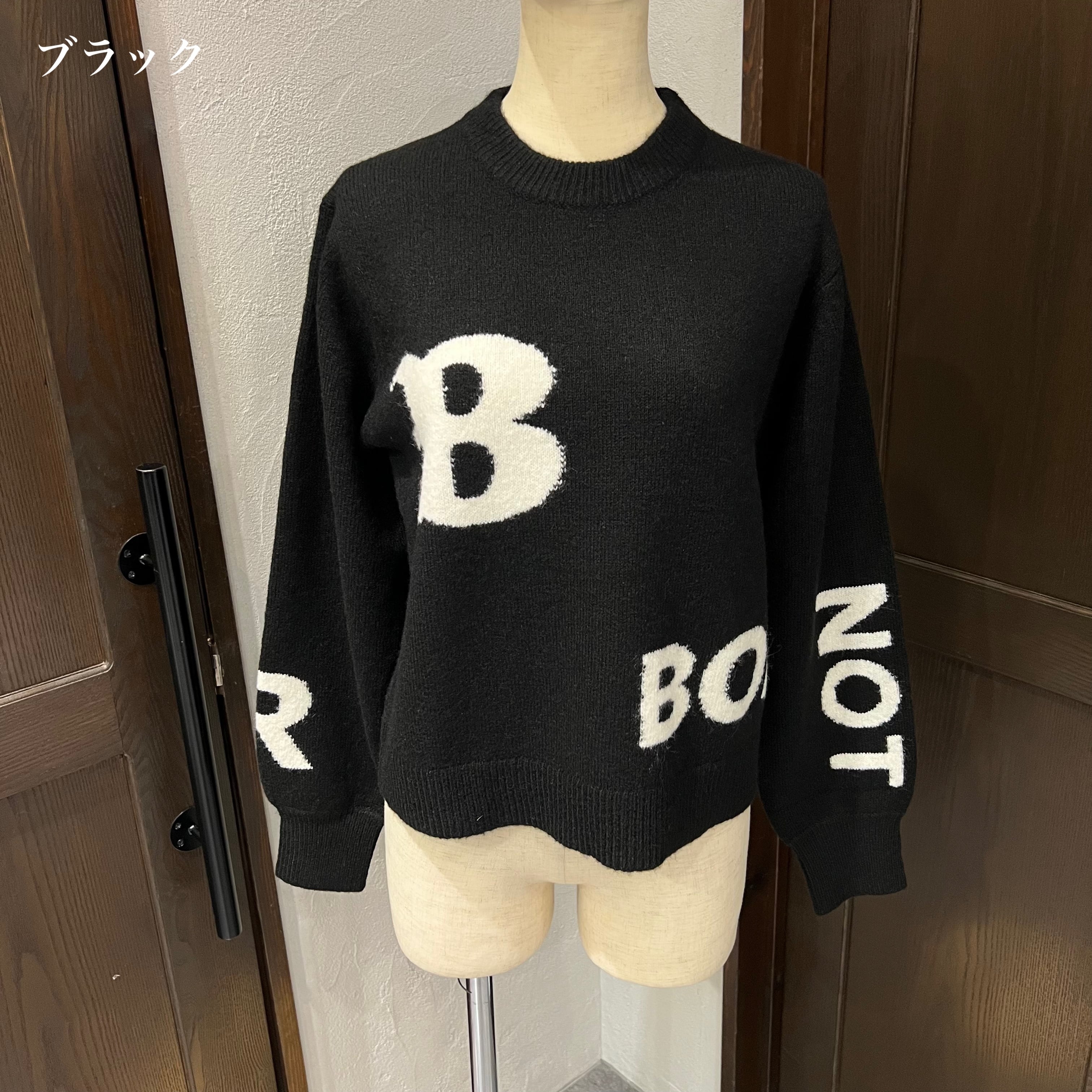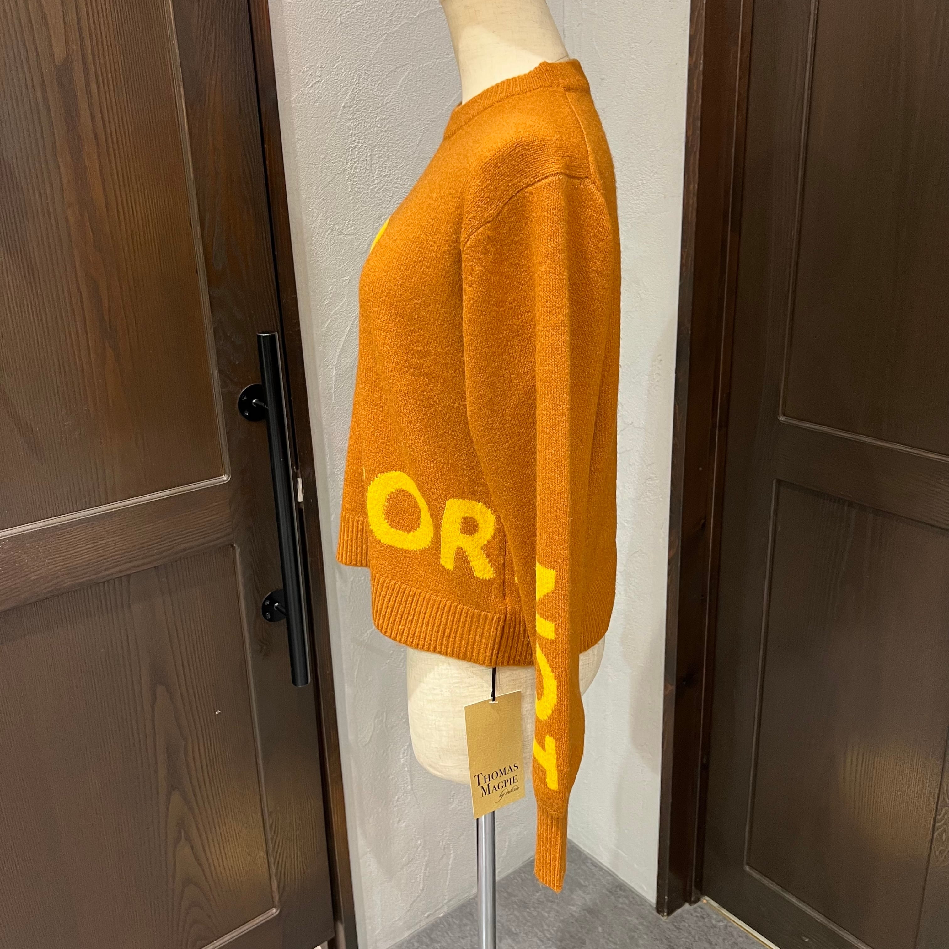 大きめのロゴデザインが目を引くニットプルオーバー。ゆったりとしたシルエットで、リラックス感のある着心地です。ややドロップショルダーになっており、抜け感のあるシルエットを演出。リブ仕様の首元・袖口・裾が全体をすっきりとまとめてくれます。カジュアルコーデの主役アイテムとして、デニムやスカートにも合わせやすい一枚です。