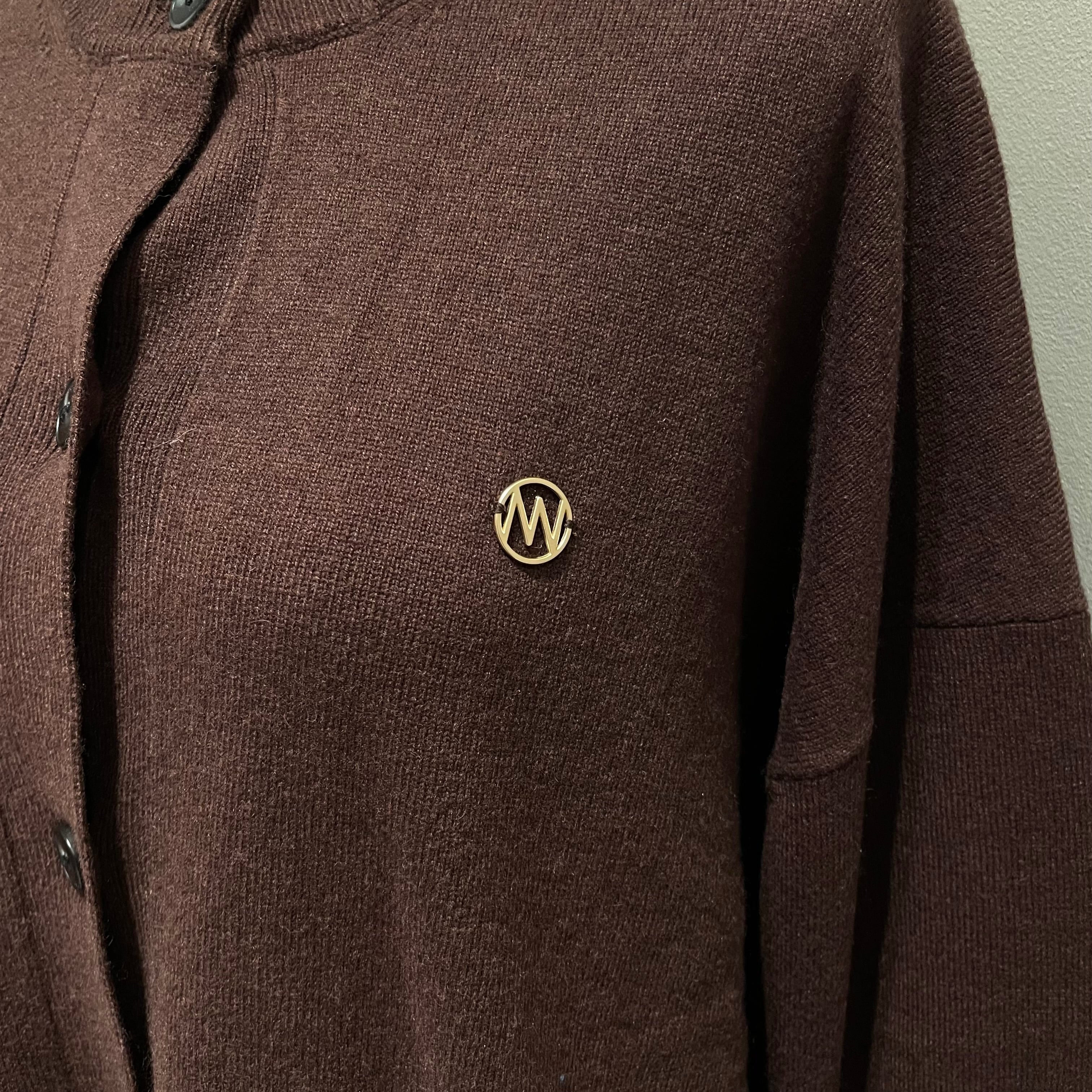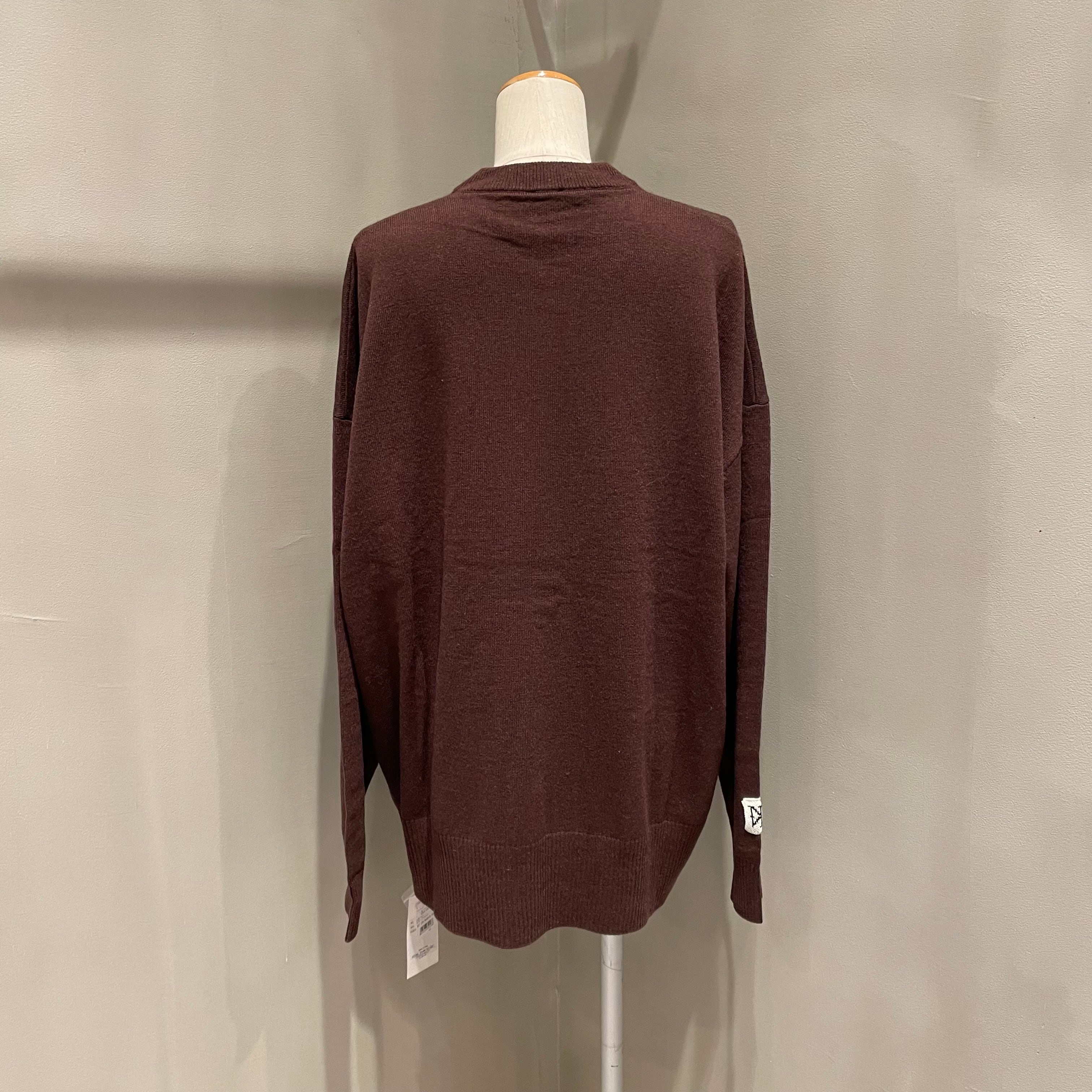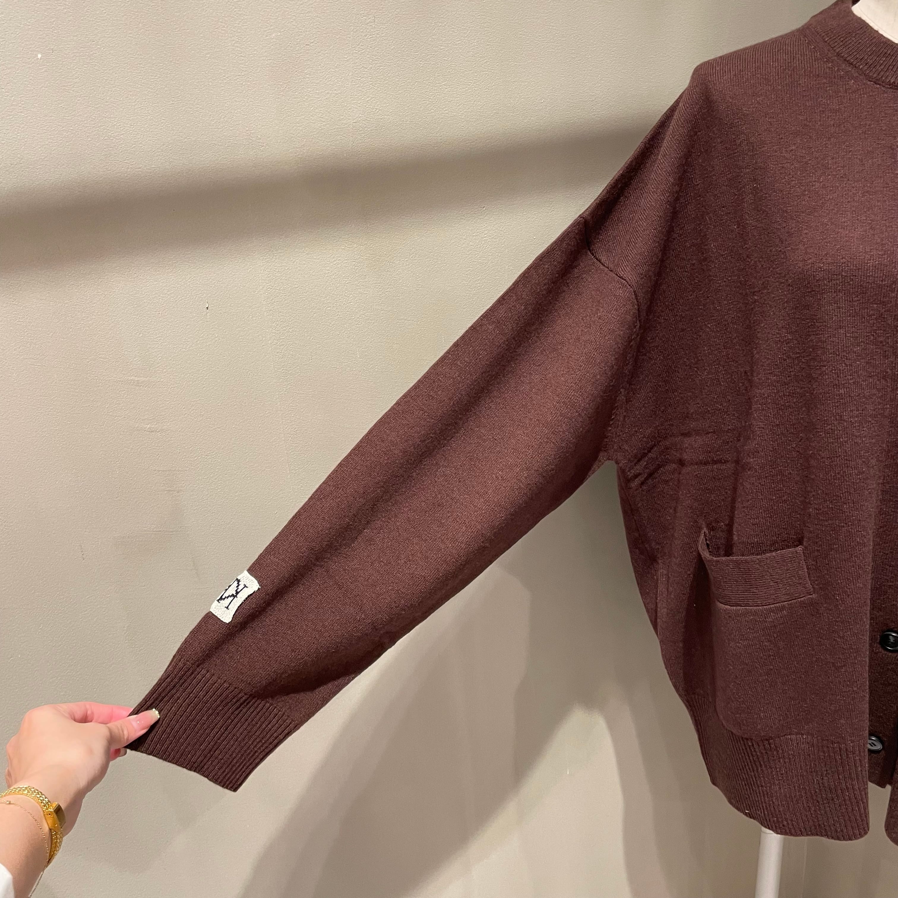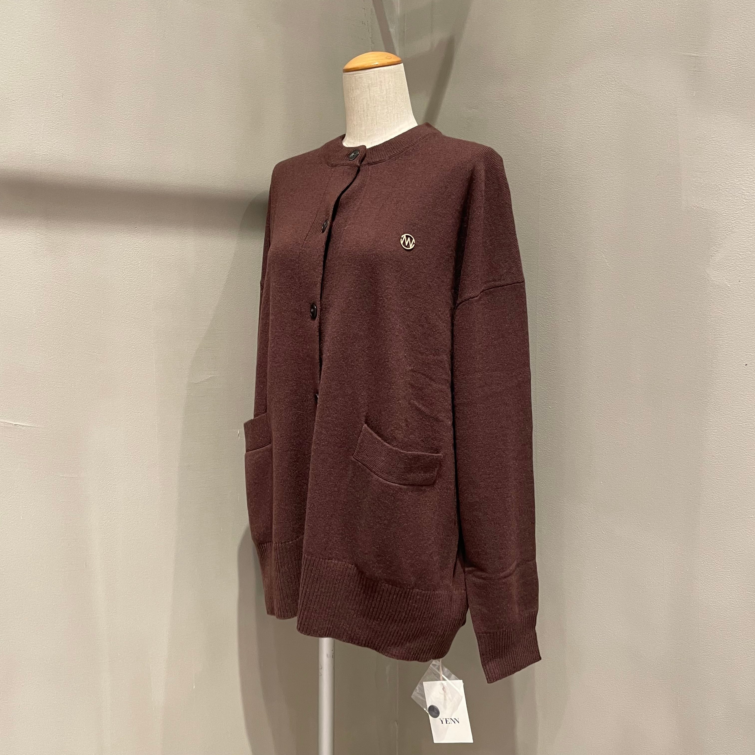 エレガンスなテイストのアイテムに多く見られるクルーネックのシンプルなカーディガンを、あえてオーバーサイズで作ることでカジュアル感をプラス。