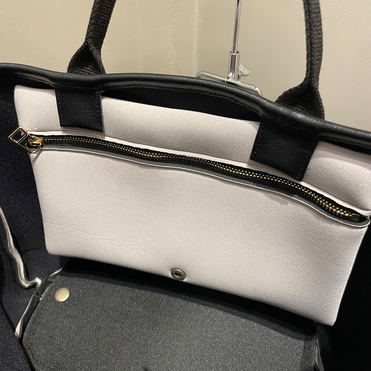 A4サイズが入るサイズ感。お財布にスマホ、ペットボトルやポーチ類も収まる大きさです。