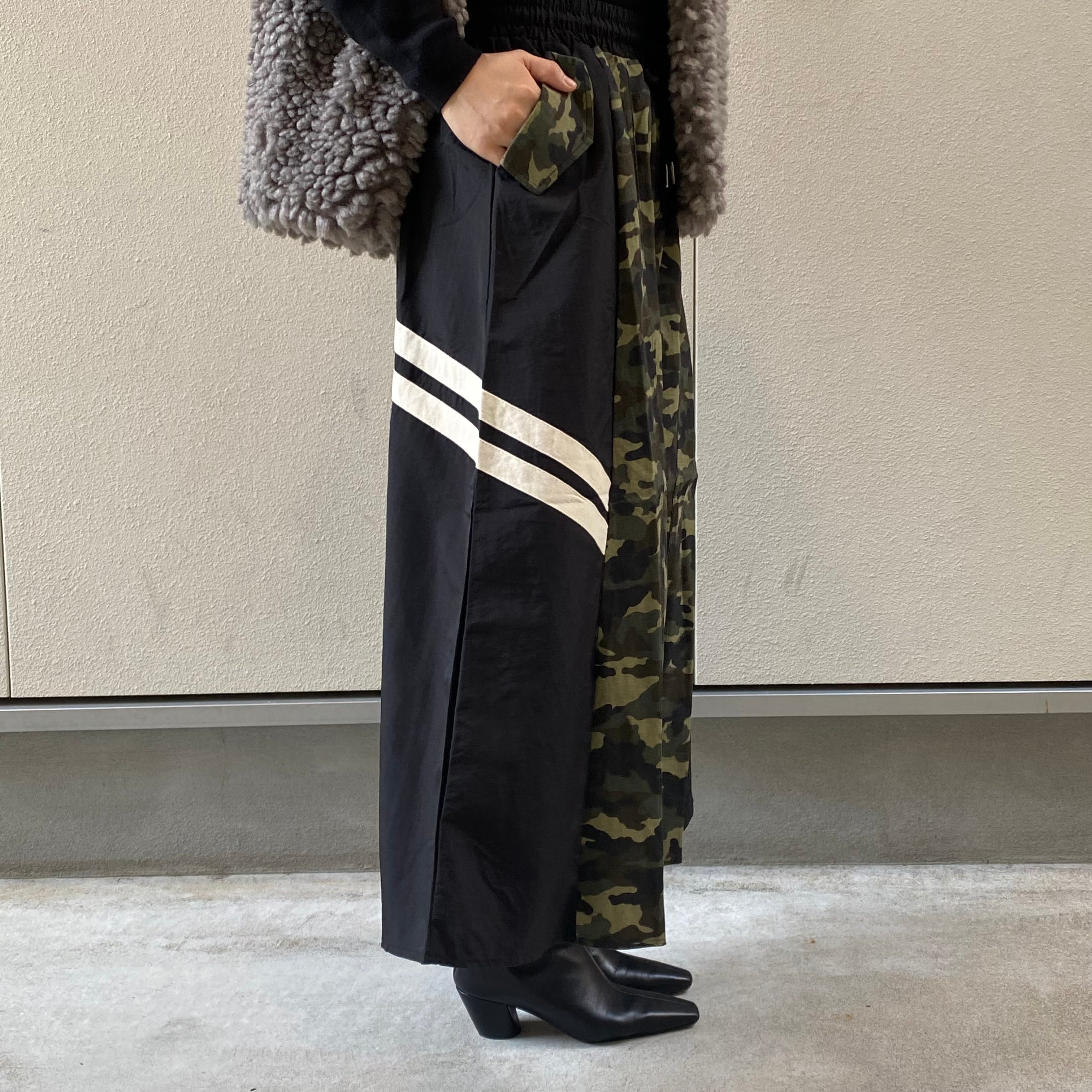 存在感のある異素材ロングスカートは、カジュアルに合わせやすく、