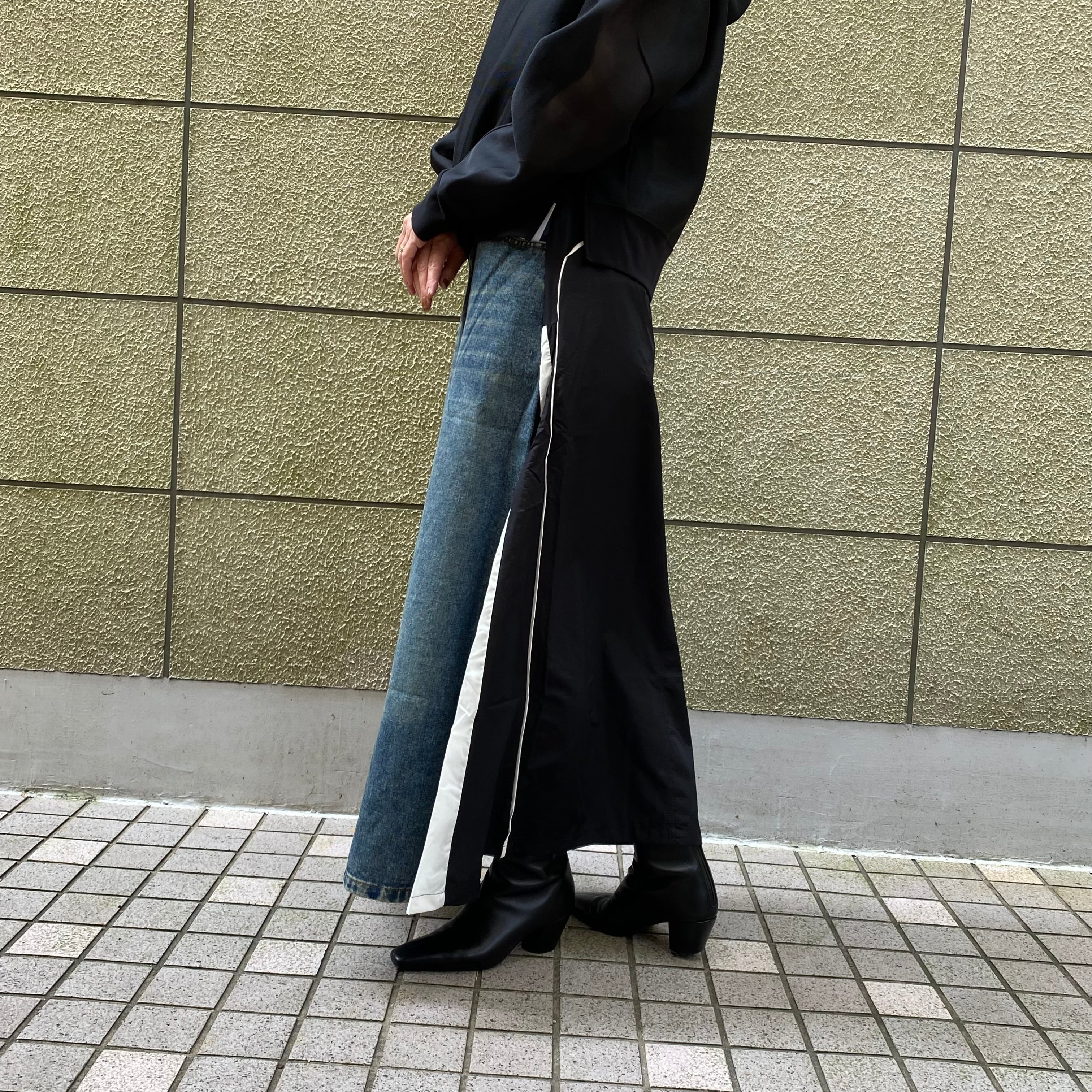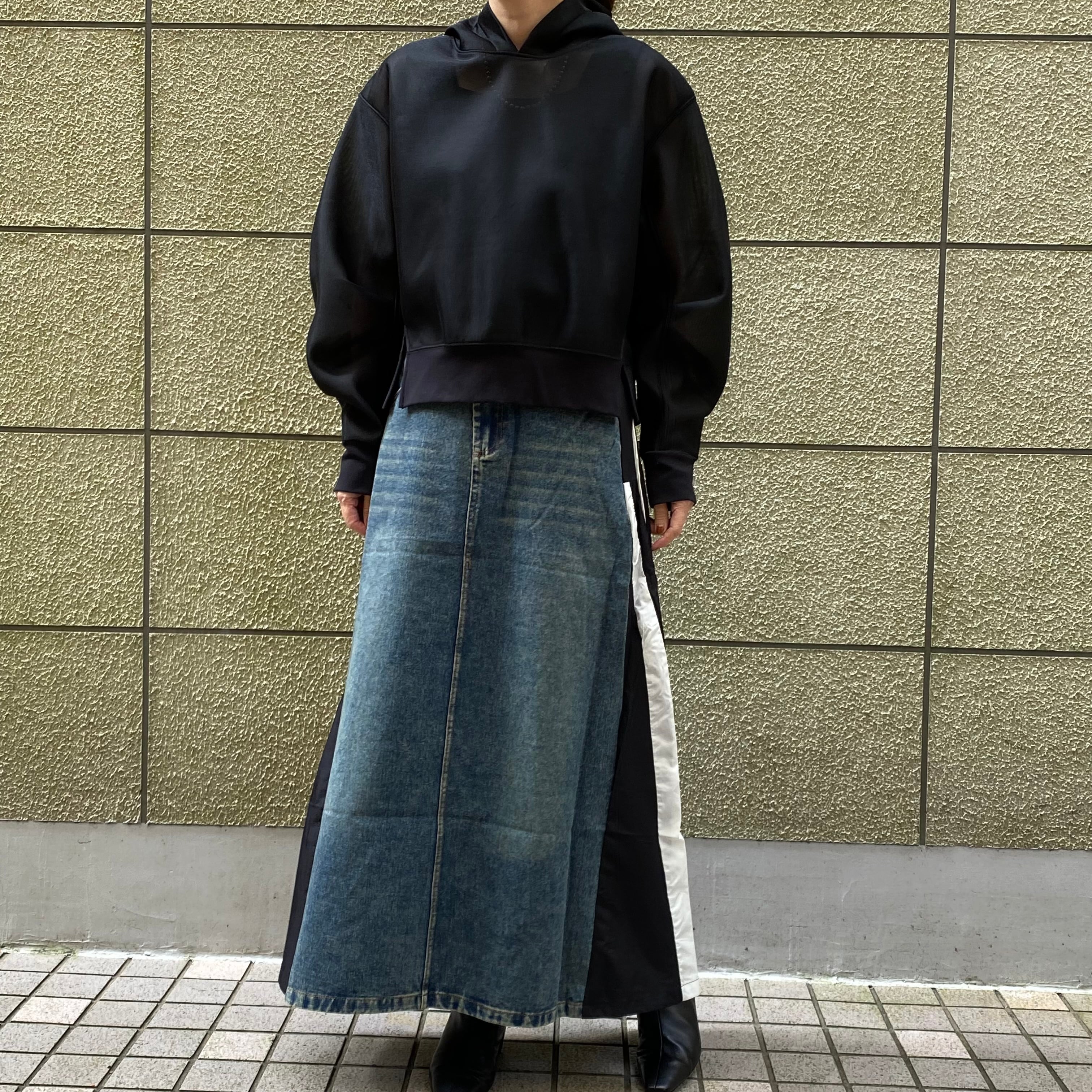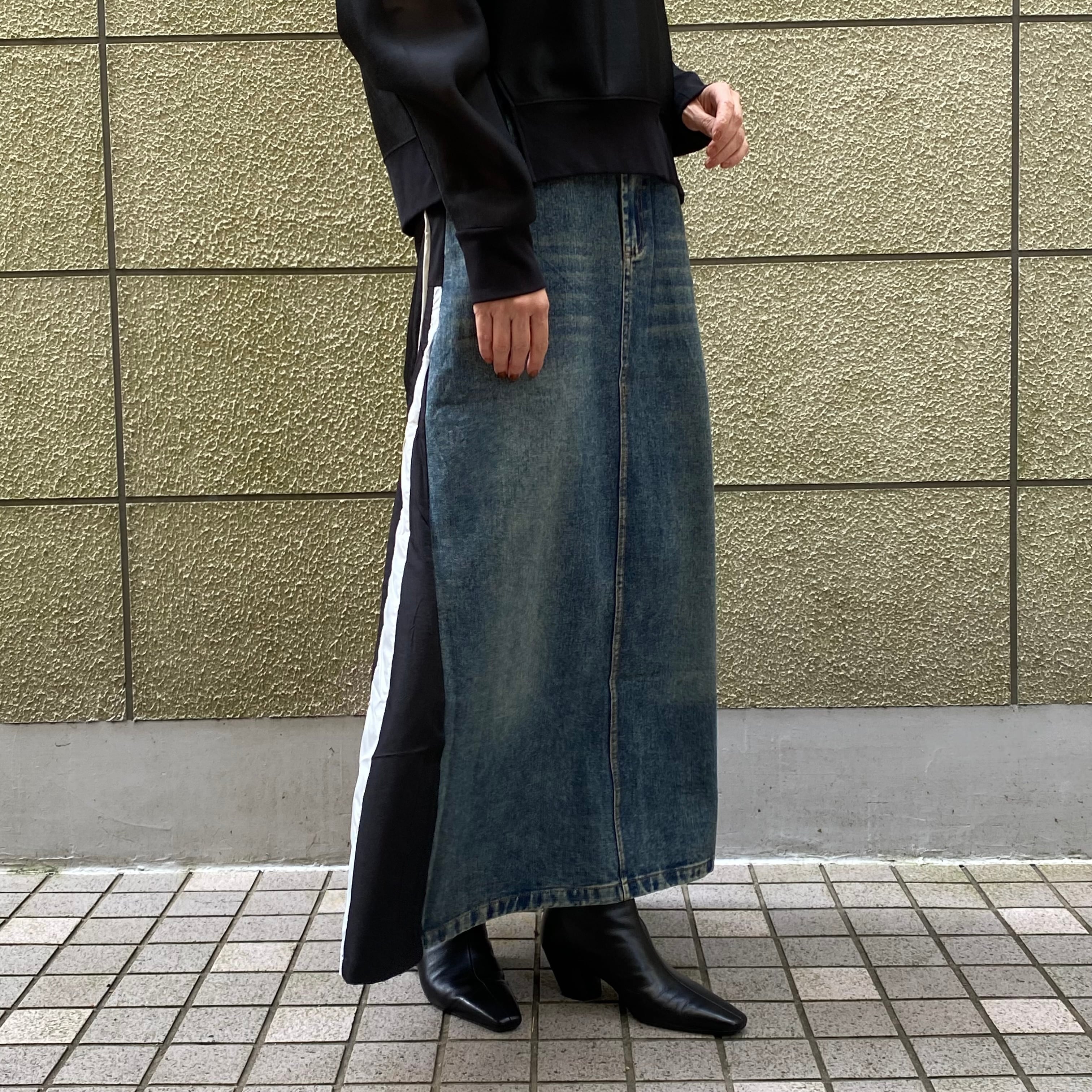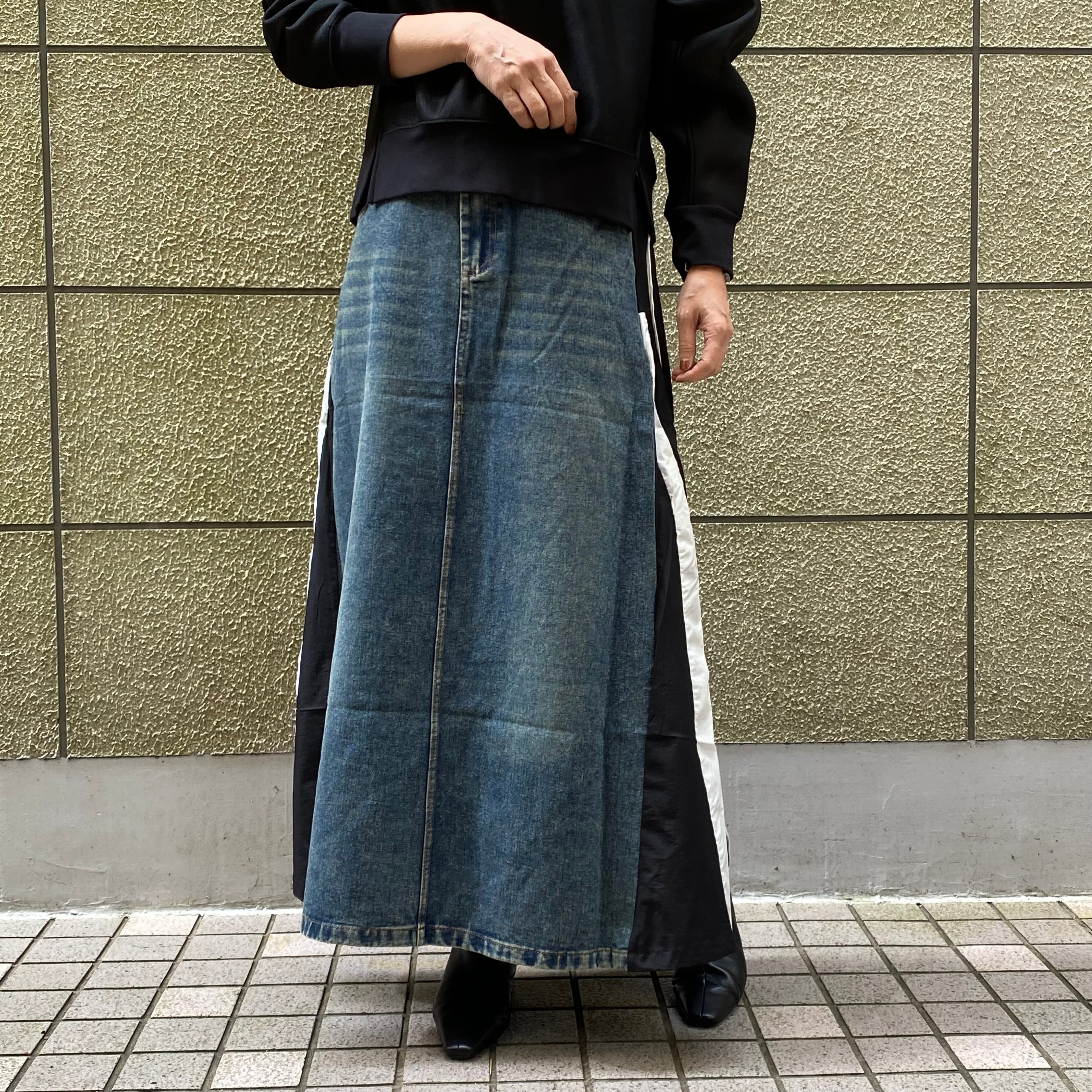 存在感のある異素材ロングスカートは、カジュアルに合わせやすく、