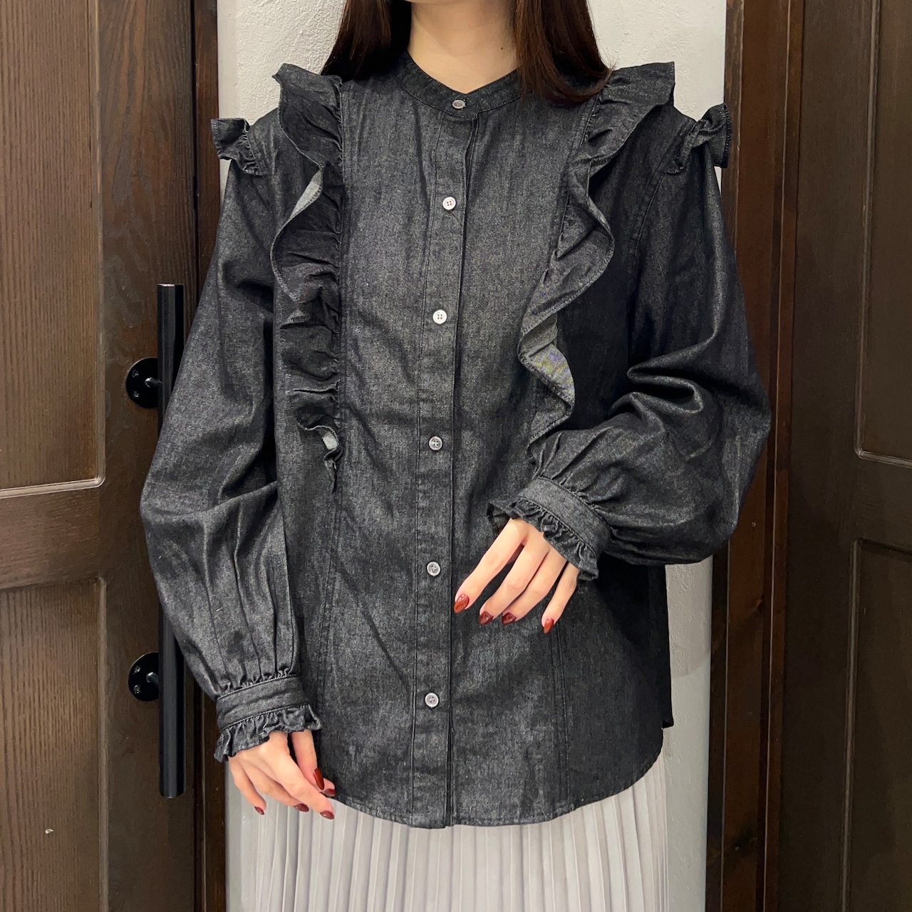 【ヴィンテージ感漂うデニムフリルシャツ】