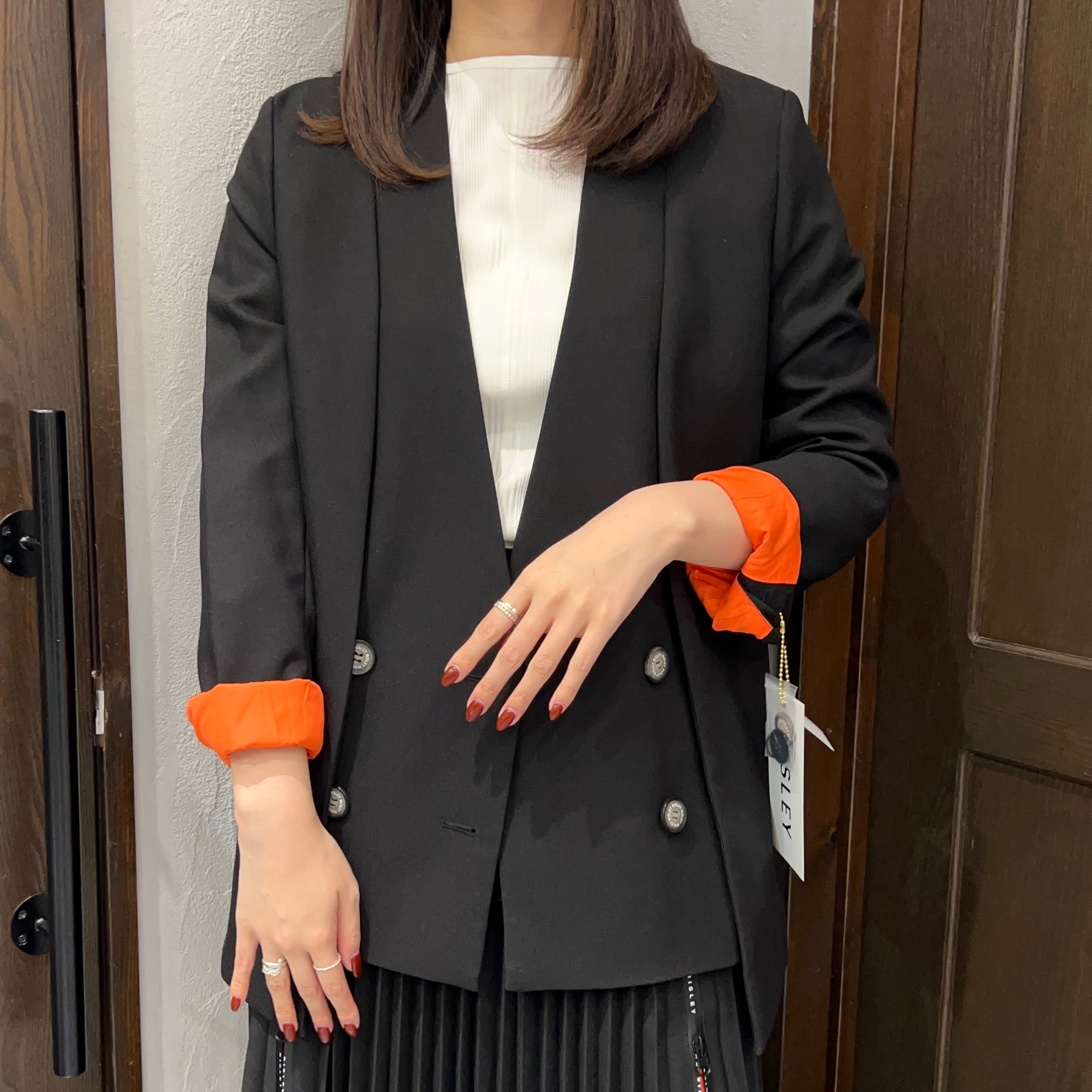 また裏地の配色、オレンジもわざと見せたり時と場合によって使い分けができる優秀ジャケットです!