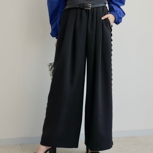 サイドに施されたラインテープ状のタックプリーツが、しなやかな縦ラインを強調。