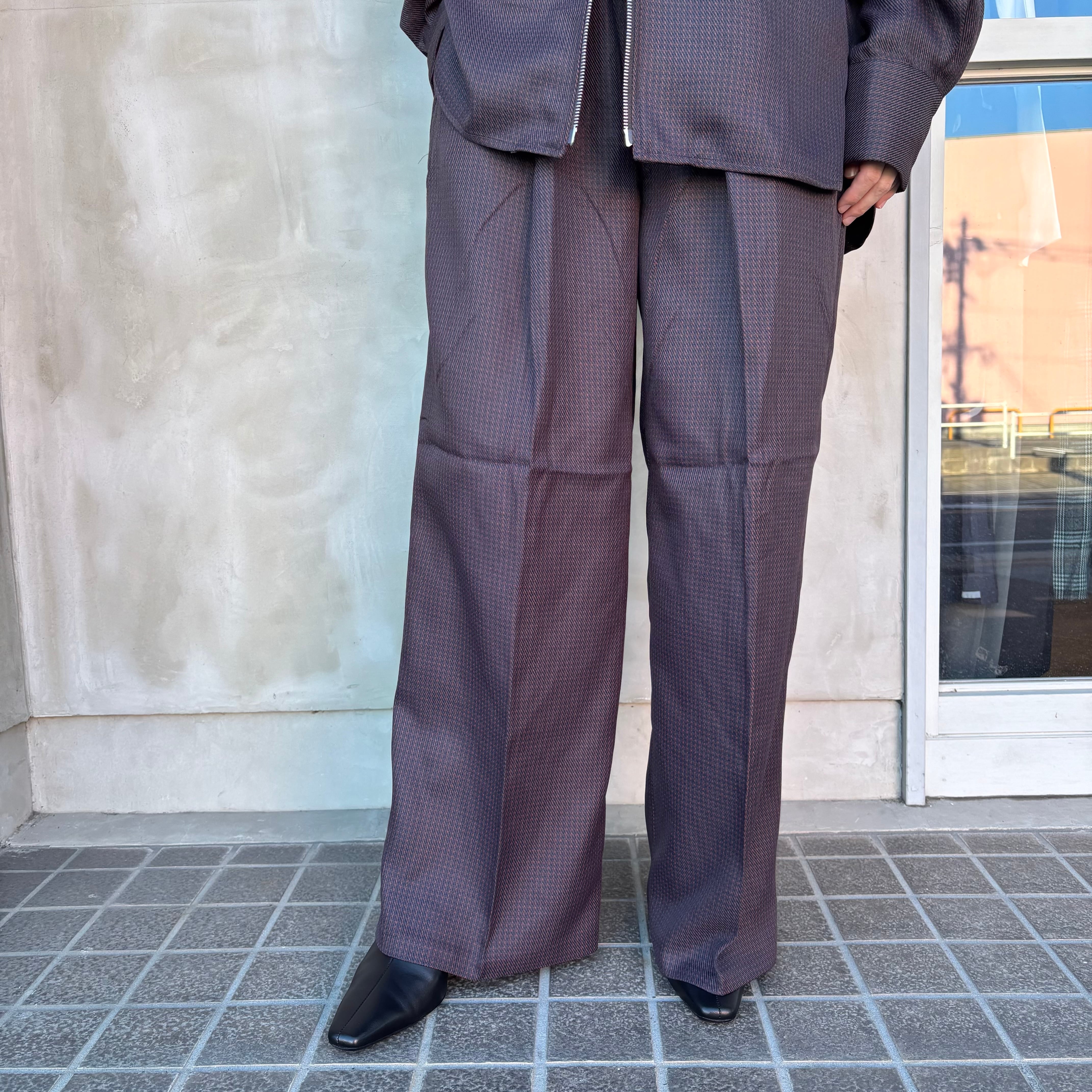同素材のウールライク シャツジャケットとセットアップとして着用可能です。カジュアルなTシャツ合わせや、きれいめニット合わせなど、さまざまなスタイリングができる万能アイテムです。