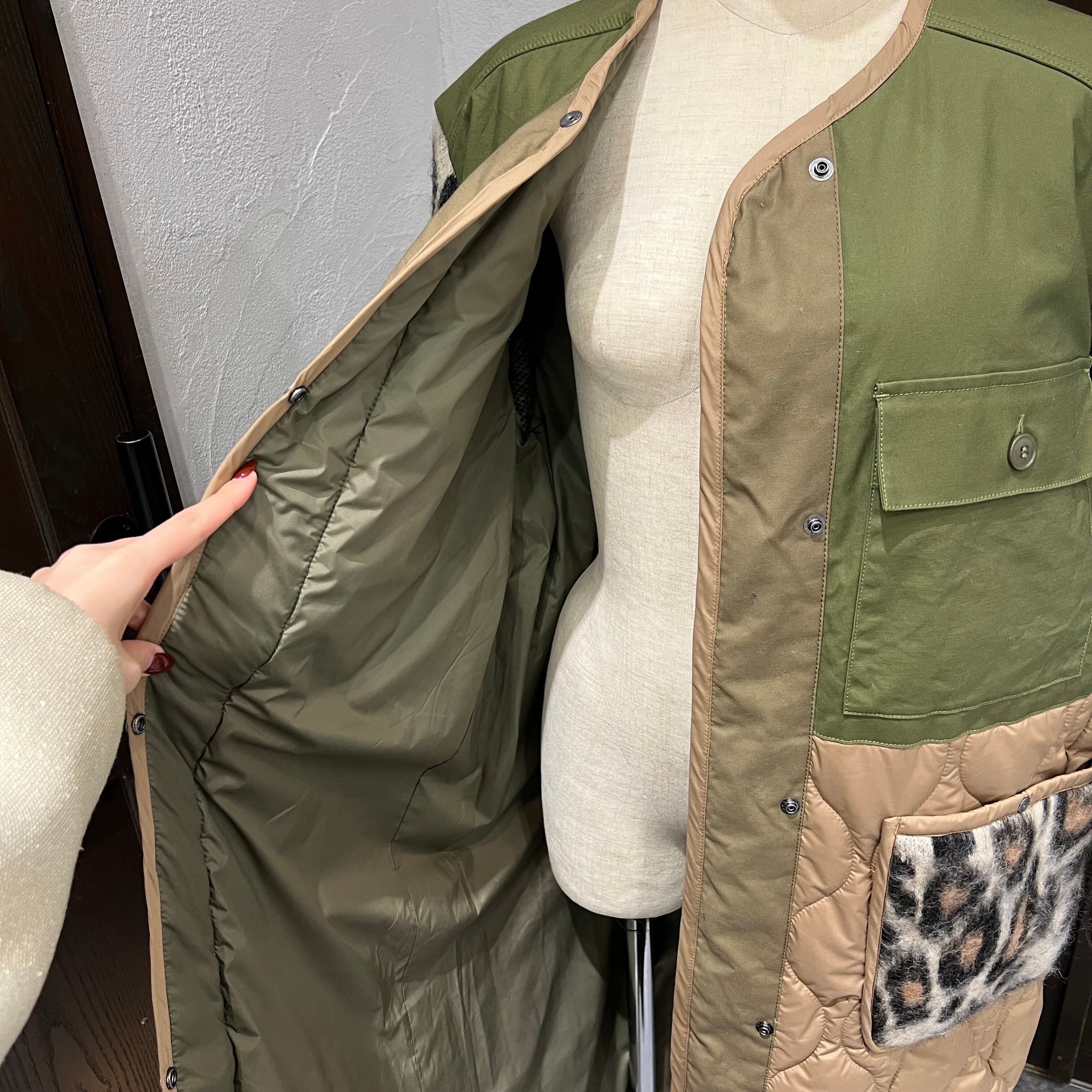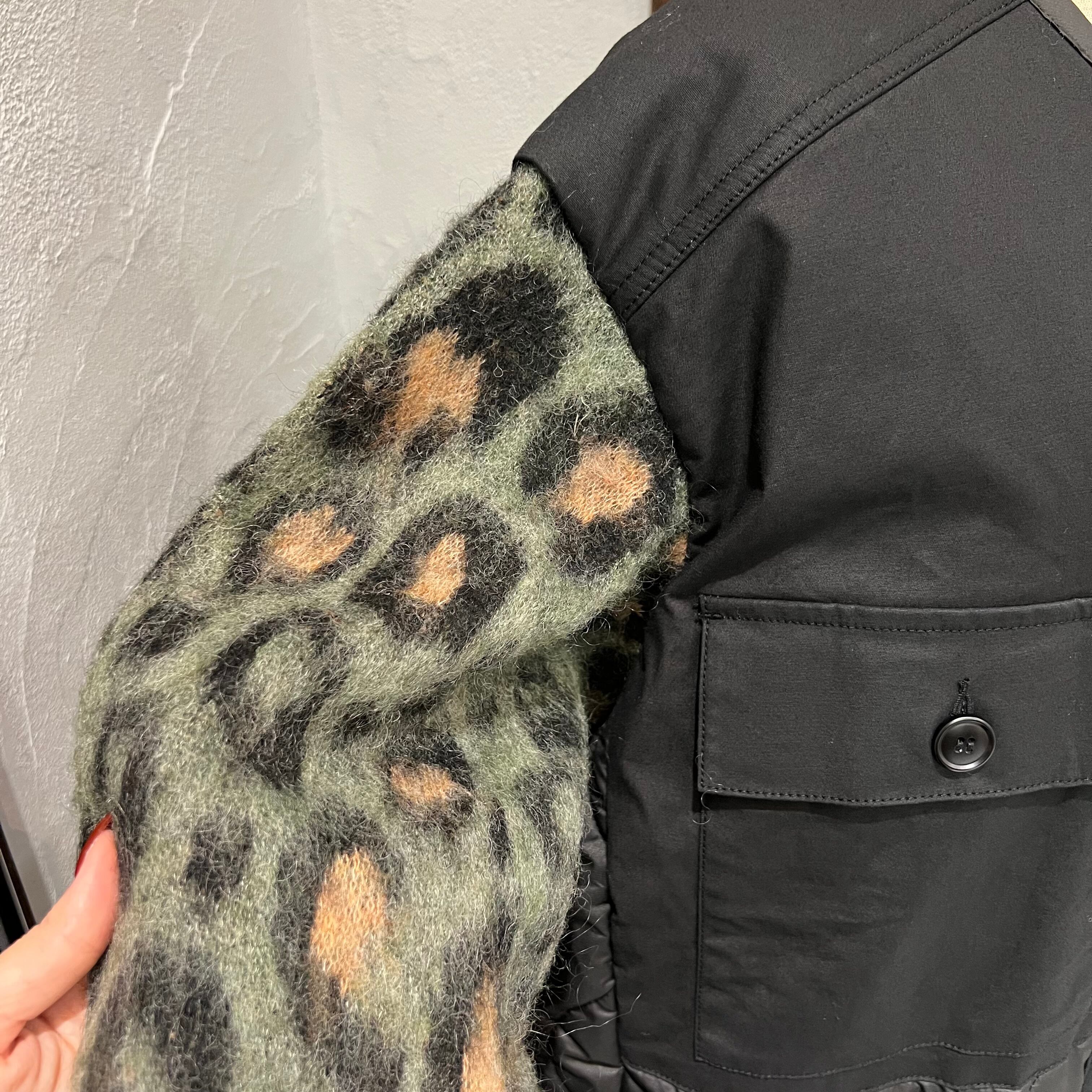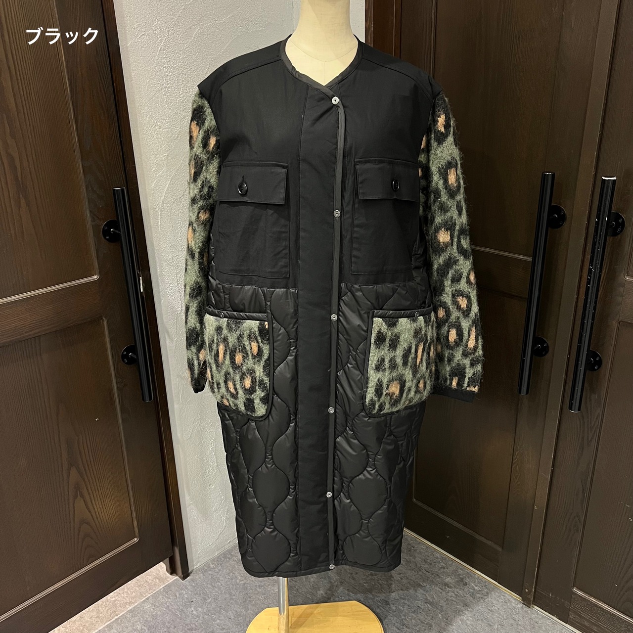 BLANC basque/ヒョウ柄ニット×キルティング コート