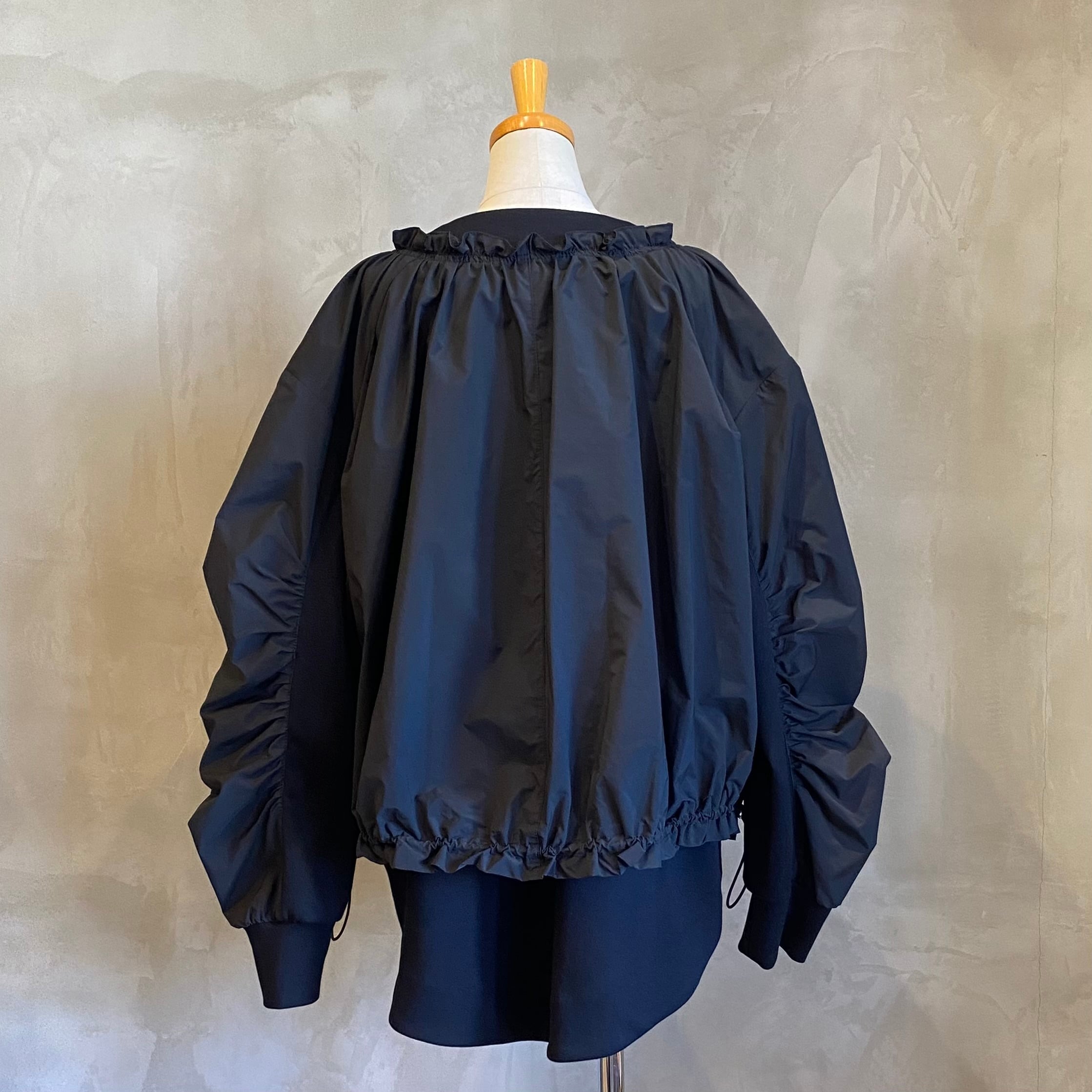 フリルカラーや袖のギャザーが可愛いポイント。