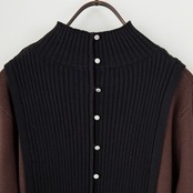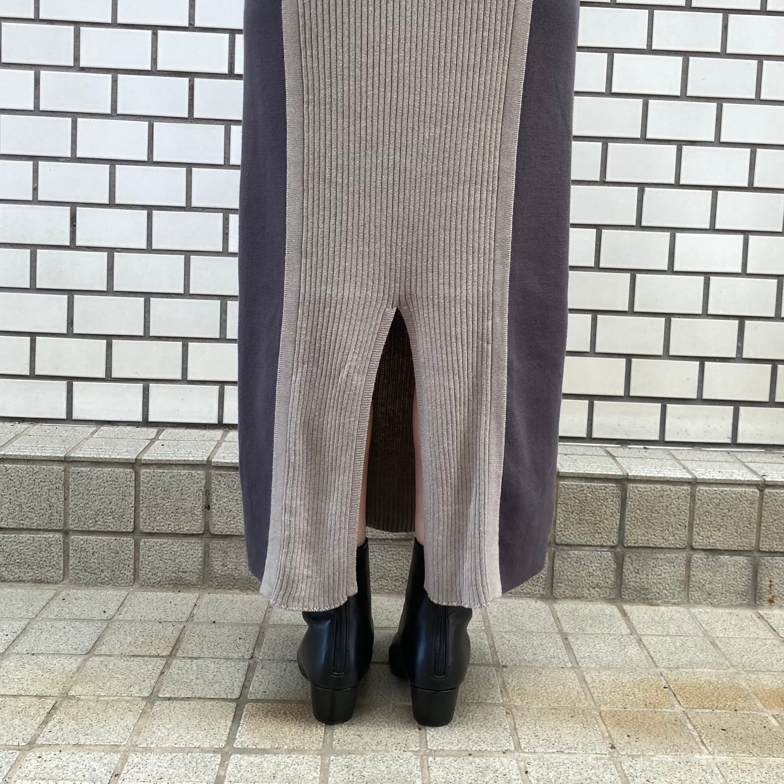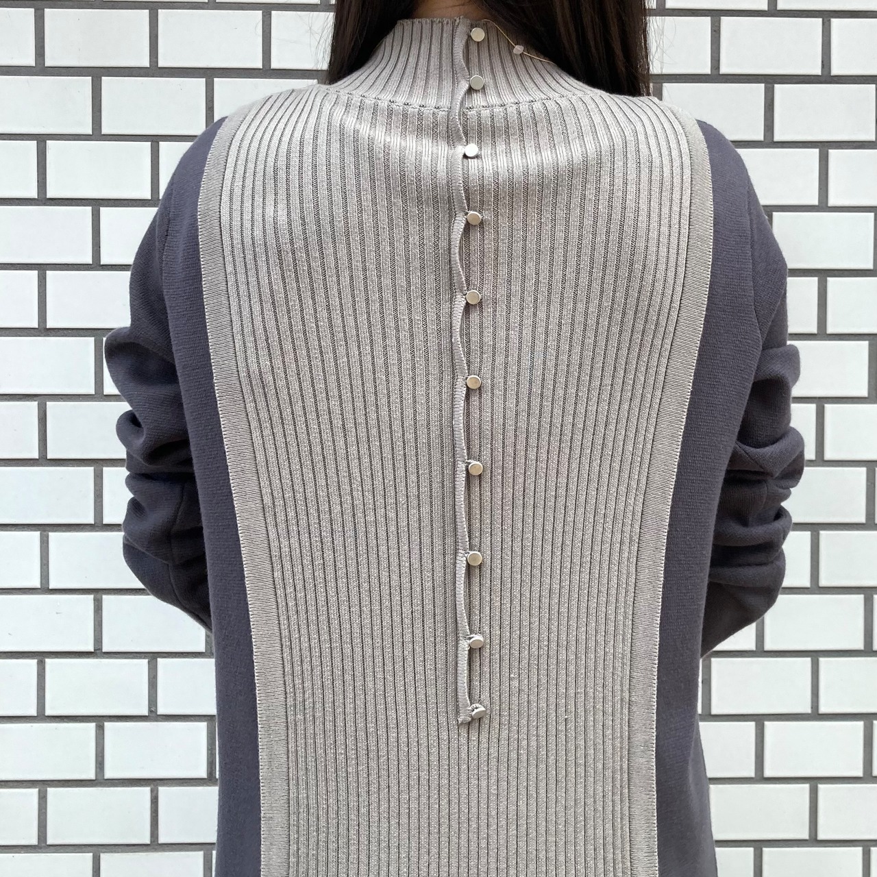 異素材の切り替えが印象的なニットワンピース。リブ編みのフロントとスムースなサイド生地のコントラストが、縦のラインを強調しスタイルアップを叶えます。ハイネックと長めの着丈で上品な印象を与えつつ、背面ボタンが程よいアクセントに。アクリルとコットンをブレンドした素材は軽やかで柔らかく、秋冬のレイヤードにも快適な着心地です。ブーツを合わせたシックな装いにもおすすめです。
