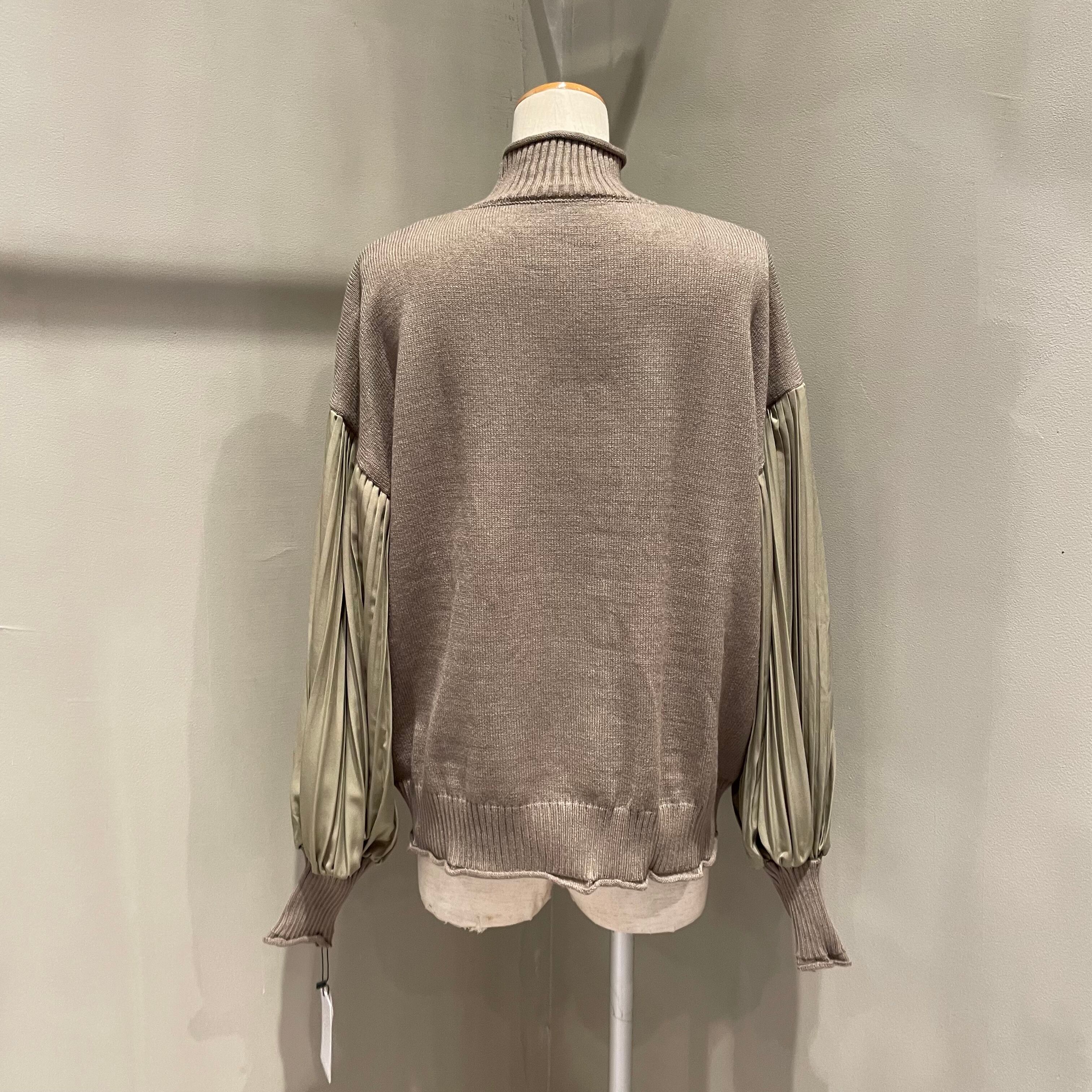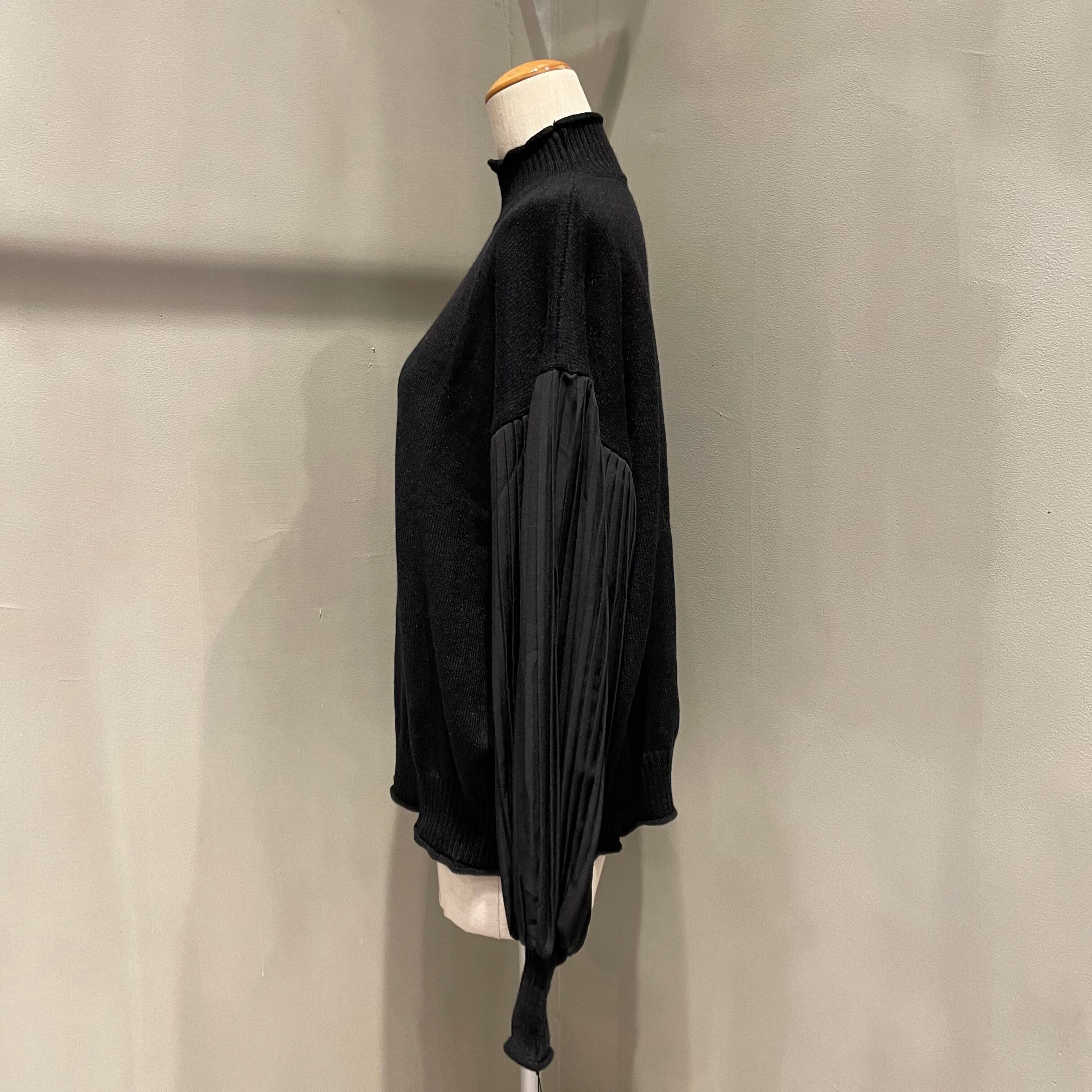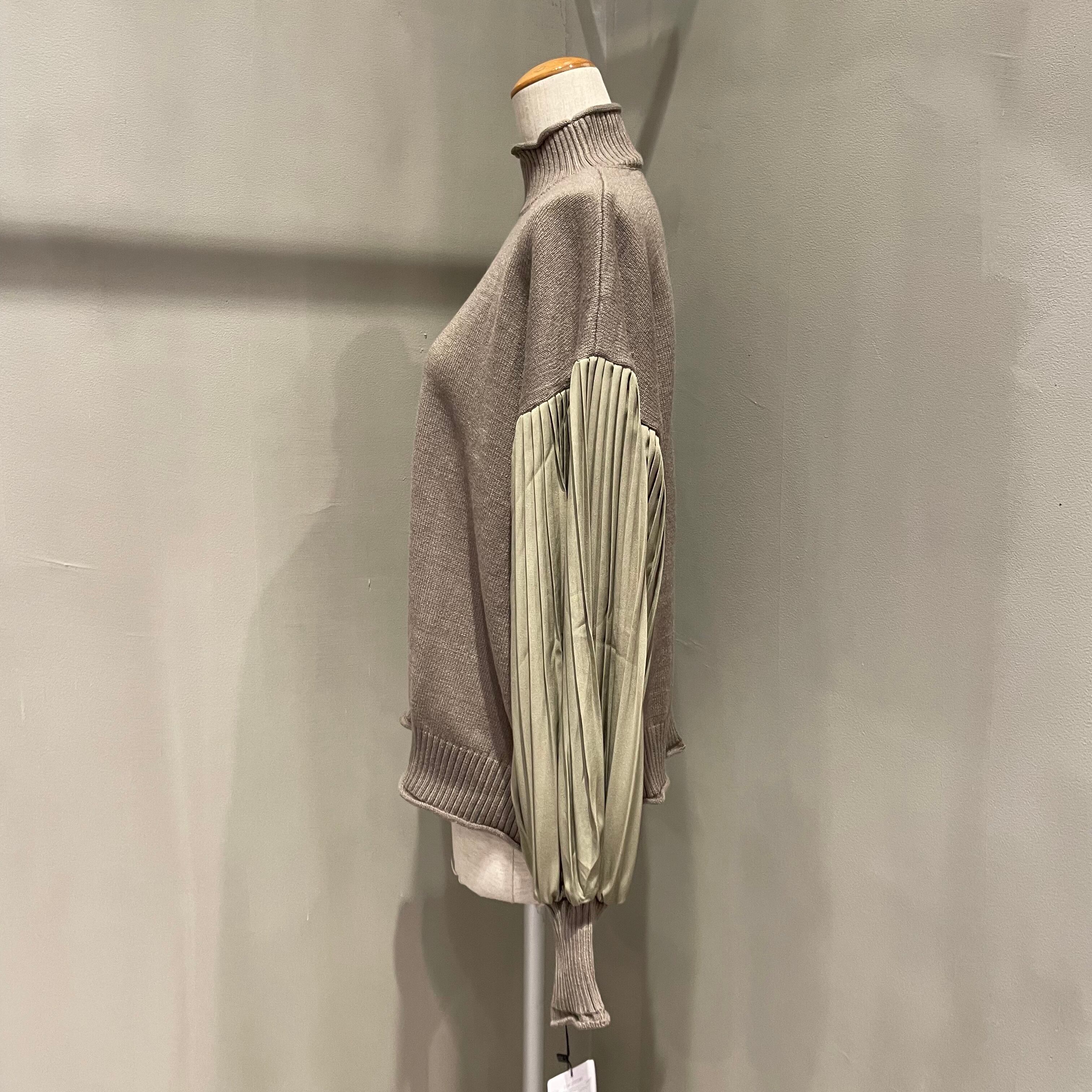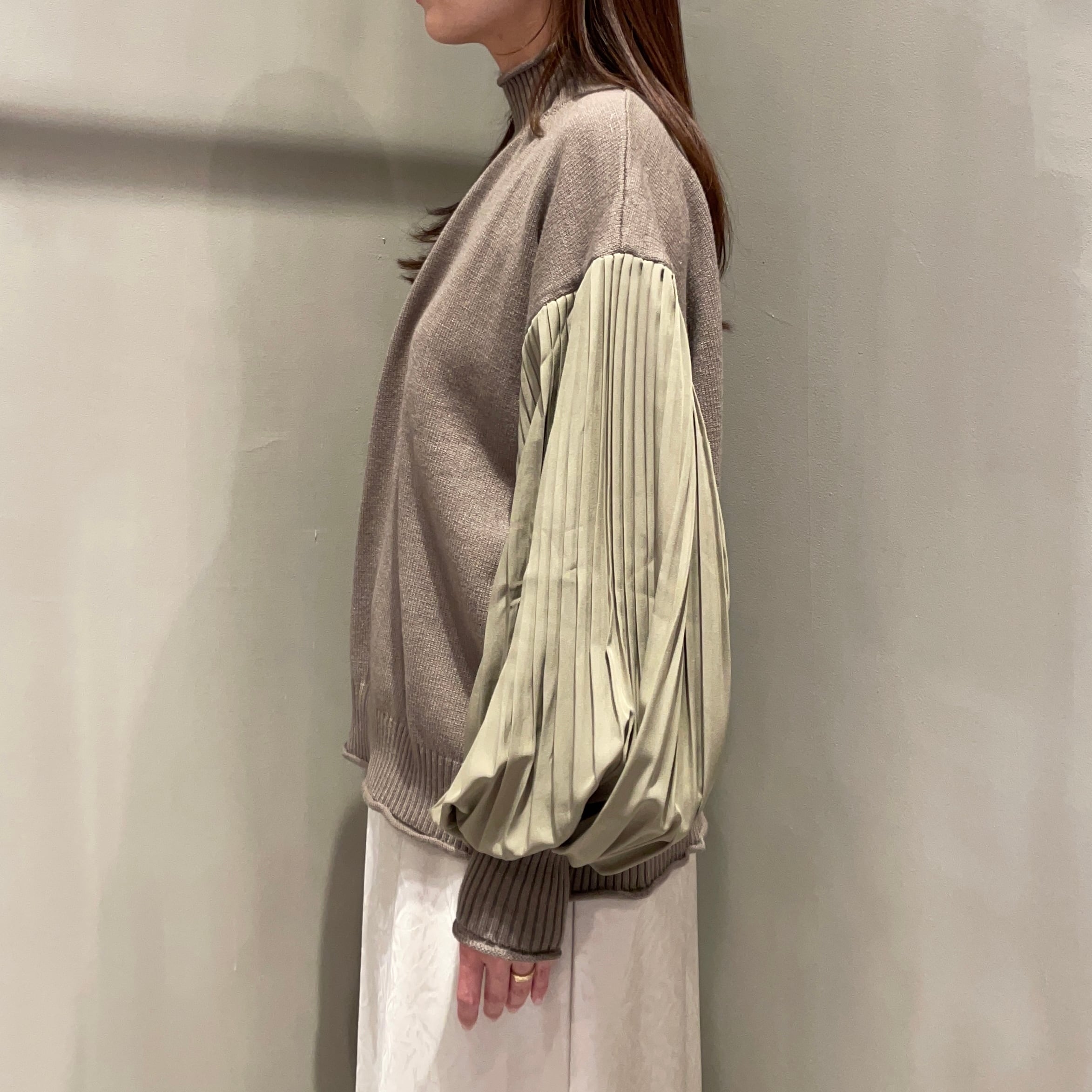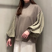 botanical/袖プリーツ切り替えドッキングプルオーバーニット