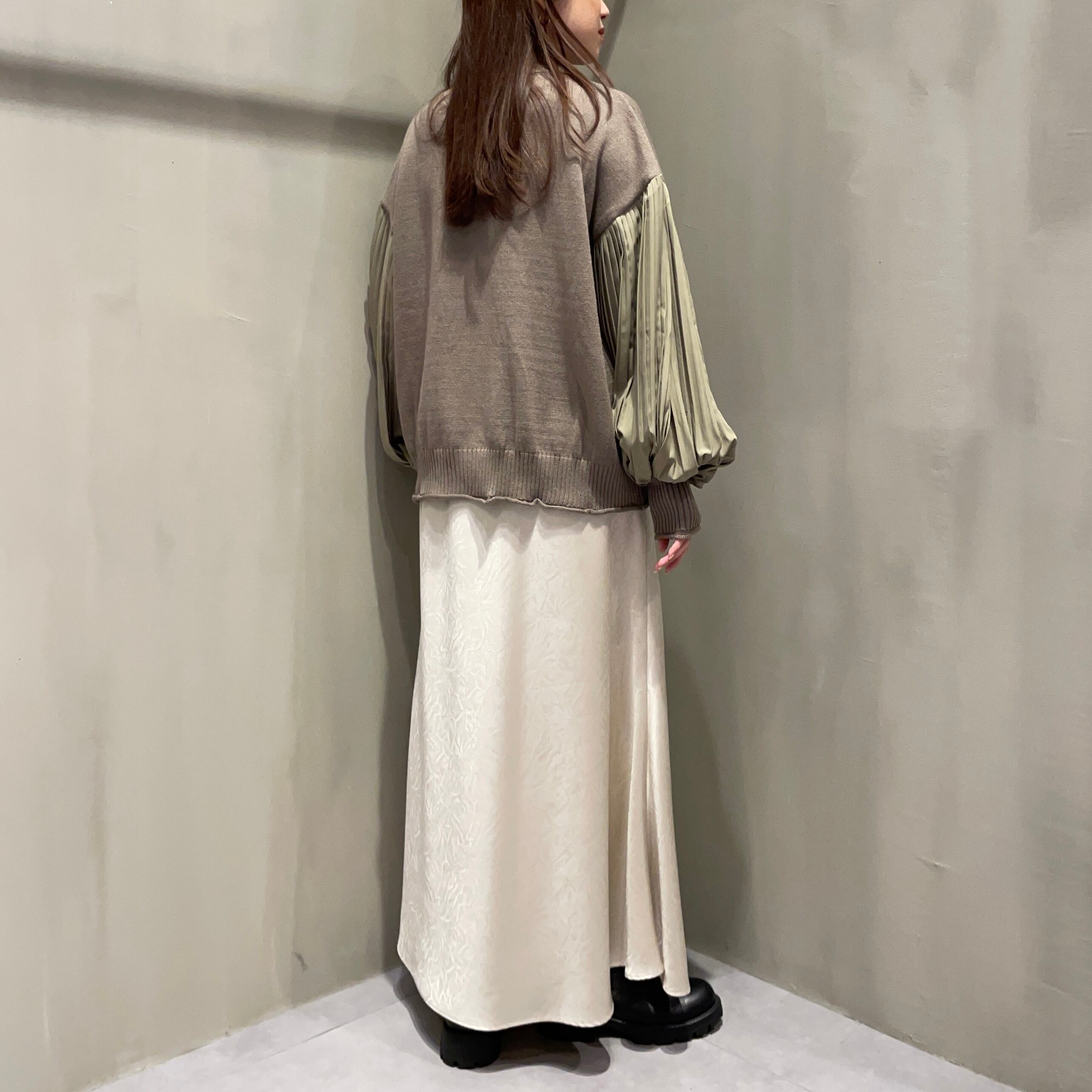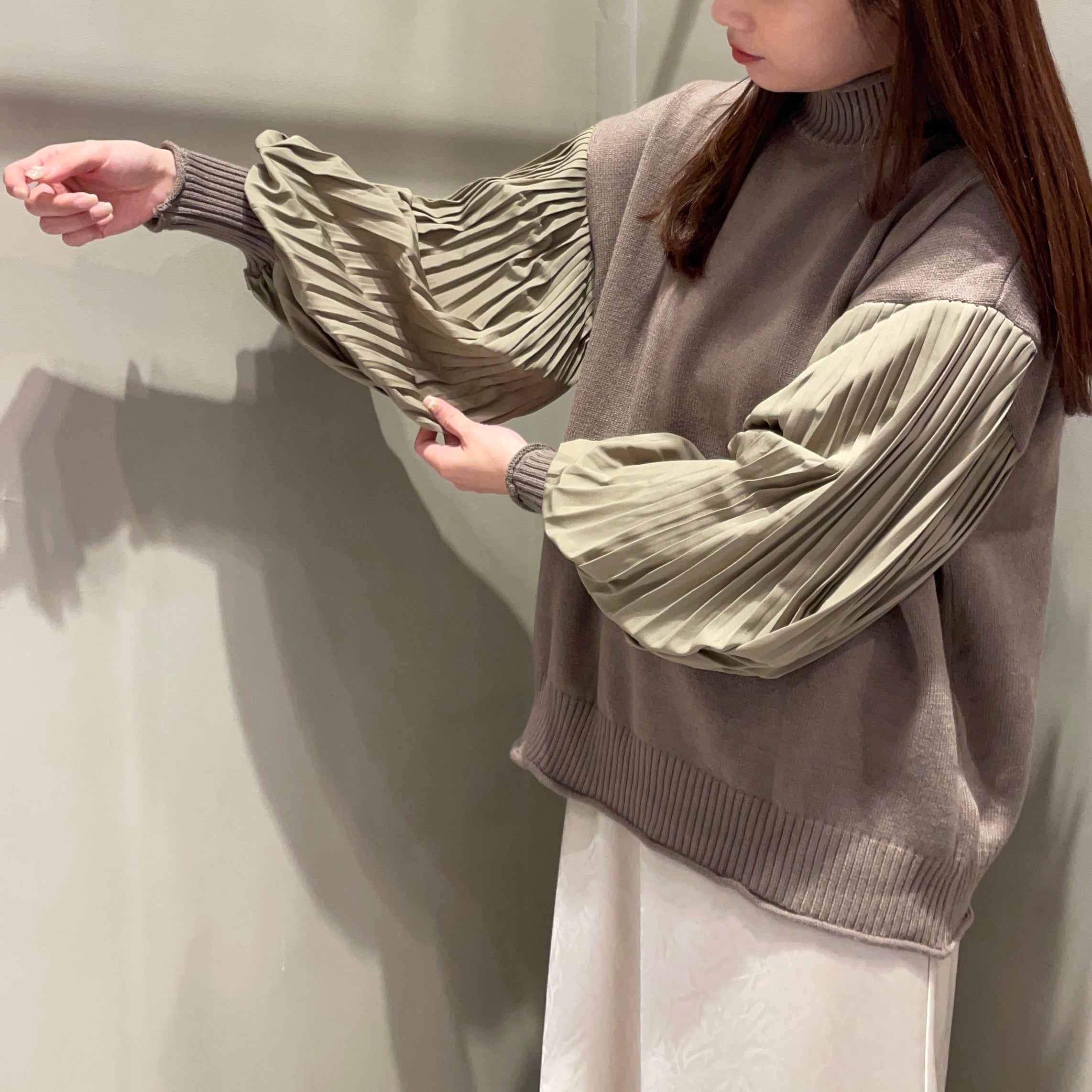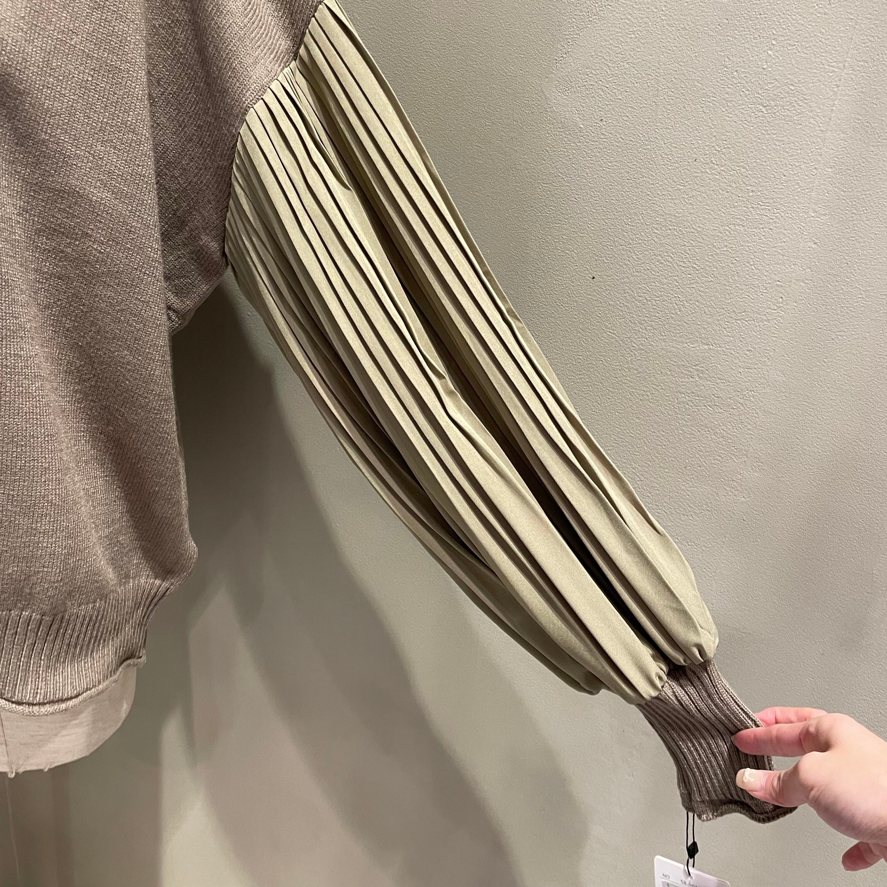 薄手のニット生地とプリーツ素材をドッキングしたトップス