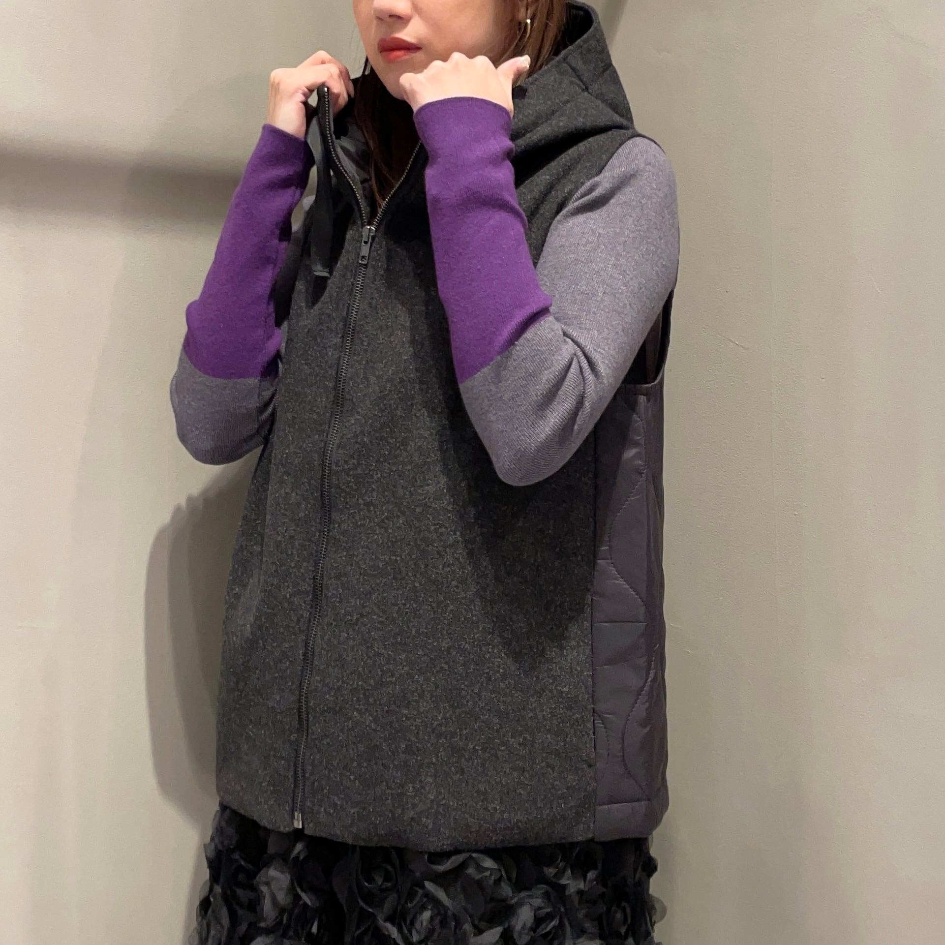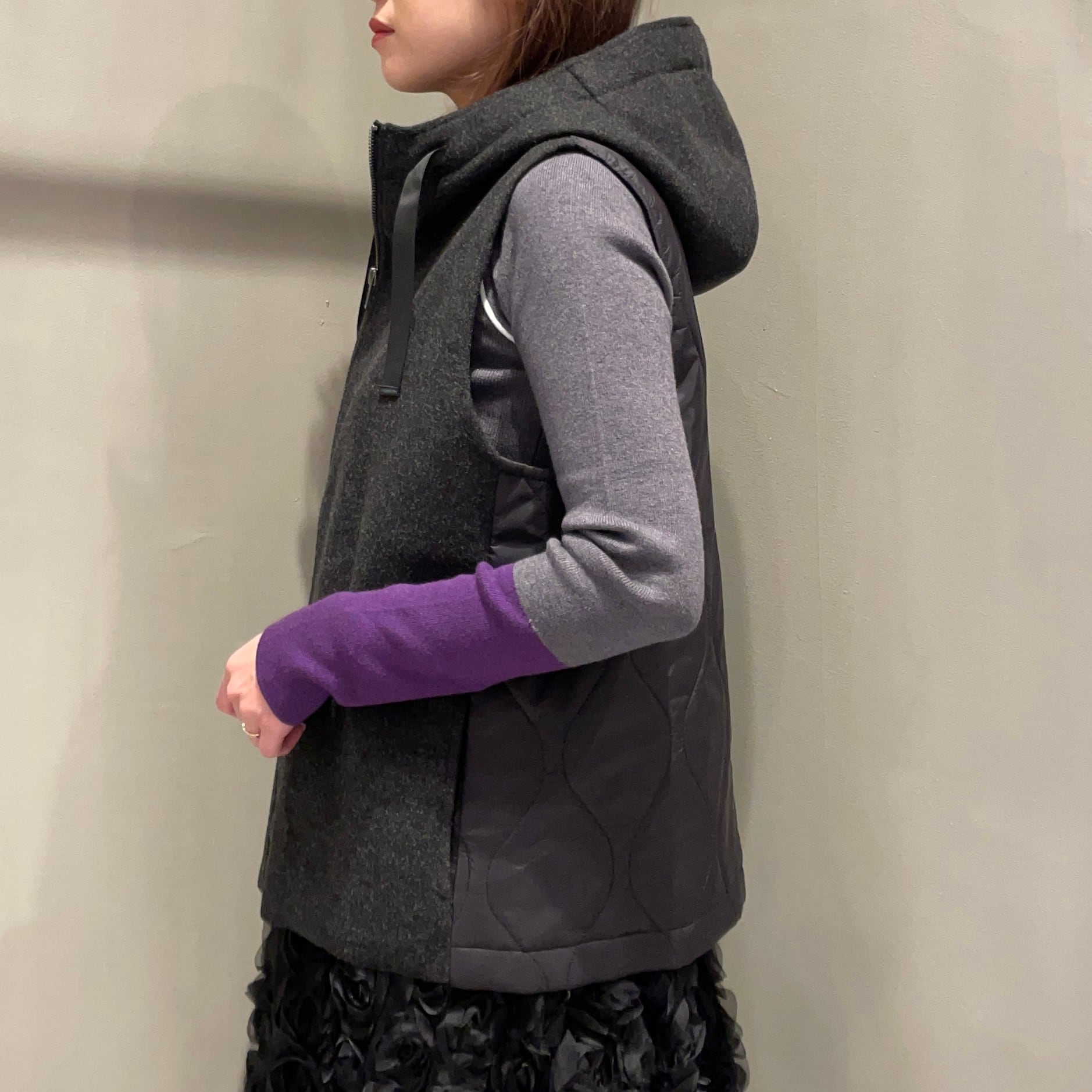 温かさと軽さに定評のあるキルティング素材を組み合わせたベスト