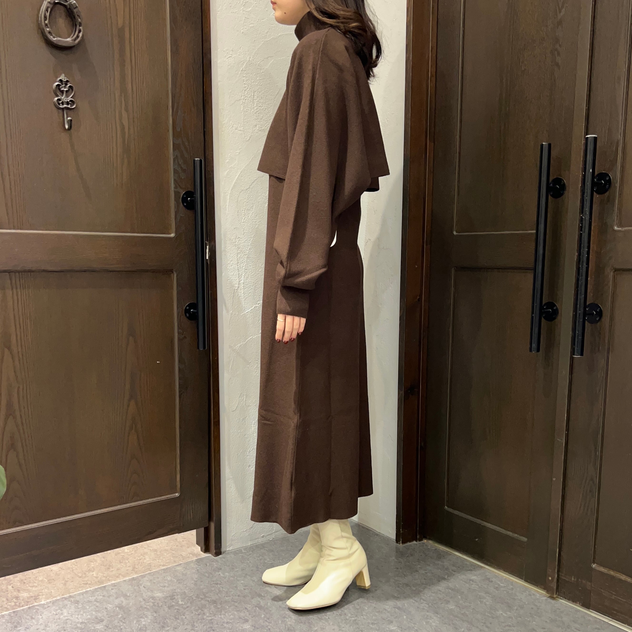 ワンピースはすっきりとしたIラインシルエットで、1枚でも着やすいシンプルさが魅力。