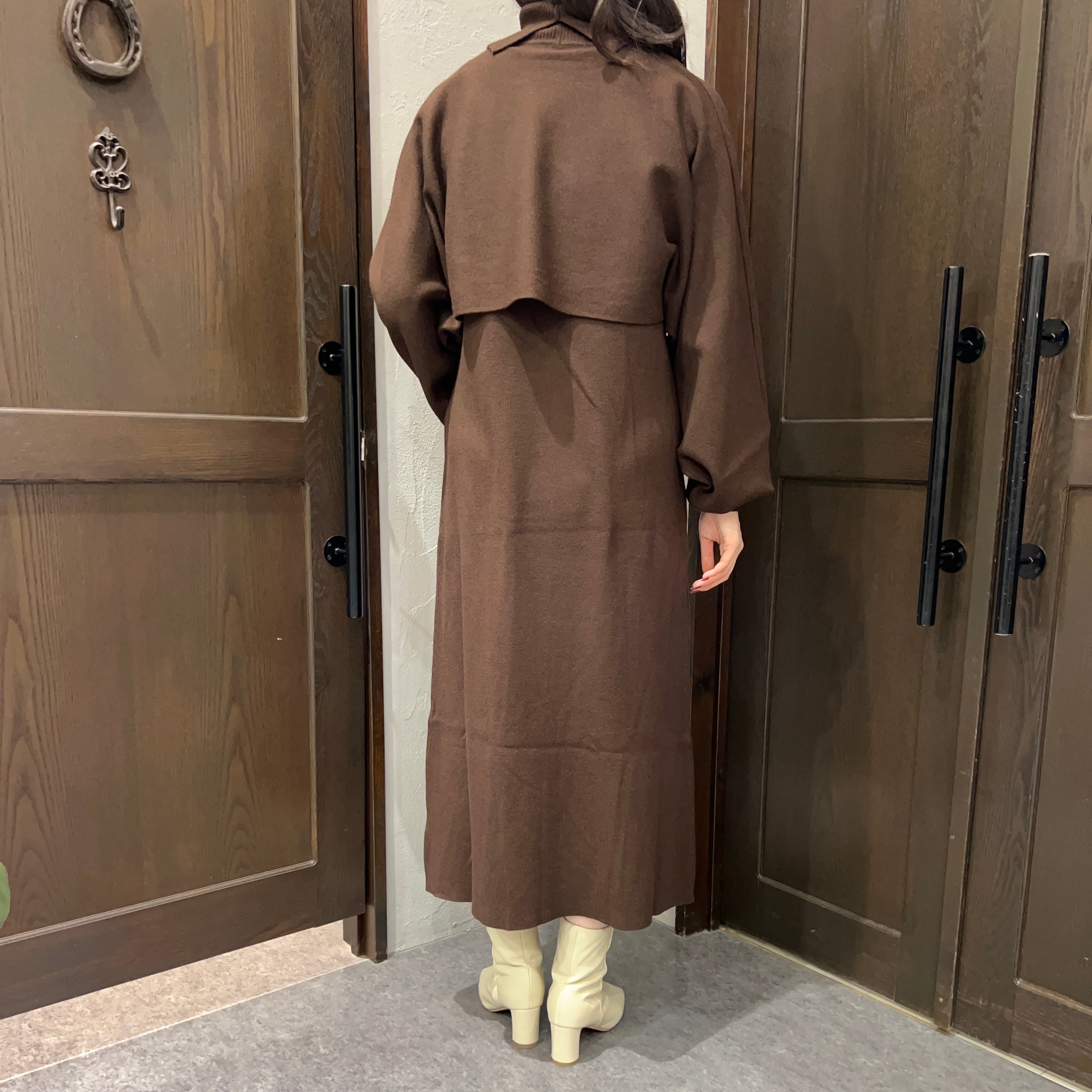 シンプルなノースリーブワンピースに、同素材のショート丈トップスがセットになったデザイン。