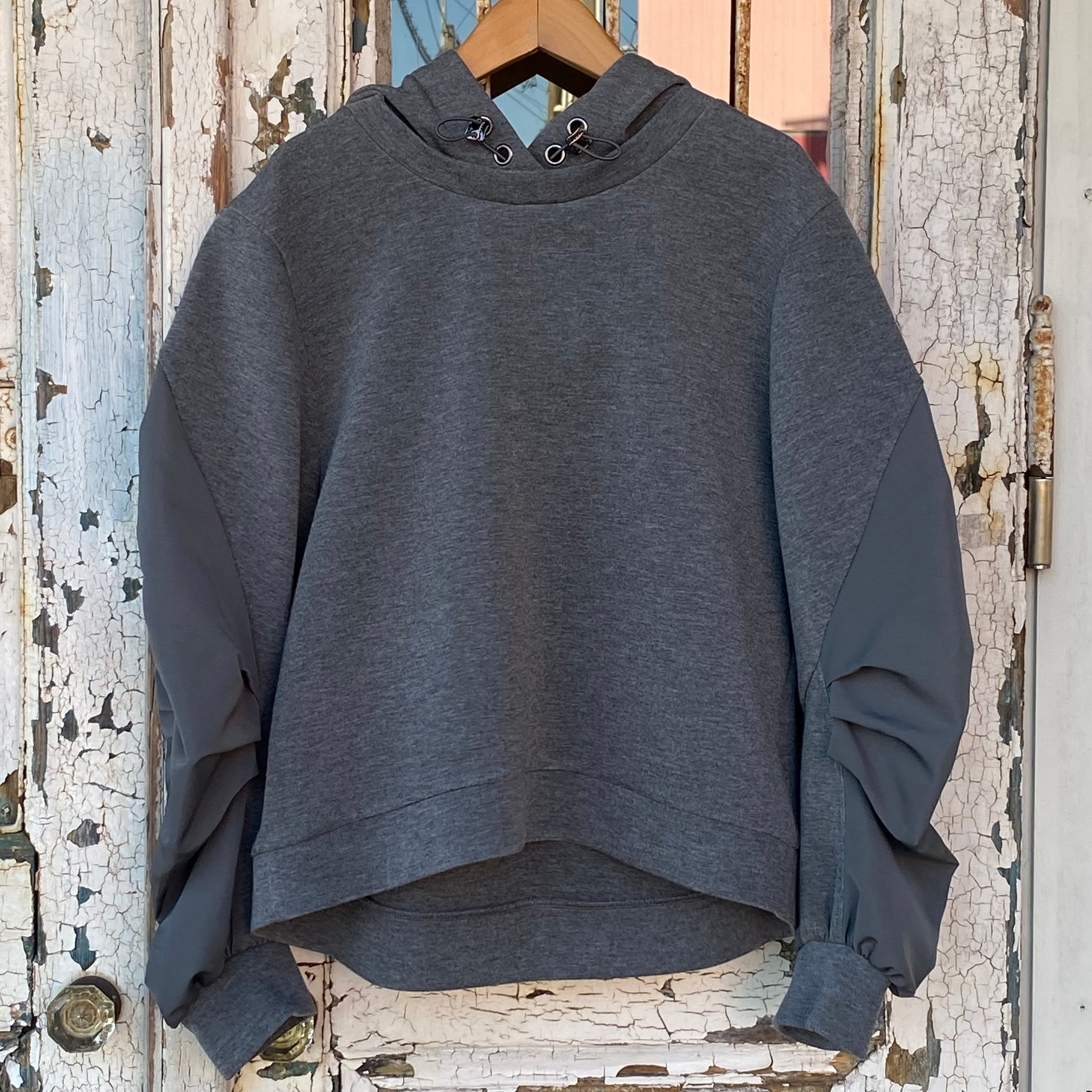 異素材を組み合わせたデザインで袖ギャザーが優雅な印象を与えます。